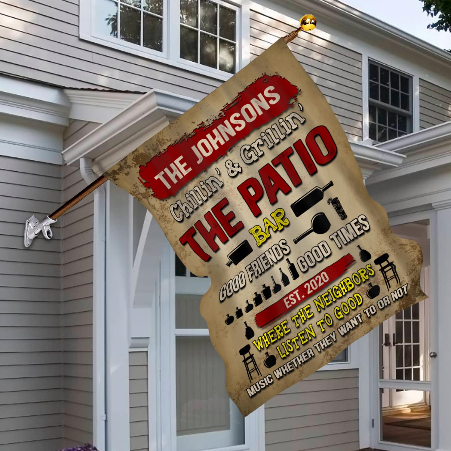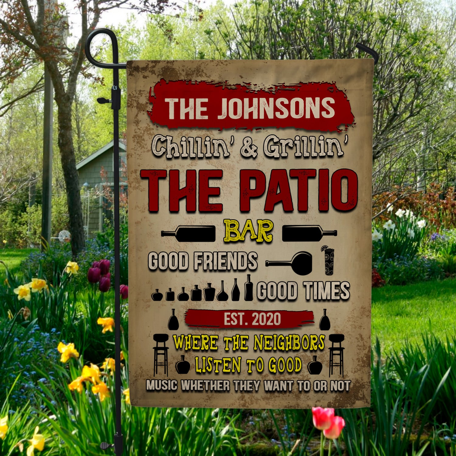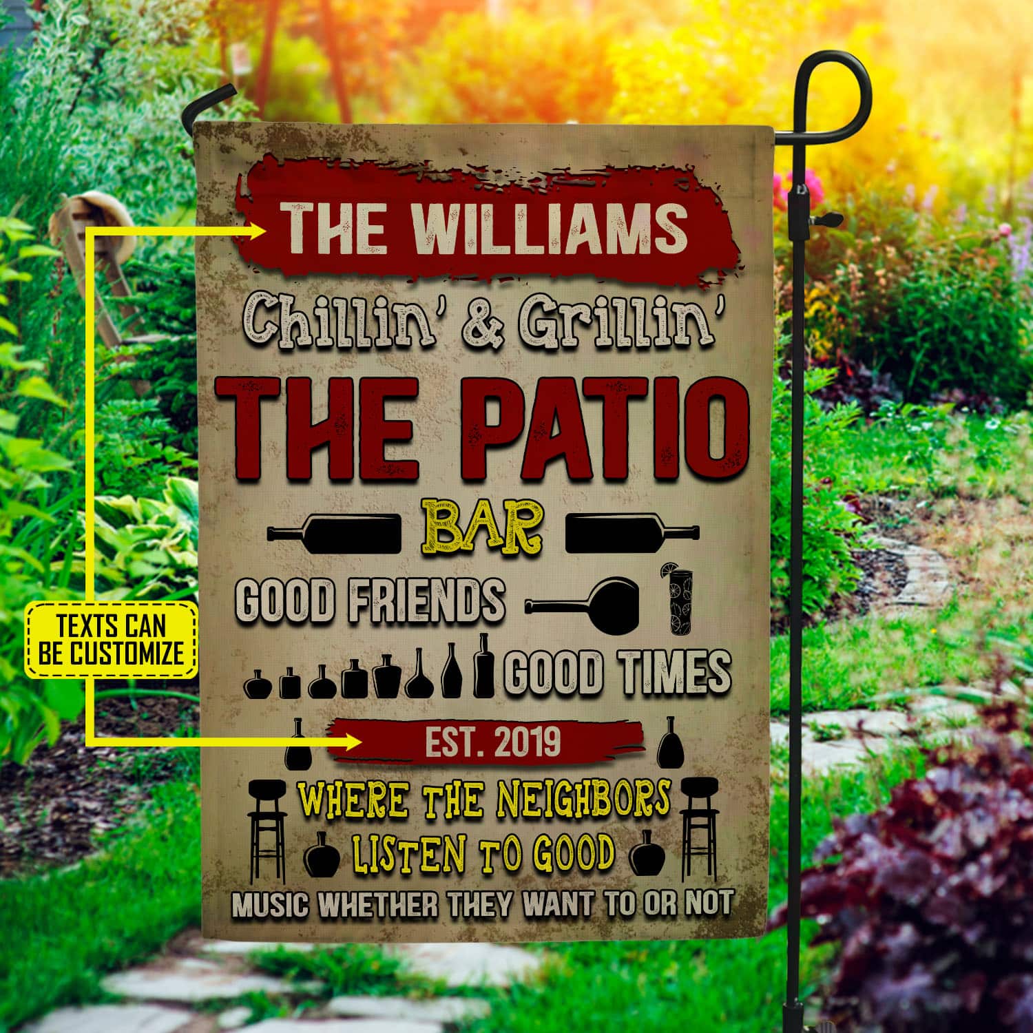 Let’s Shop Personalized Name Chillin’ n Grillin’ The Patio Bar Welcome Barbeque Grilling Custom Garden Flag – House Flag!