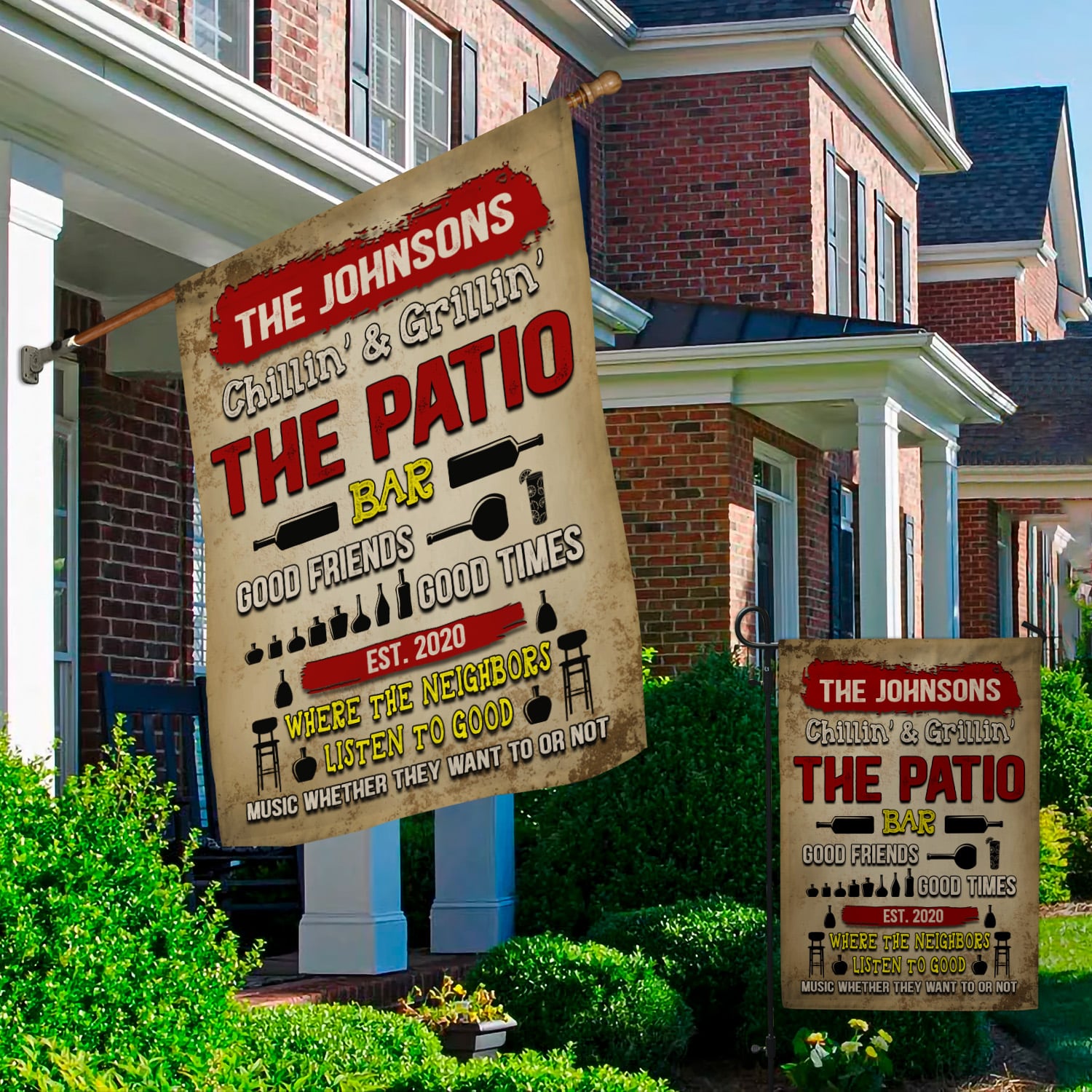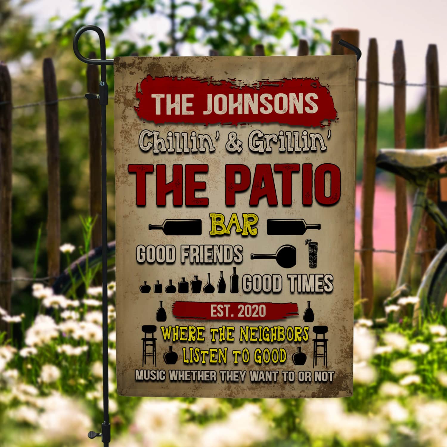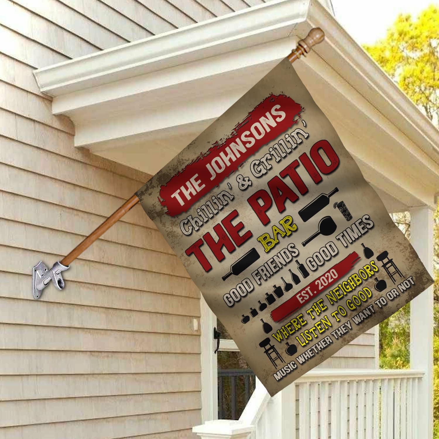 Let’s Shop Personalized Name Chillin’ n Grillin’ The Patio Bar Welcome Barbeque Grilling Custom Garden Flag – House Flag!