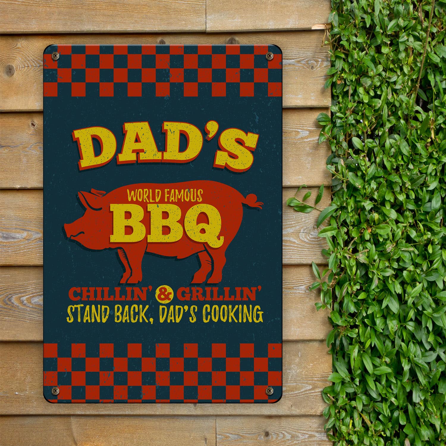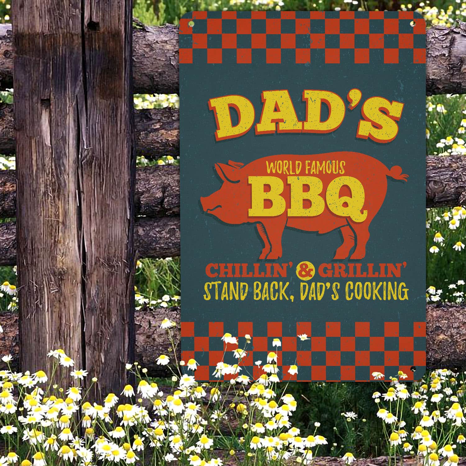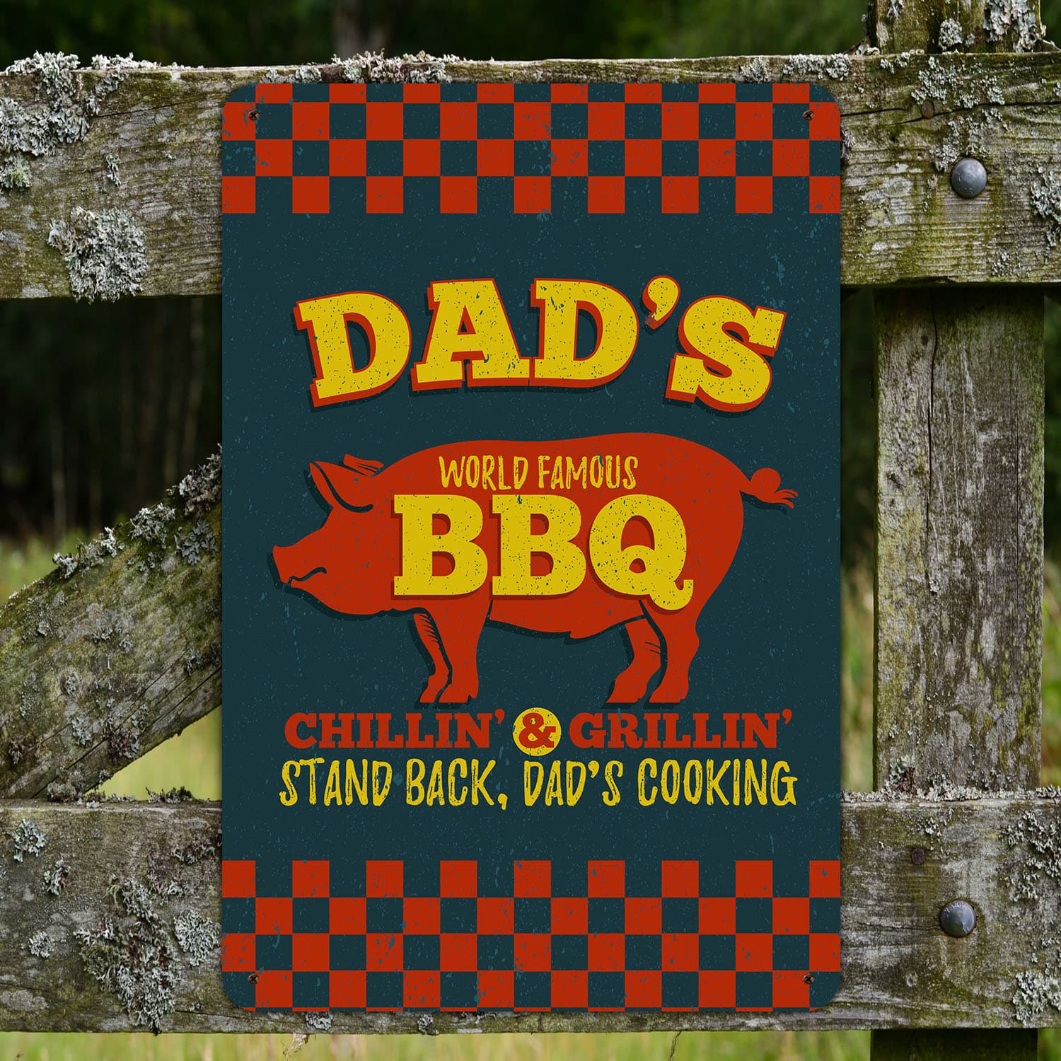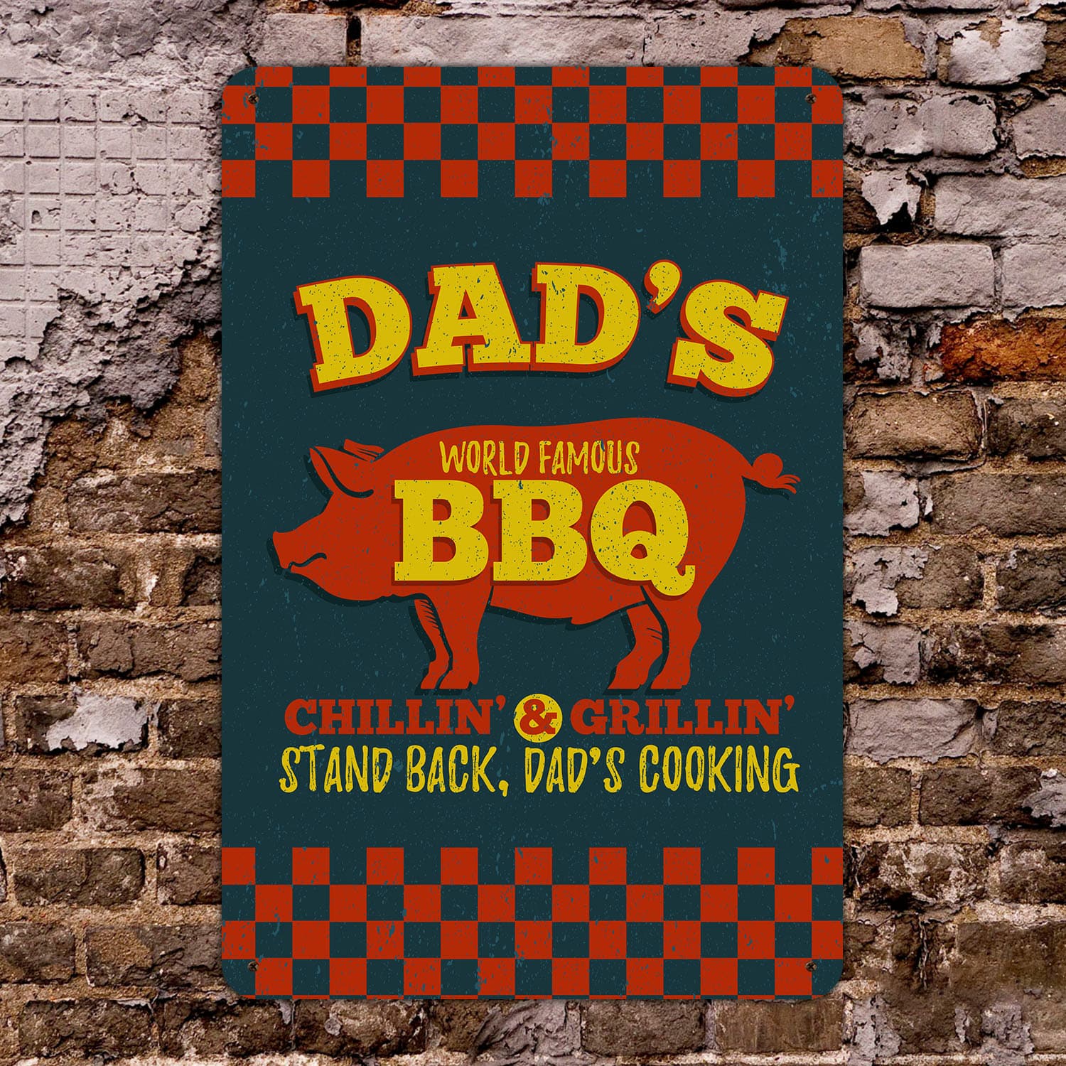 Let’s Shop Dad’s World Famous Cooking BBQ Chillin’ & Grillin’ Decorative Metal Sign – Indoor Outdoor Decor Farmhouse!