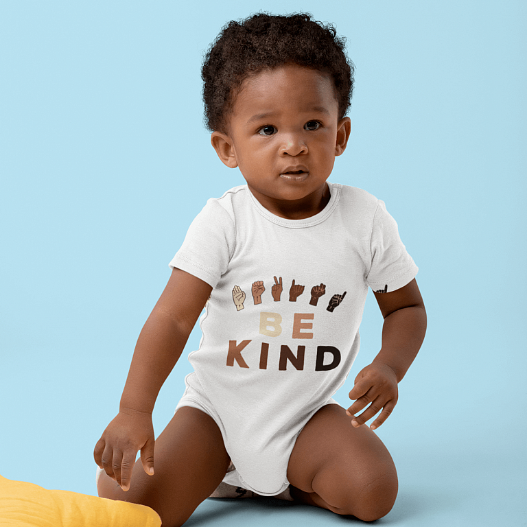 Let’s Shop Be Kind ASL American Sign Language Baby Onesie – Toddler Infant Bodysuit – Coming Baby Onesie!