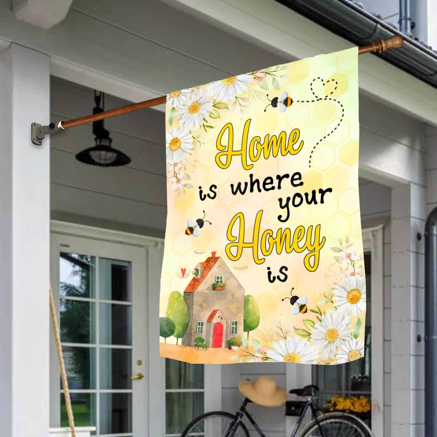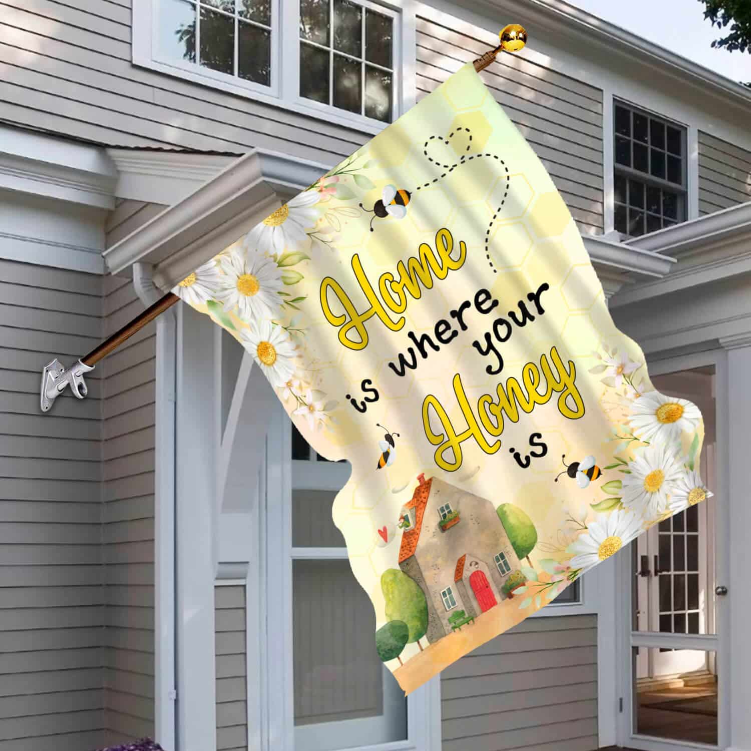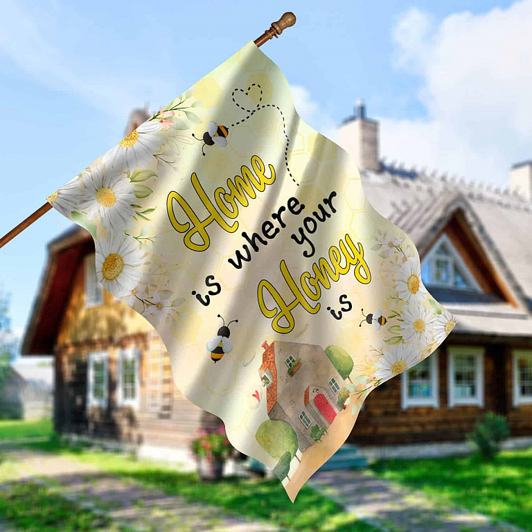 Let’s Shop Home Is Where Your Honey Is Funny Bee Garden Flag – House Flag – Wall Flag!