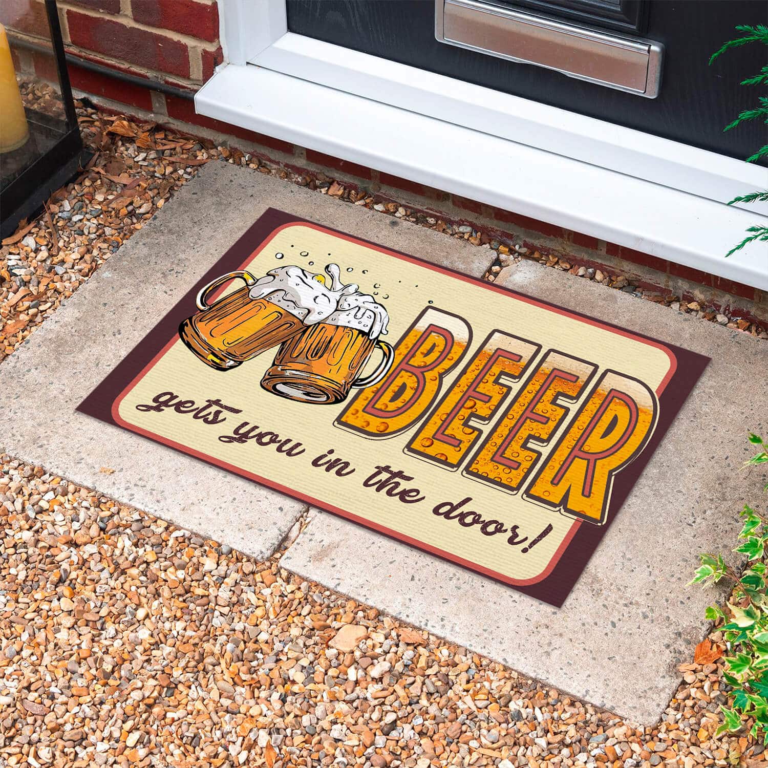 Let’s Shop Beer Gets You In The Door Funny Doormat – Home Bar Indoor Outdoor Doormat – Gift For Beer Lovers!