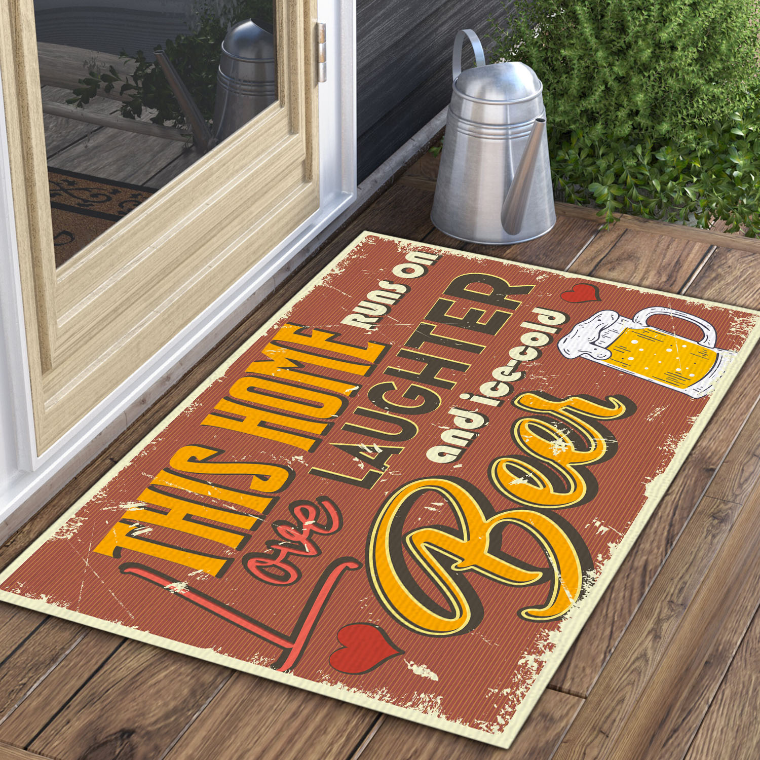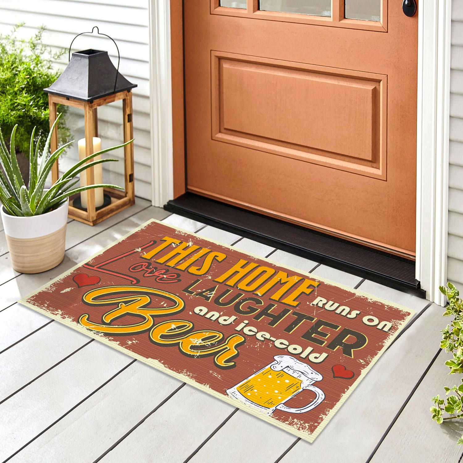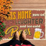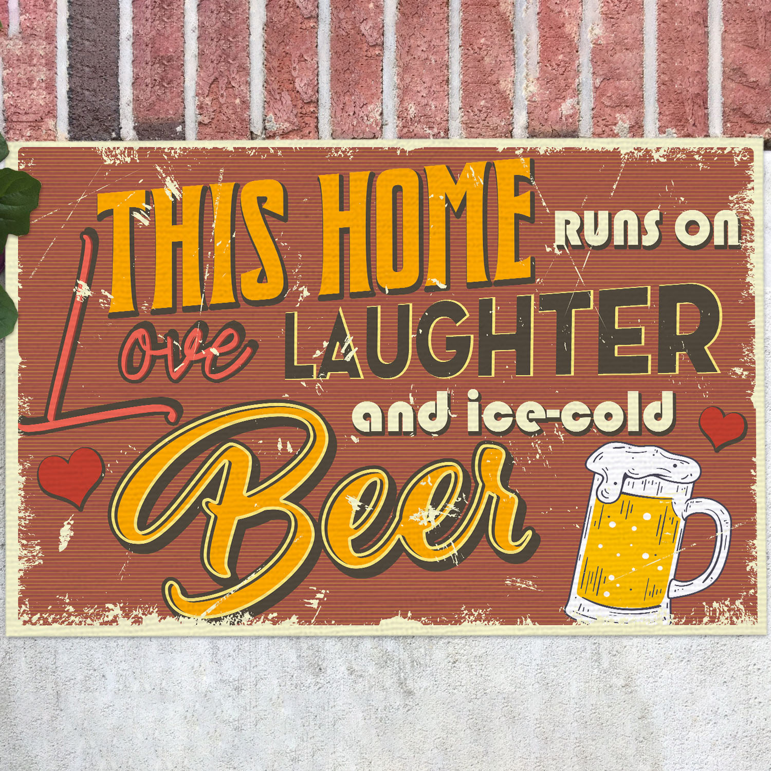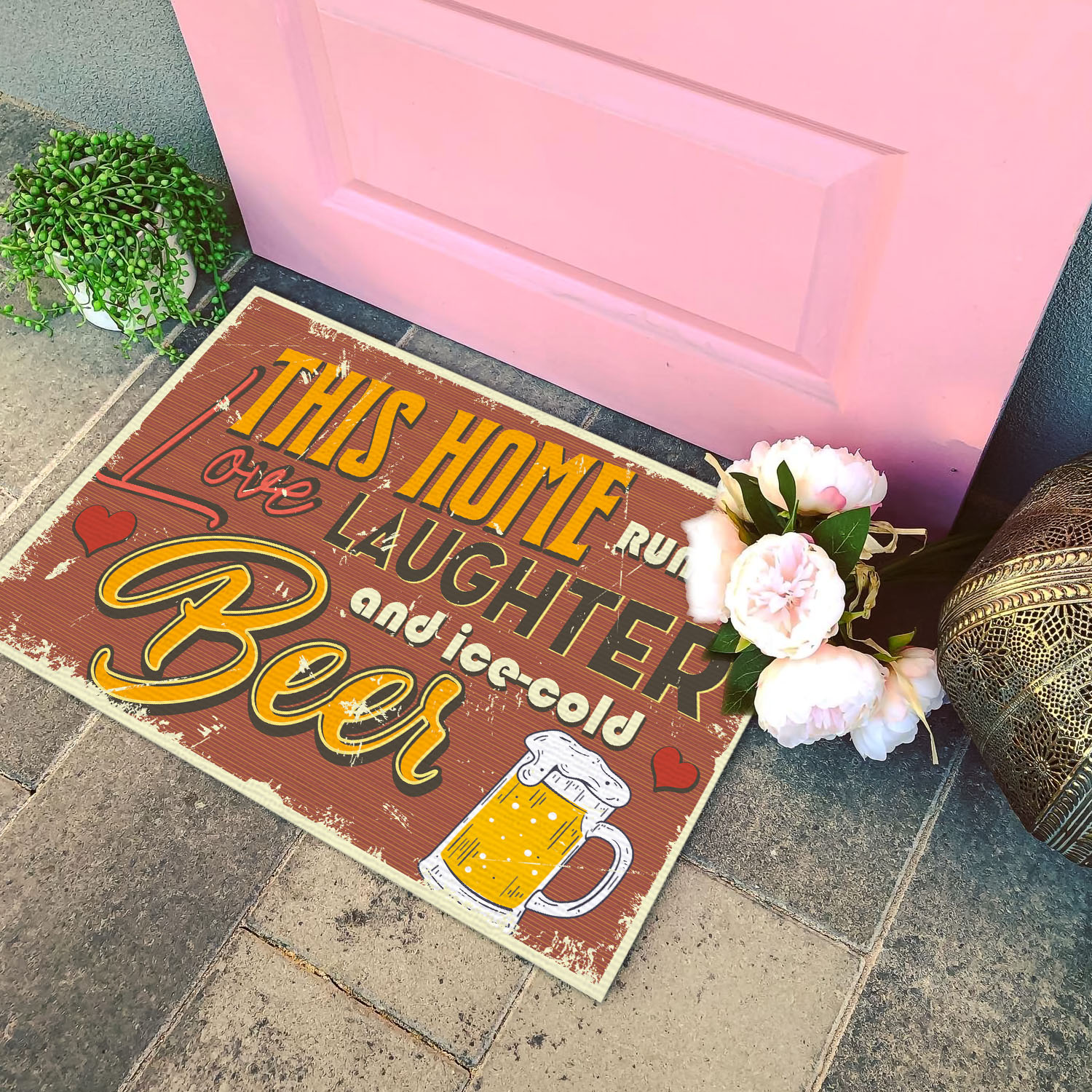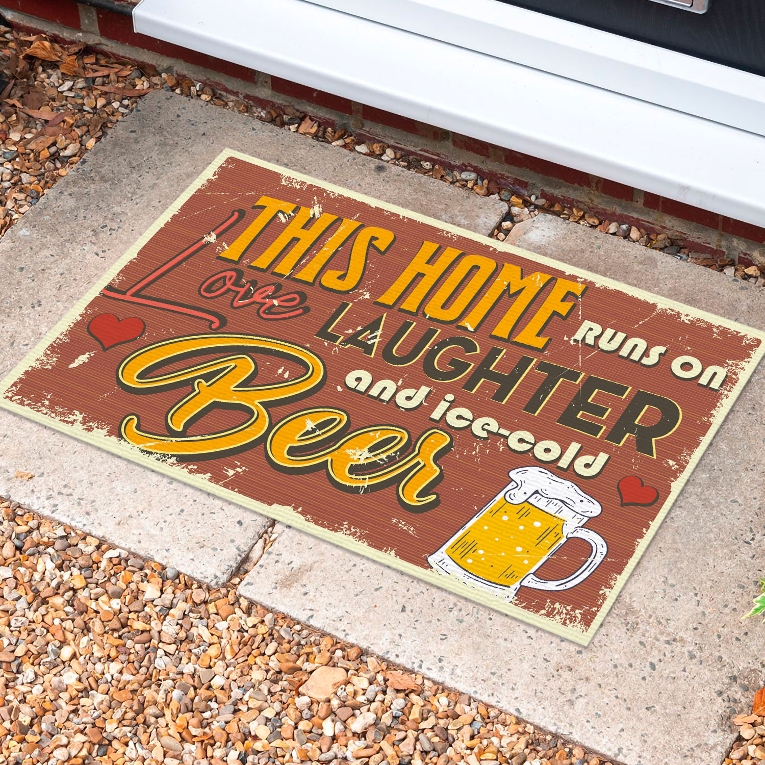 Let’s Shop This Home Runs On Love Laughter And Ice-Cold Beer House Doormat – Beer Lover Outdoor Indoor Doormat!