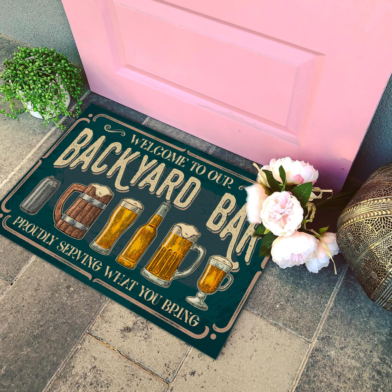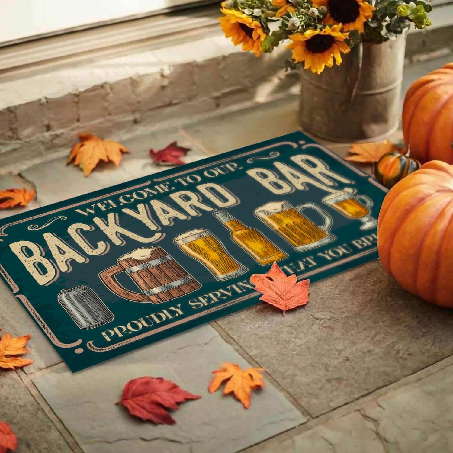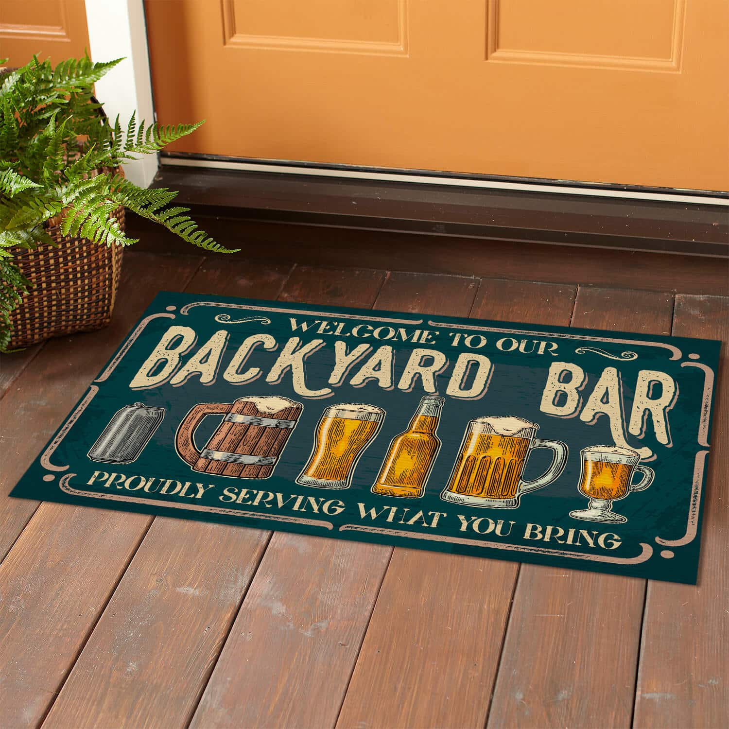 Let’s Shop Welcome To Our Backyard Bar Funny Bar Signs Beer Sign Indoor Outdoor Decorative Doormat!