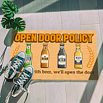 Let’s Shop Open Door Policy Show Up with Beer We’ll Open the Door Humorous Indoor Outdoor Decorative Doormat!