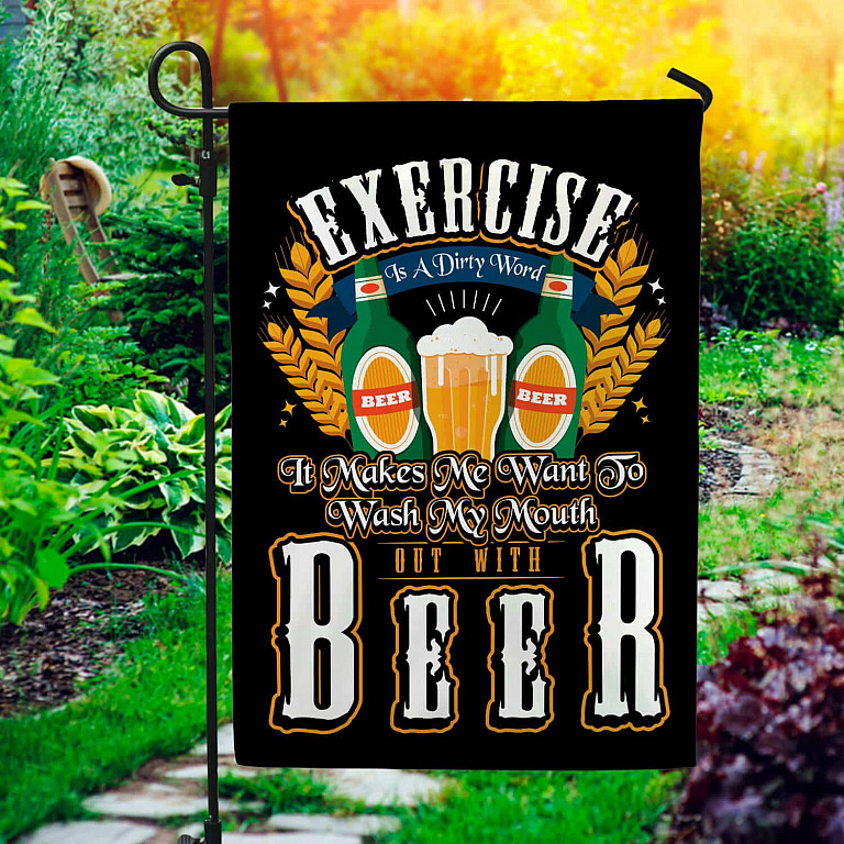 Let’s Shop Exercise Is Dir-ty Word Makes Me Want Wash My Mouth Out with Beer Garden Flag – House Flag – Wall Flag!