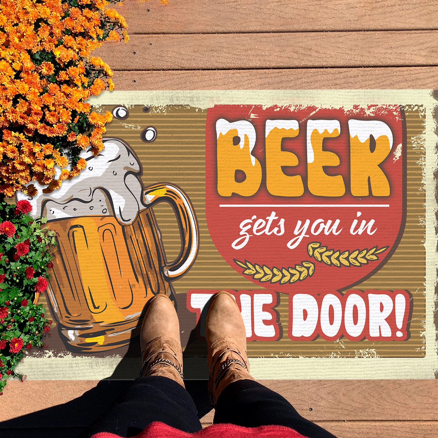 Let’s Shop Beer Gets You In The Door Doormat – Outdoor Indoor Doormat – Beer Doormat!