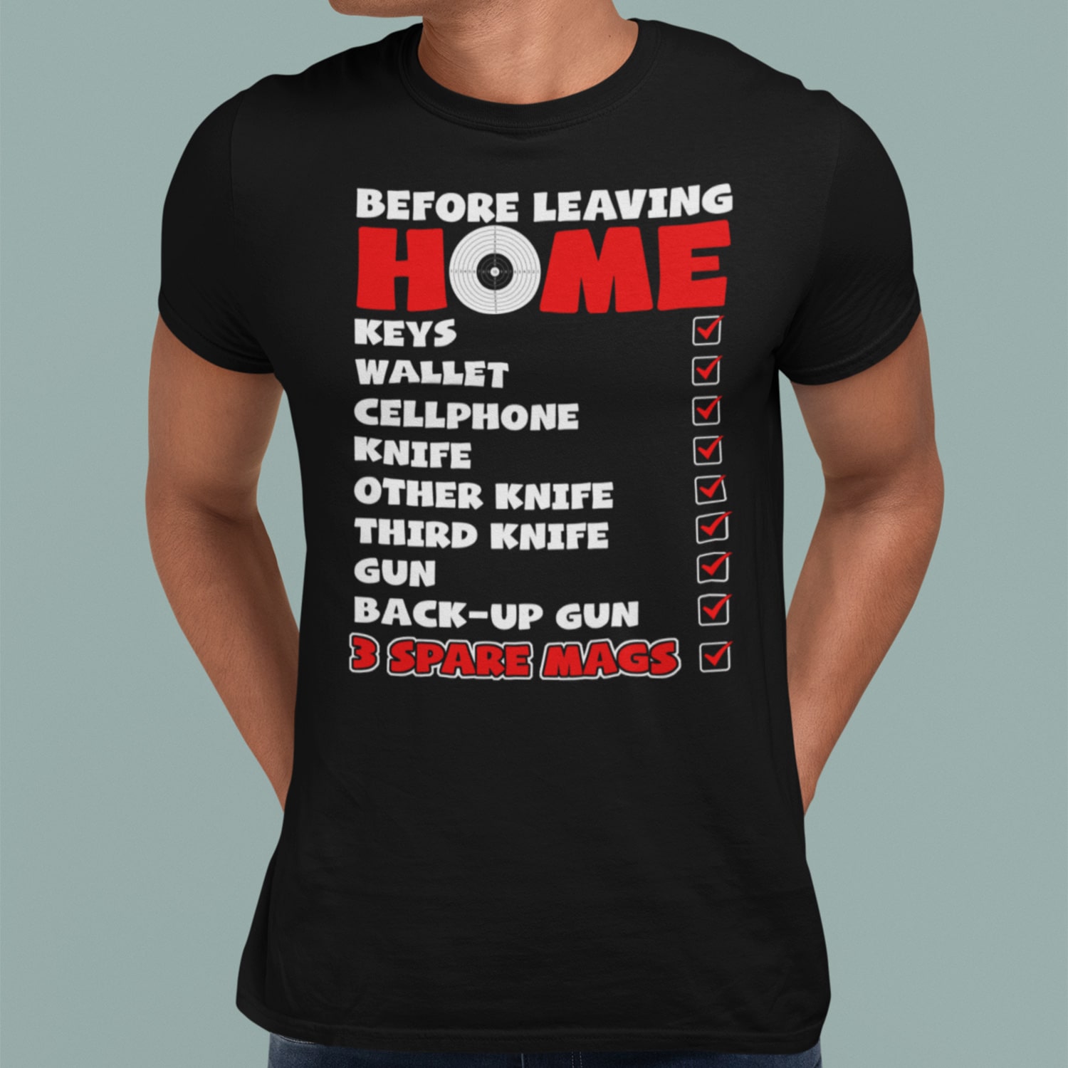 Are you spending too much time to find creative merchandise for you or suitable & special gifts for your mommy, your daddy, your son, your daughter, your children, your friends or someone you love? The struggle is over because we have various Funny Checklist for Leaving Home Shirt, Before Leaving Home Checklist Shirt, 3 Spare Mags Shirt, Funny Checklist for Gun Lovers Shirt, Gun Lover Shirt, Funny Gun Lovers Shirt, Shirt for Gun Lovers Shirt which will make perfect presents for your beloveds. In order to make your present stand out, we have created lots of unique and awesome customized photo gifts & personalized designs.
