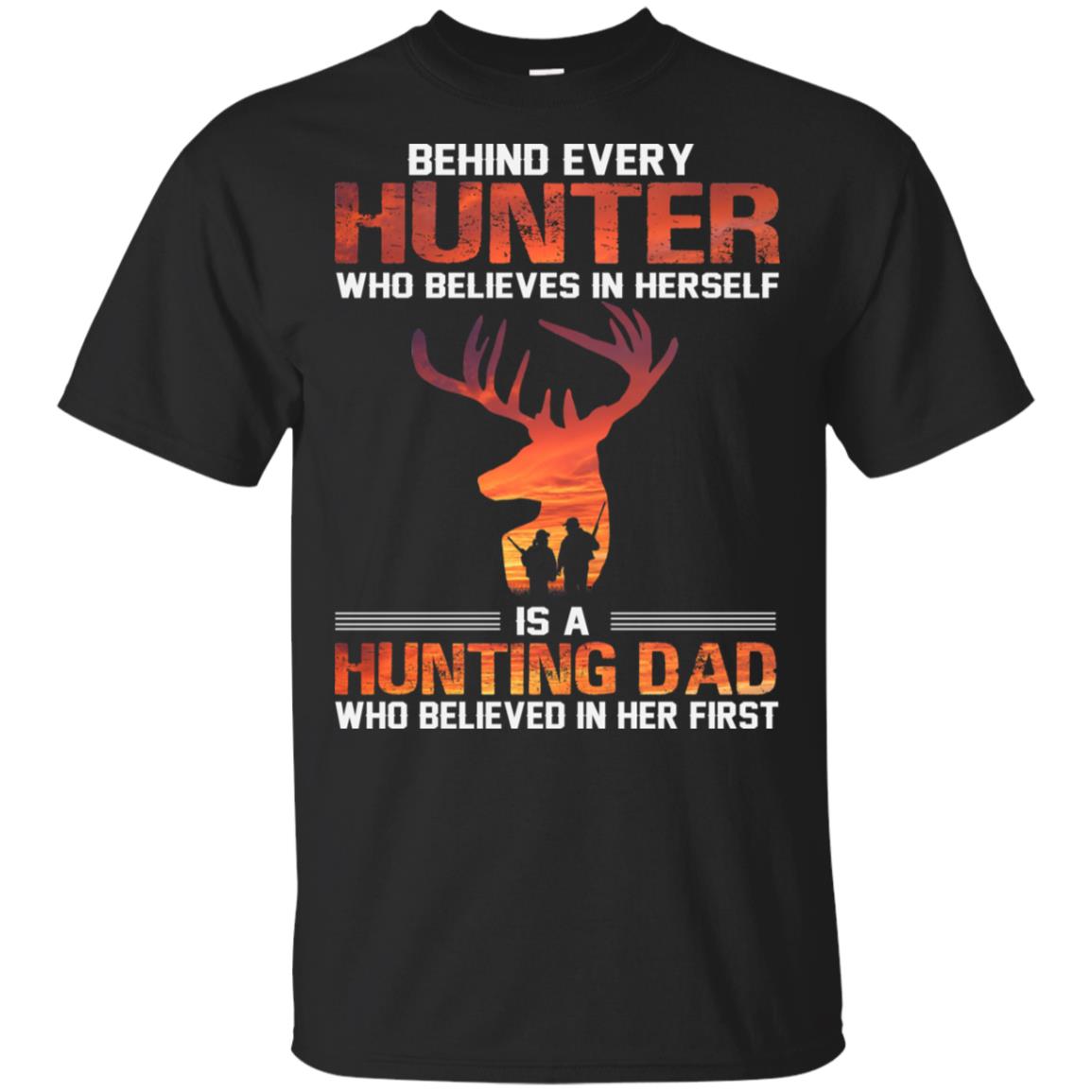 Behind Every Hunter_ Who Believes In Herself Is A Hunting Dad T-Shirt