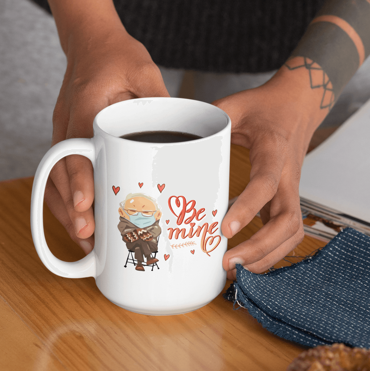 Let’s Shop Bernie Sanders Mittens Be Mine Valentine’s Day Ceramic Coffee Mug – Beer Stein – Water Bottle – Color Changing Mug!