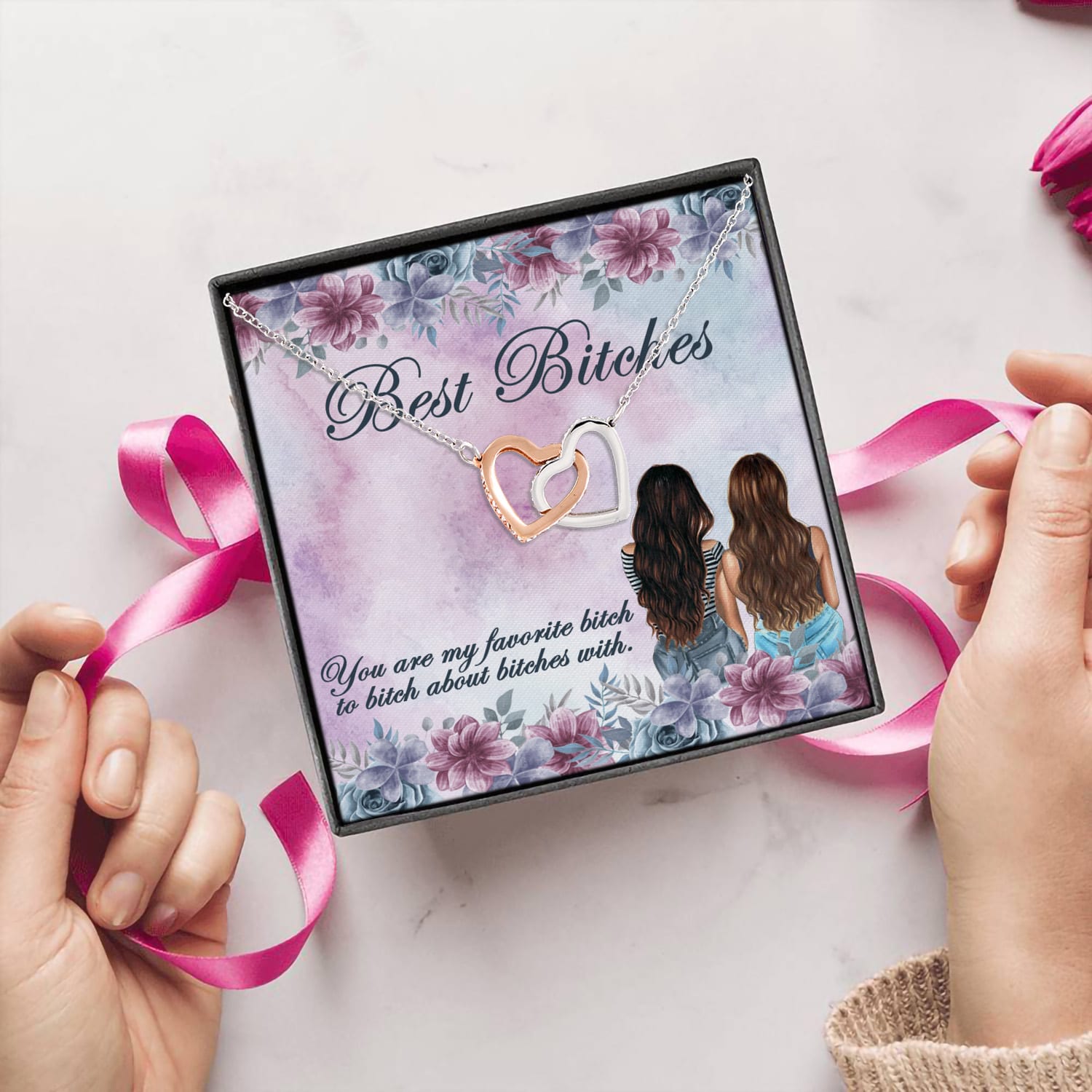 Let’s Shop Best Bitches You Are My Favorite Bitch to Bitch About Bitches Joined Interlocking Hearts Pendant Necklace!