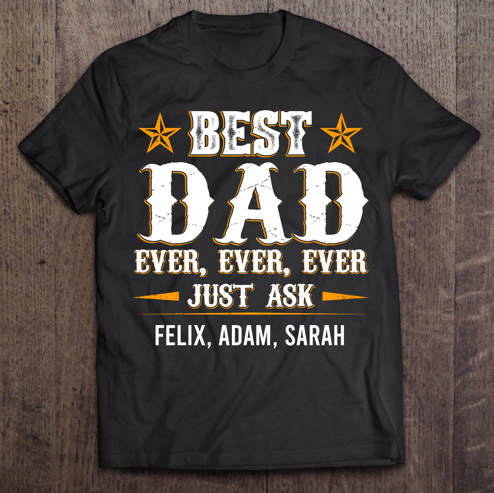 Are you spending too much time to find creative merchandise for you or suitable & special gifts for your mommy, your daddy, your son, your daughter, your children, your friends or someone you love? The struggle is over because we have various Best Dad Ever Shirts for Men, Personalized Dad Shirt, Personalized Dad Shirts for Men, Personalized Dad and Daughter Shirts, Fathers Day Gifts for Dad Personalized Shirts, Dad Personalized T Shirts, Best Dad Ever Just Ask Shirt which will make perfect presents for your beloveds. In order to make your present stand out, we have created lots of unique and awesome customized photo gifts & personalized designs.