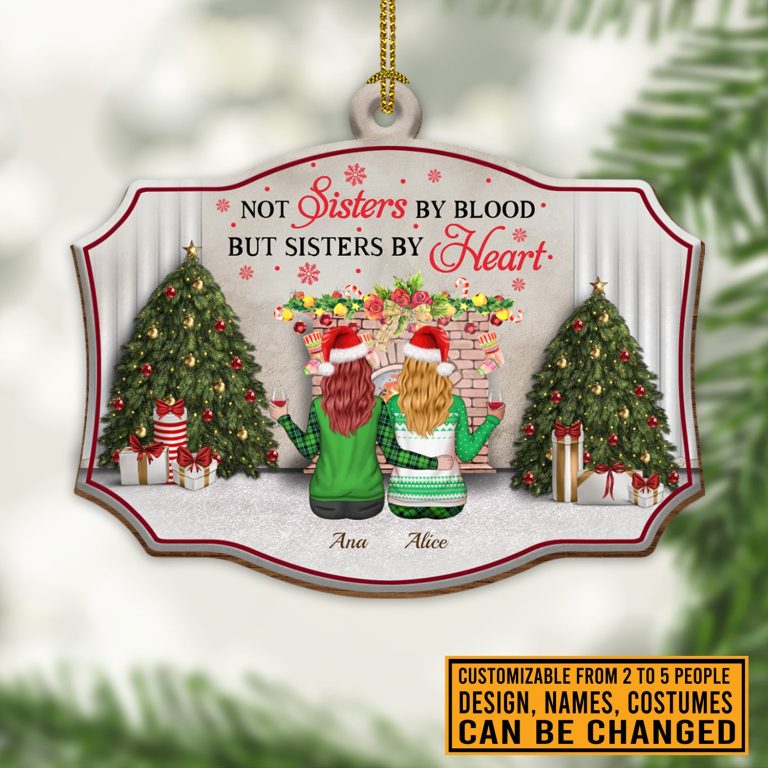 Let’s Shop Personalized Not Sisters By Blood By Sisters By Heart Best Friends Bestie Custom Shaped Christmas Ornament!
