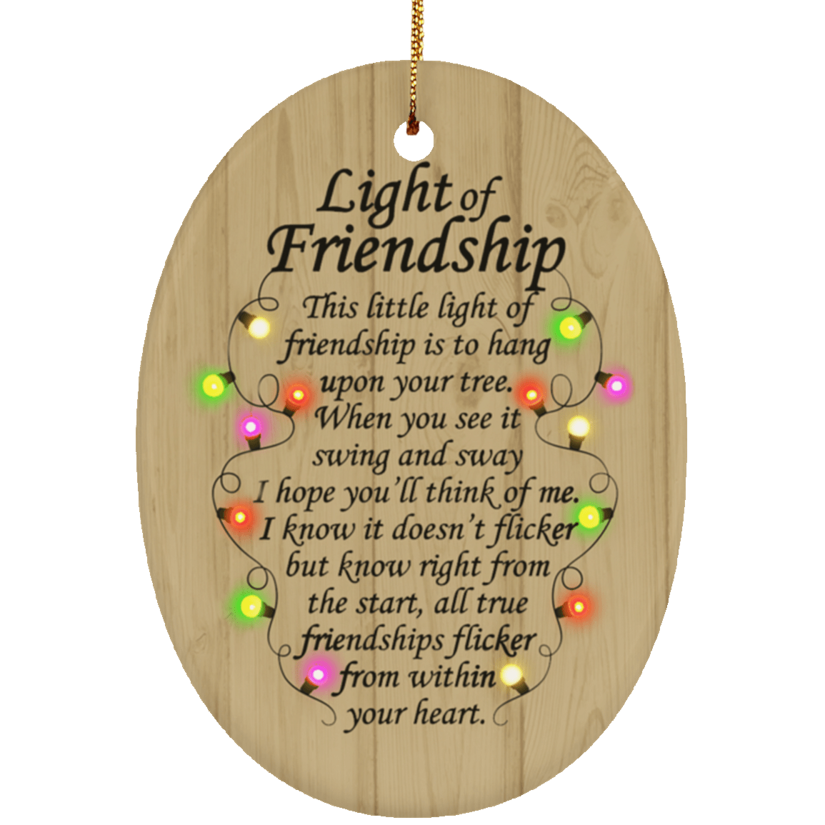 Light Of Friendship Christmas Ornament Keepsake - Holiday Flat Oval Porcelain Ceramic Ornament