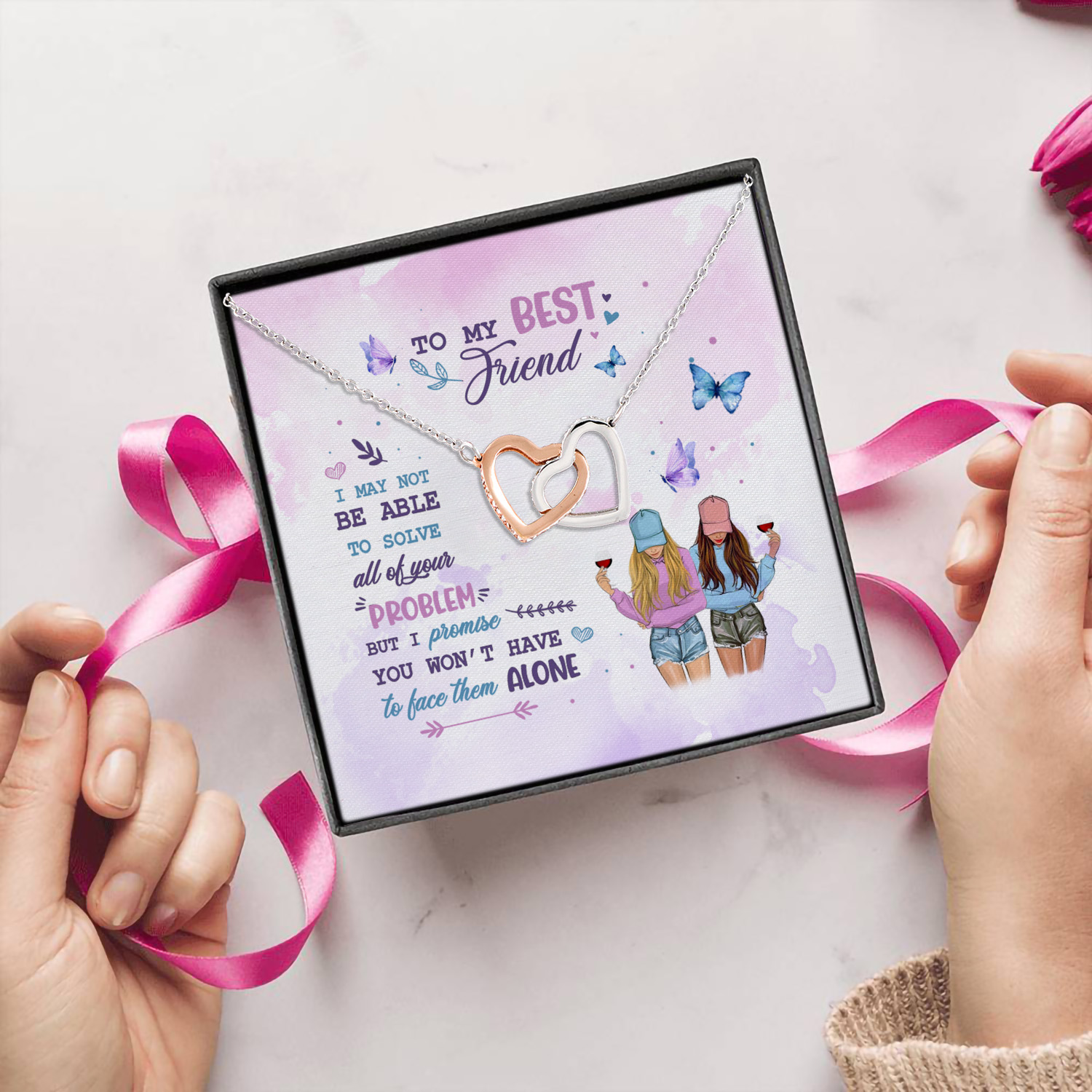 Let’s Shop To My Best Friend I May Not Be Able to Solve All of Your Problem I’ll Be Here Interlocking Hearts Pendant Necklace!