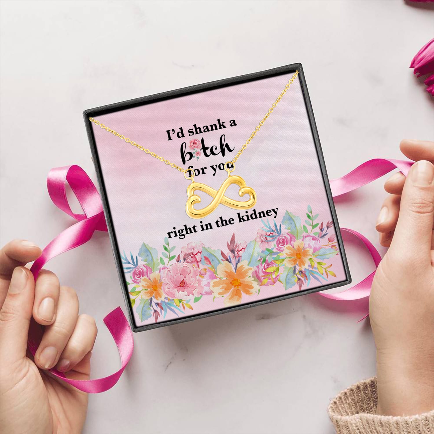 Let’s Shop Best Friend I’d Shank A Bitch For You Right In The Kidney Infinity Heart Pendant Necklace!