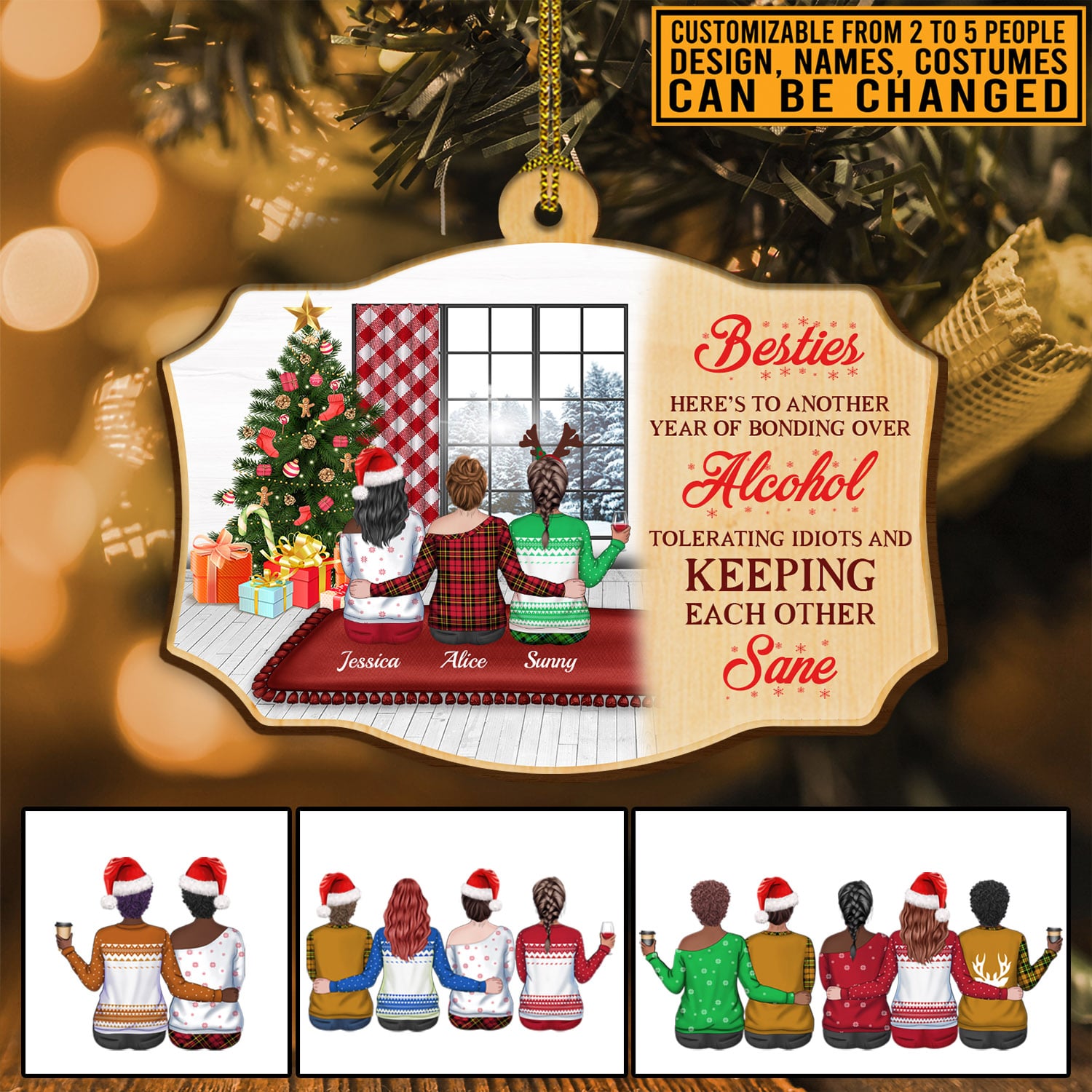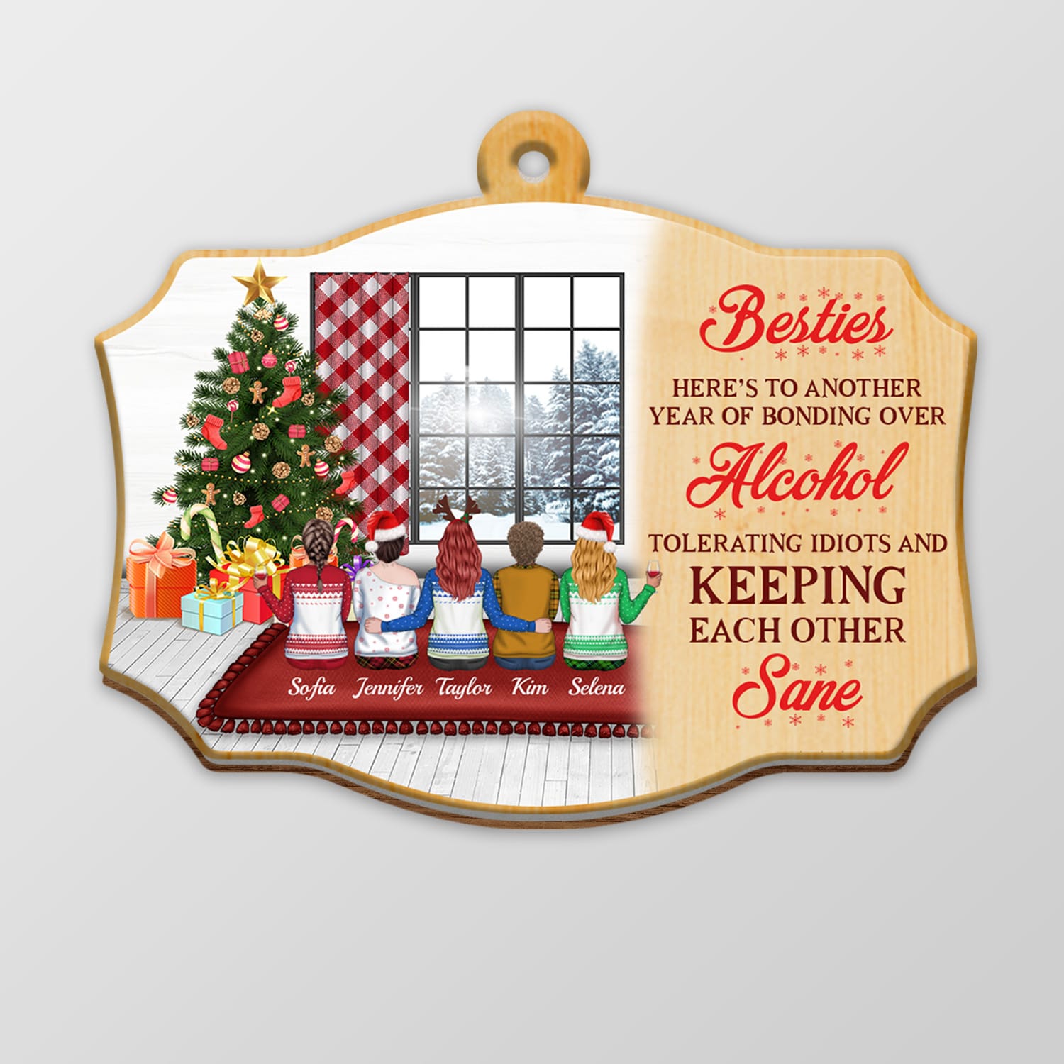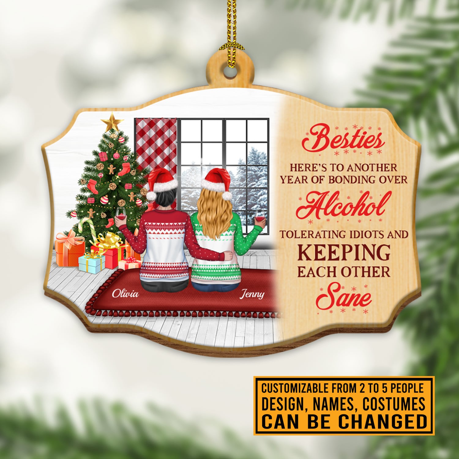 Let’s Shop Bestie Here’s To Another Year Of Bonding Over Alcohol Personalized Best Friends Custom Shaped Christmas Ornament!