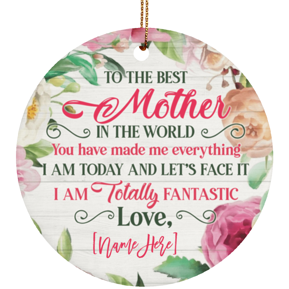 Shop Personalized To The Best Mother In The World You Have Made Me Everything Porcelain Ceramic Circle Ornament Keepsake.