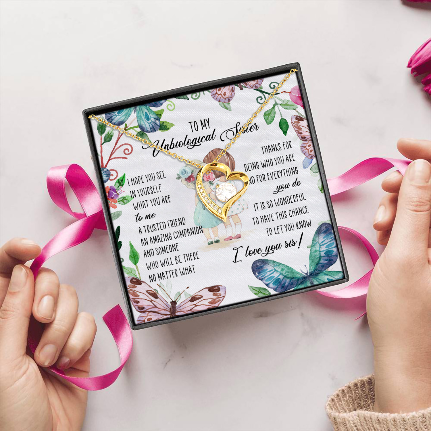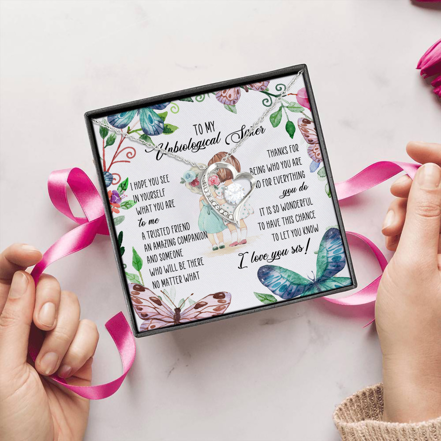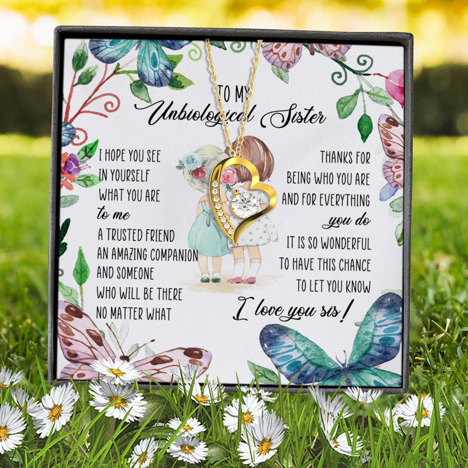 Let’s Shop To My Unbiological Sister Forever Love Heart Pendant Necklace – Bestie Gift!