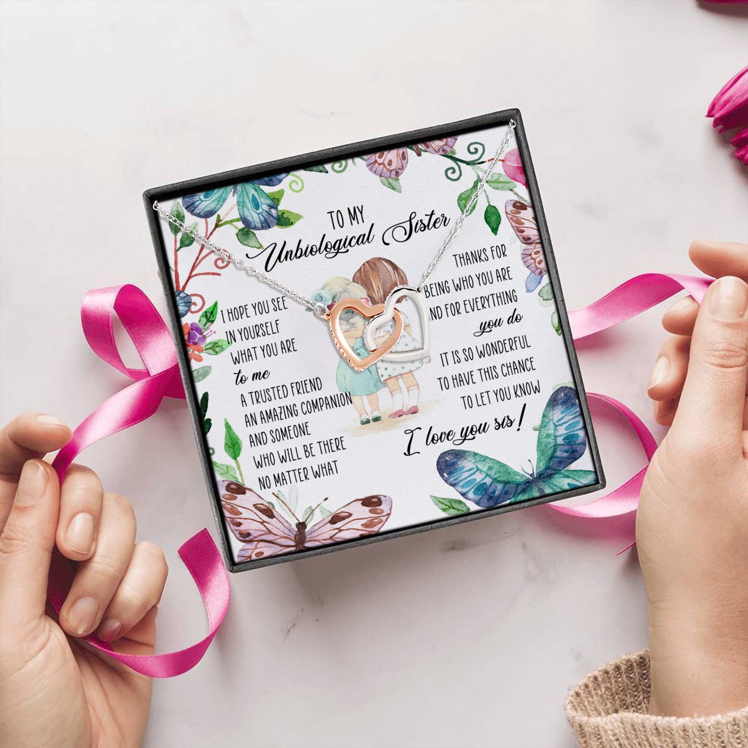 Let’s Shop To My Unbiological Sister Interlocking Hearts Pendant Necklace – Bestie Gift!