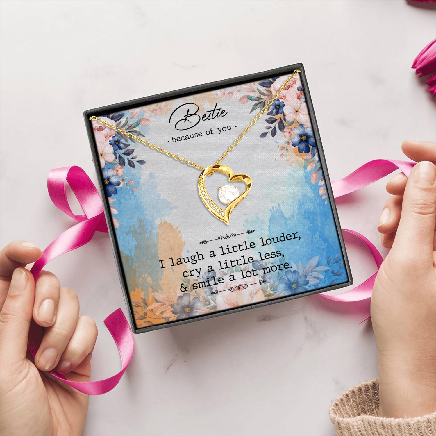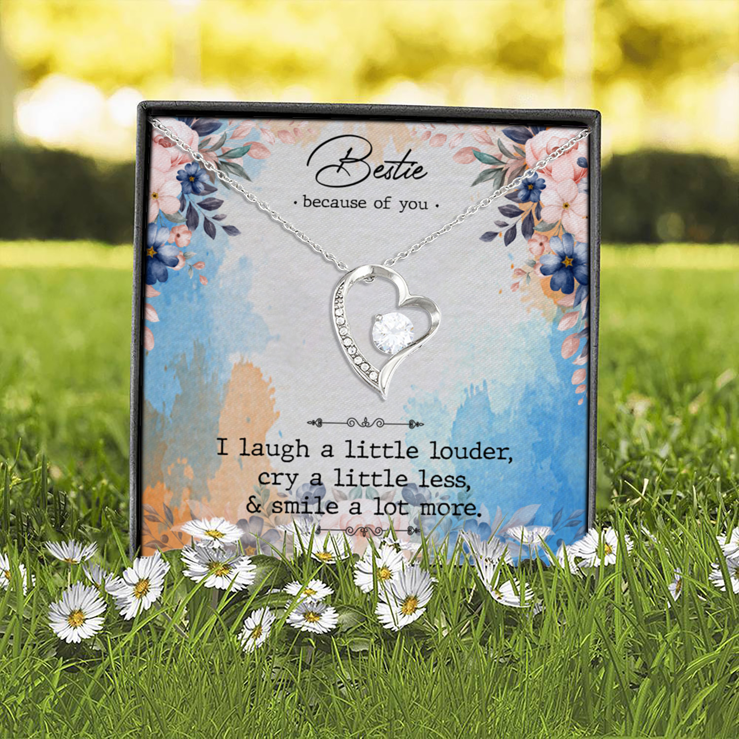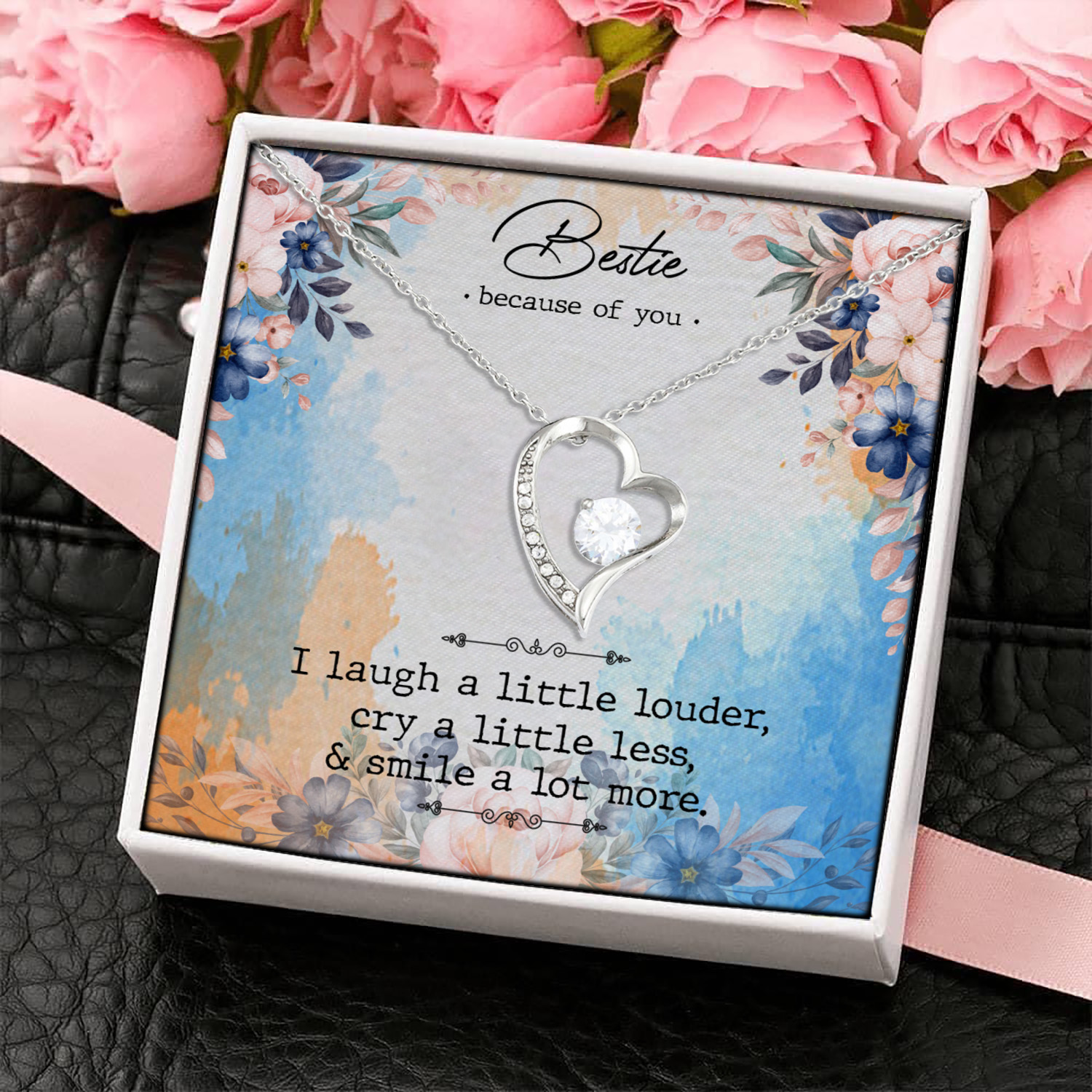 Let’s Shop Bestie Because Of You I Laugh Louder Cry Less Smile A Lot More Forever Love Pendant Necklace!