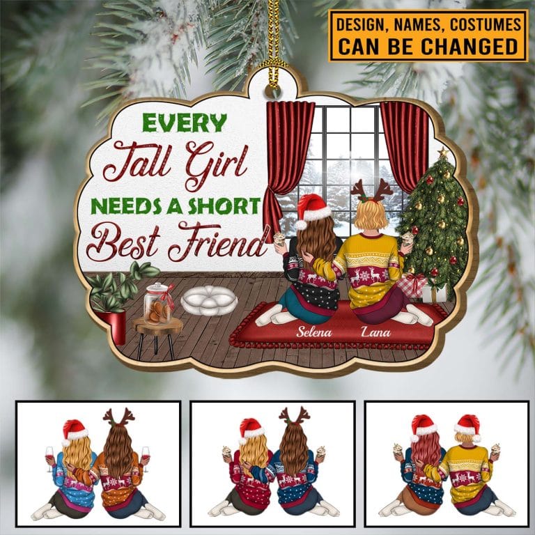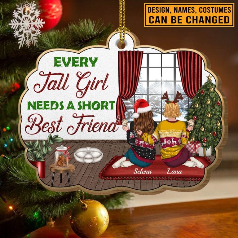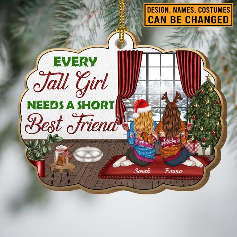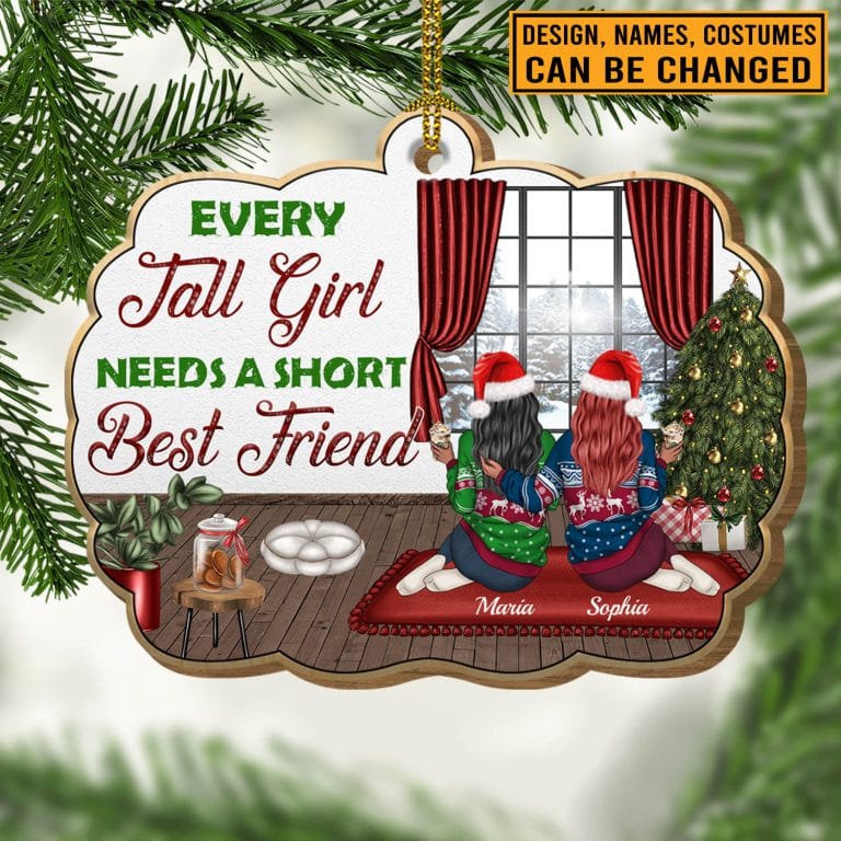 Let’s Shop Personalized Every Tall Girl Needs A Short Best Friend Custom Shaped Wooden Christmas Ornament for Bestie!