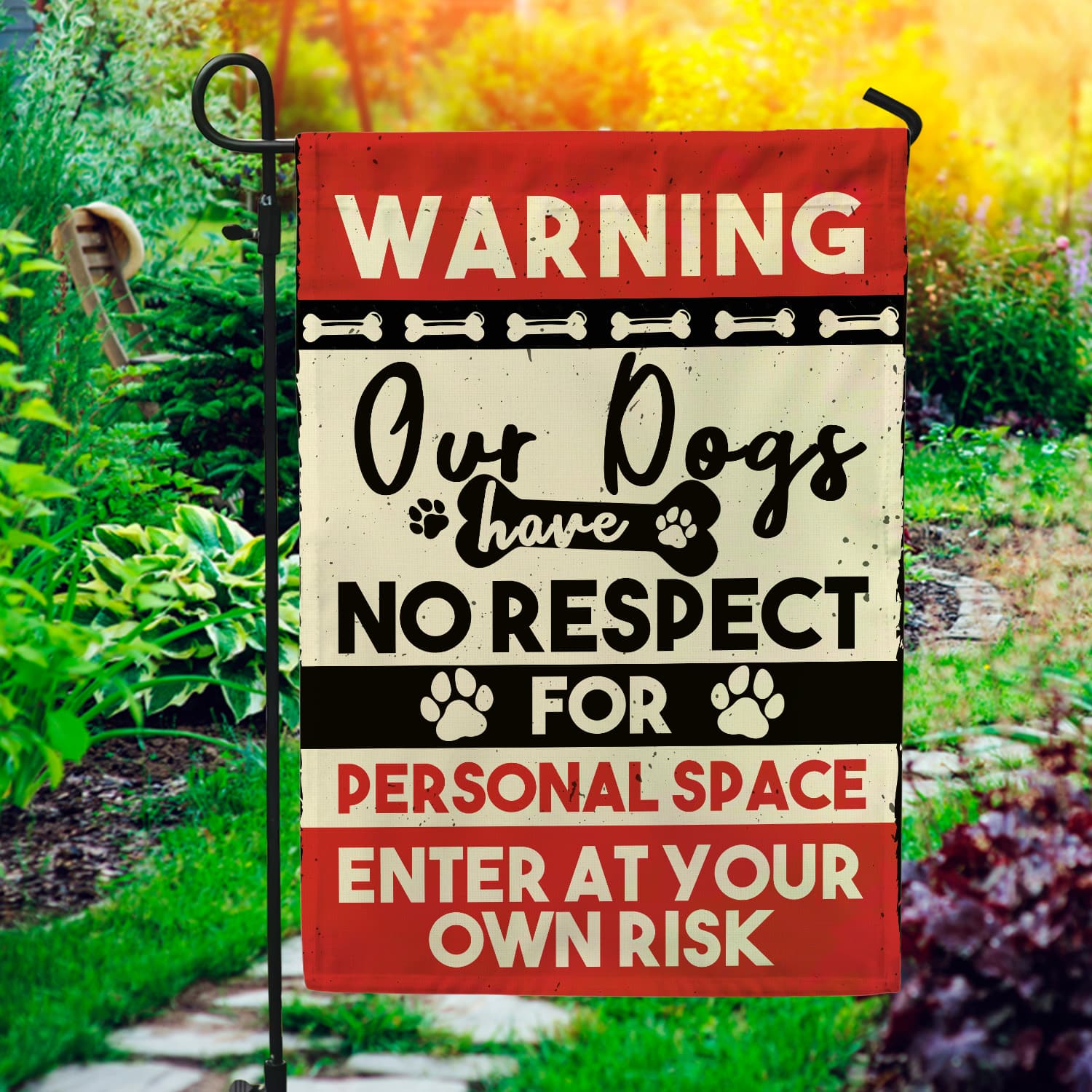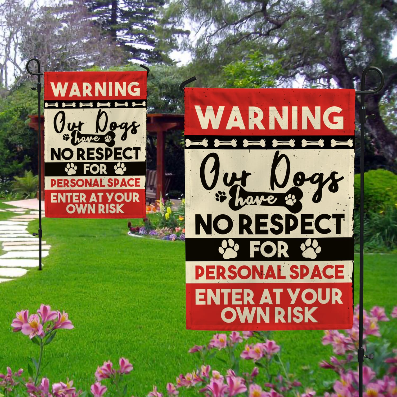 Let’s Shop Dog Warning Enter at Your Own Risk Funny Dog Garden Flag – House Flag – Wall Flag!