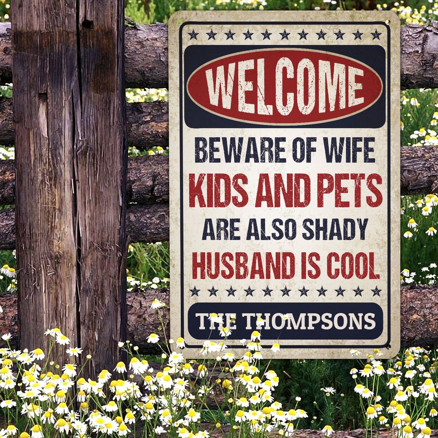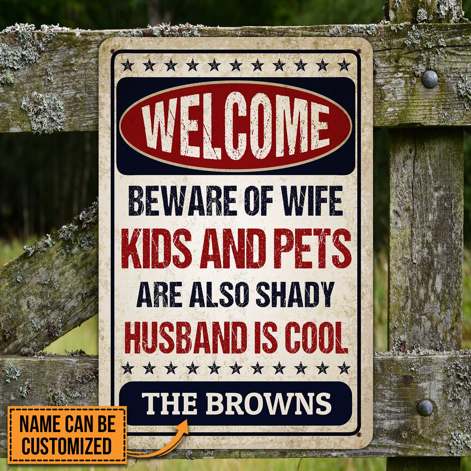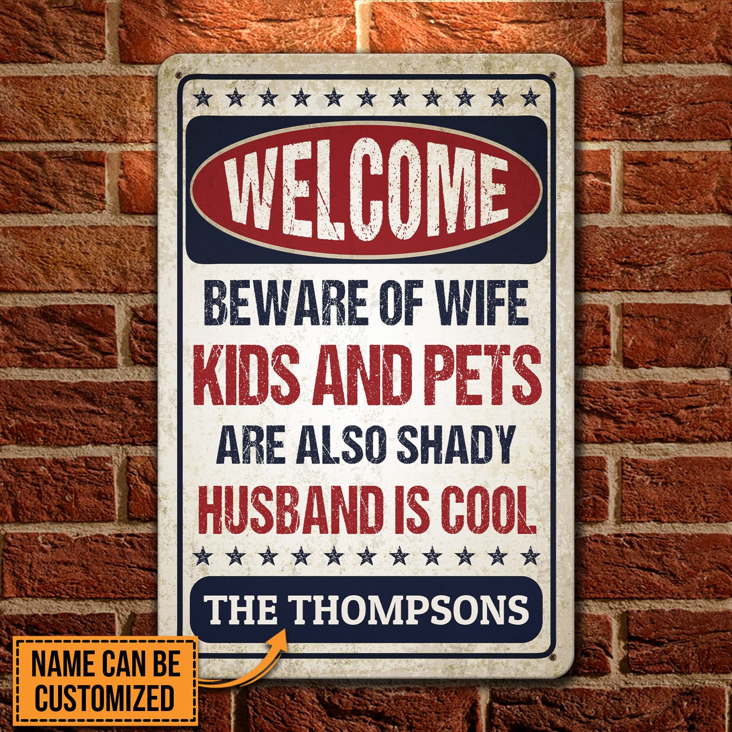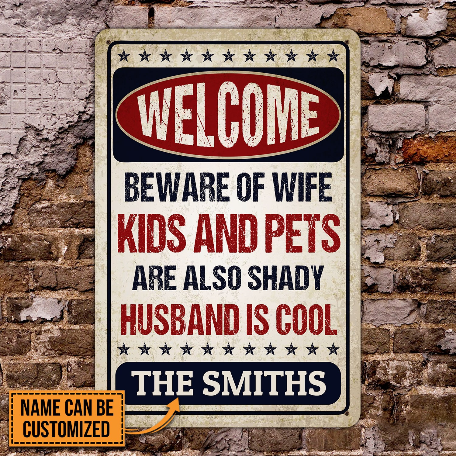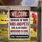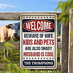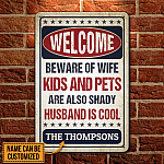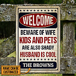 Let’s Shop Personalized Name Welcome Beware of Wife Kids and Pets Husband Is Cool Retro Decorative Metal Sign-Indoor Outdoor Decor!