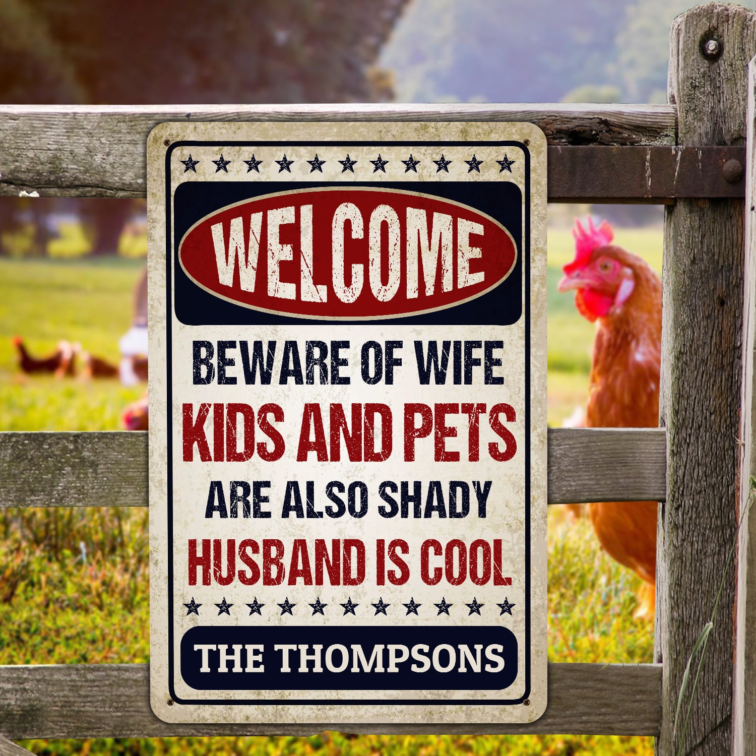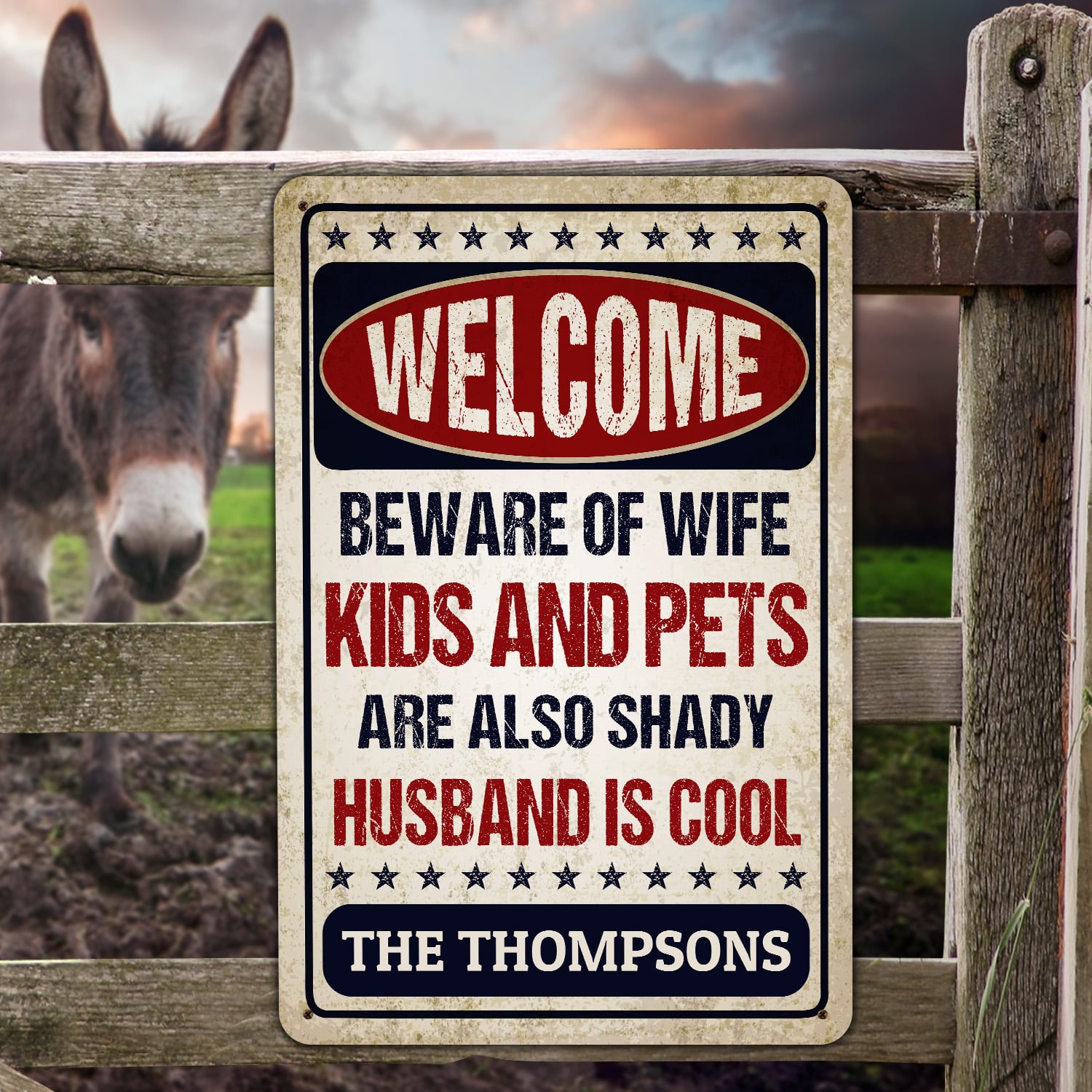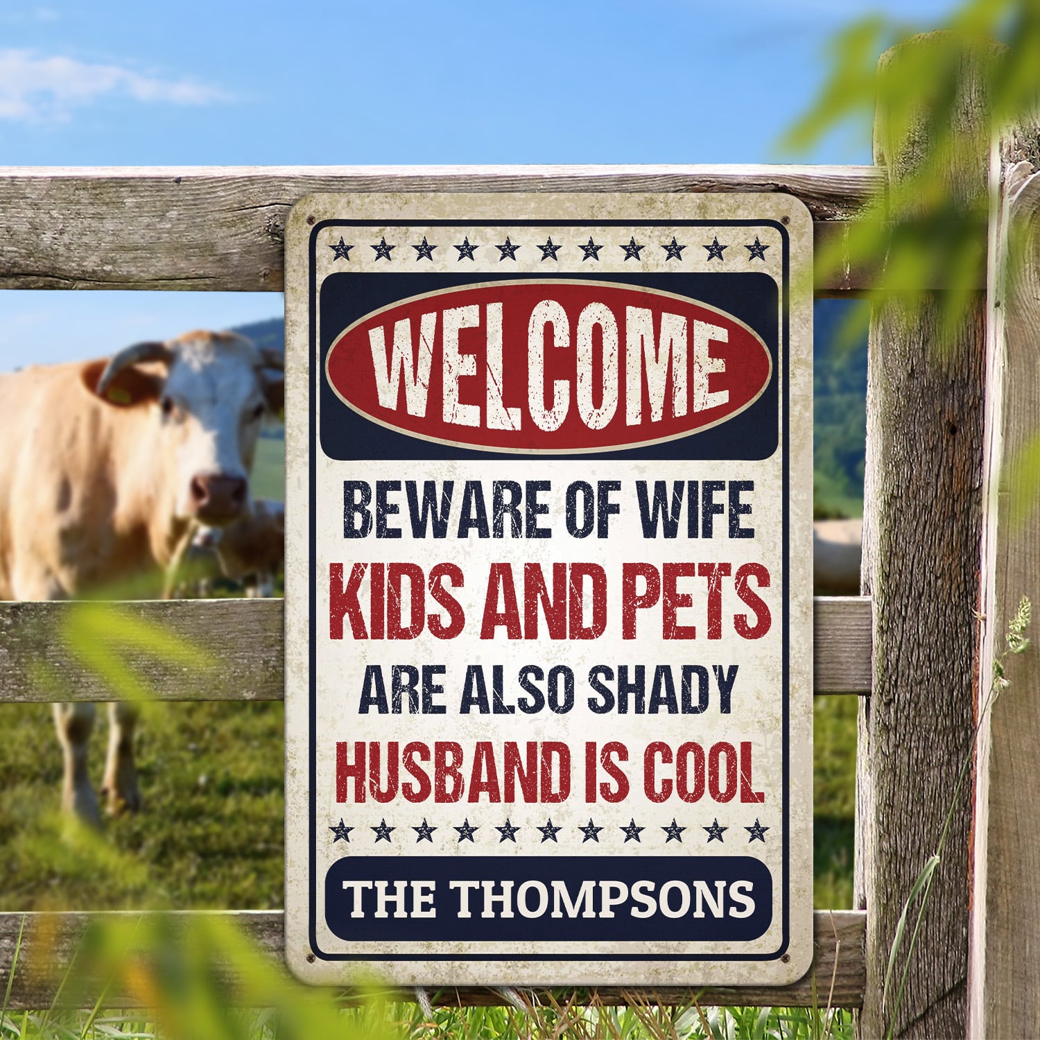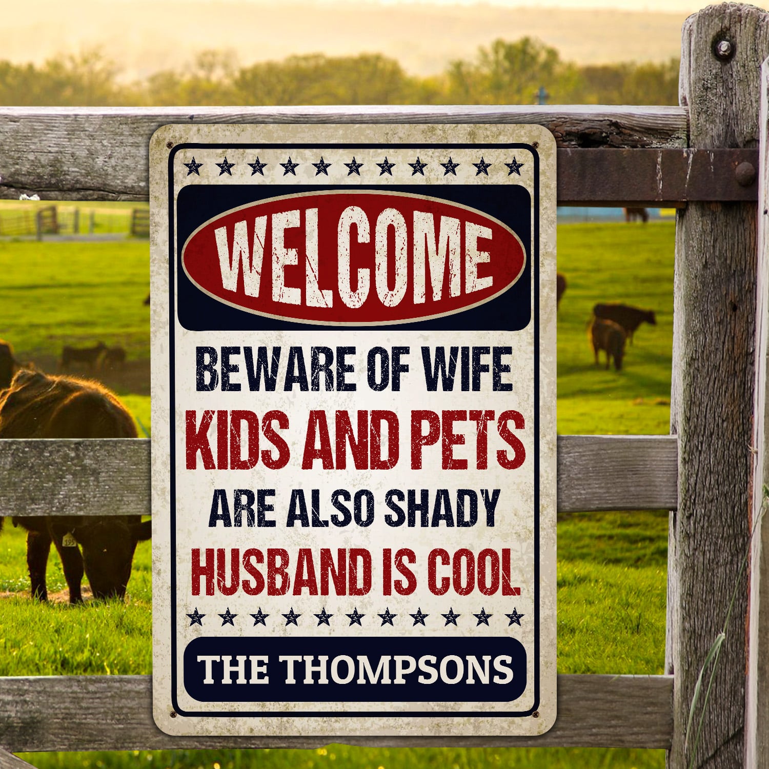 Let’s Shop Personalized Name Welcome Beware of Wife Kids and Pets Husband Is Cool Retro Decorative Metal Sign-Indoor Outdoor Decor!