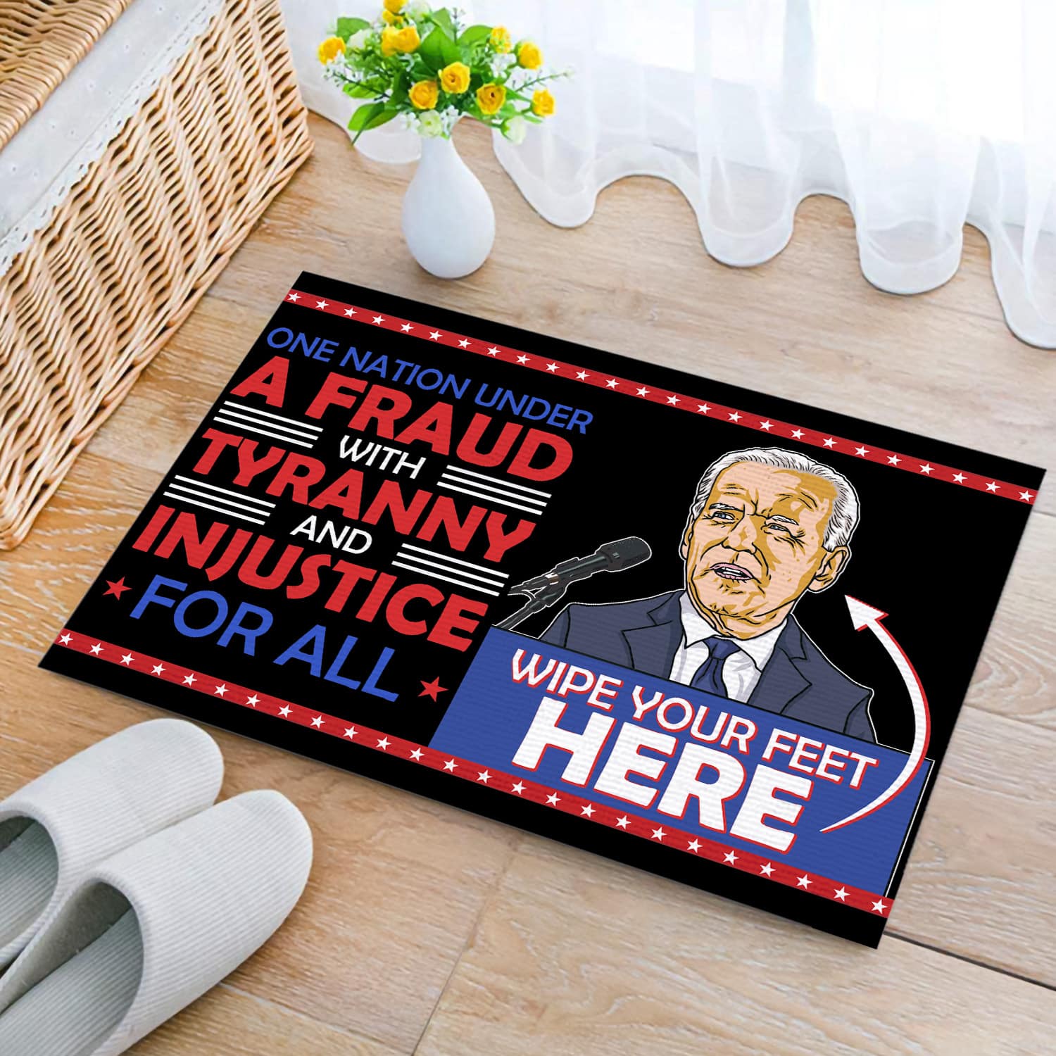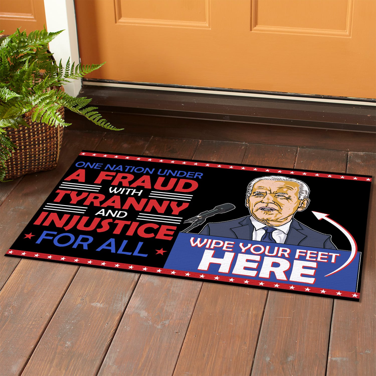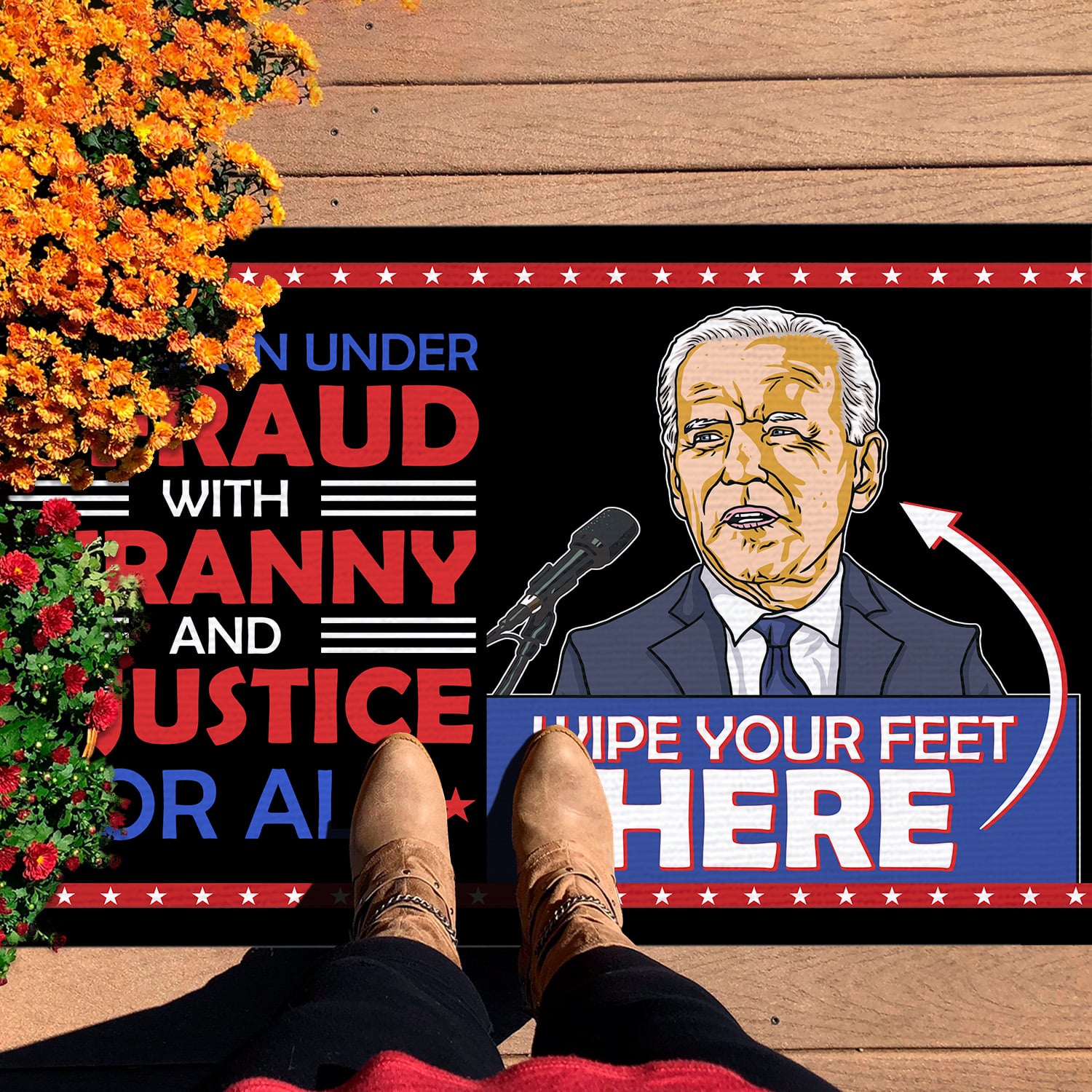Are you spending too much time to find creative merchandise for you or suitable & special gifts for your mommy, your daddy, your son, your daughter, your children, your friends or someone you love? The struggle is over because we have various Nation Under a Fraud Doormat, Fraud with Tyranny and Injustice for All Doormat, Anti Biden Wipe Your Feet Here, Biden Not My President Doormat, Rigged Biden Doormat, Biden Stop the Steal Doormat, Wipe Your Feet Mat which will make perfect presents for your beloveds. In order to make your present stand out, we have created lots of unique and awesome customized photo gifts & personalized designs.