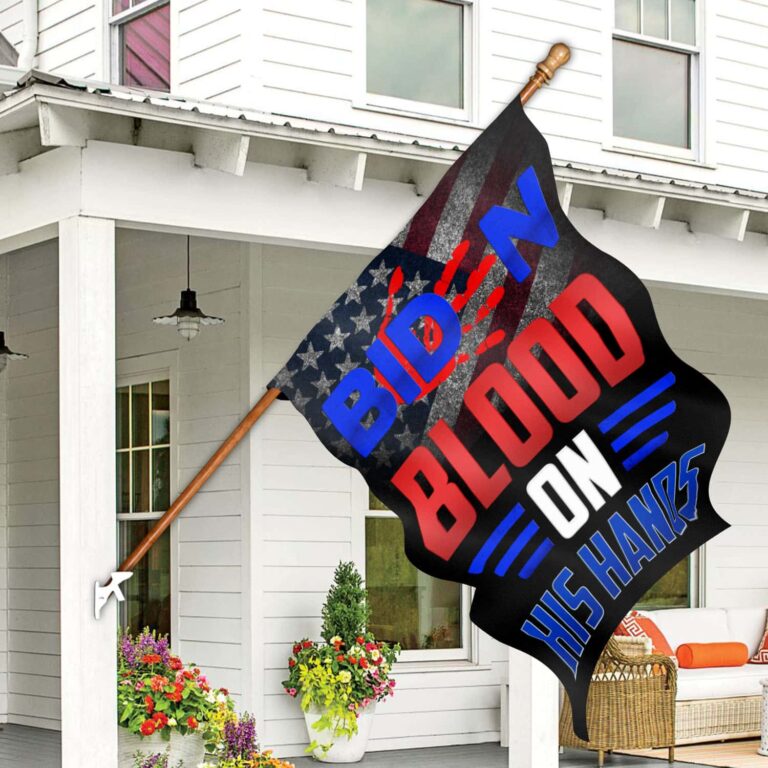 Let’s Shop Biden Blood On His Hands Outdoor Garden Flag – House Flag – Wall Flag – Anti Biden Flag – Impeach Biden Flag!