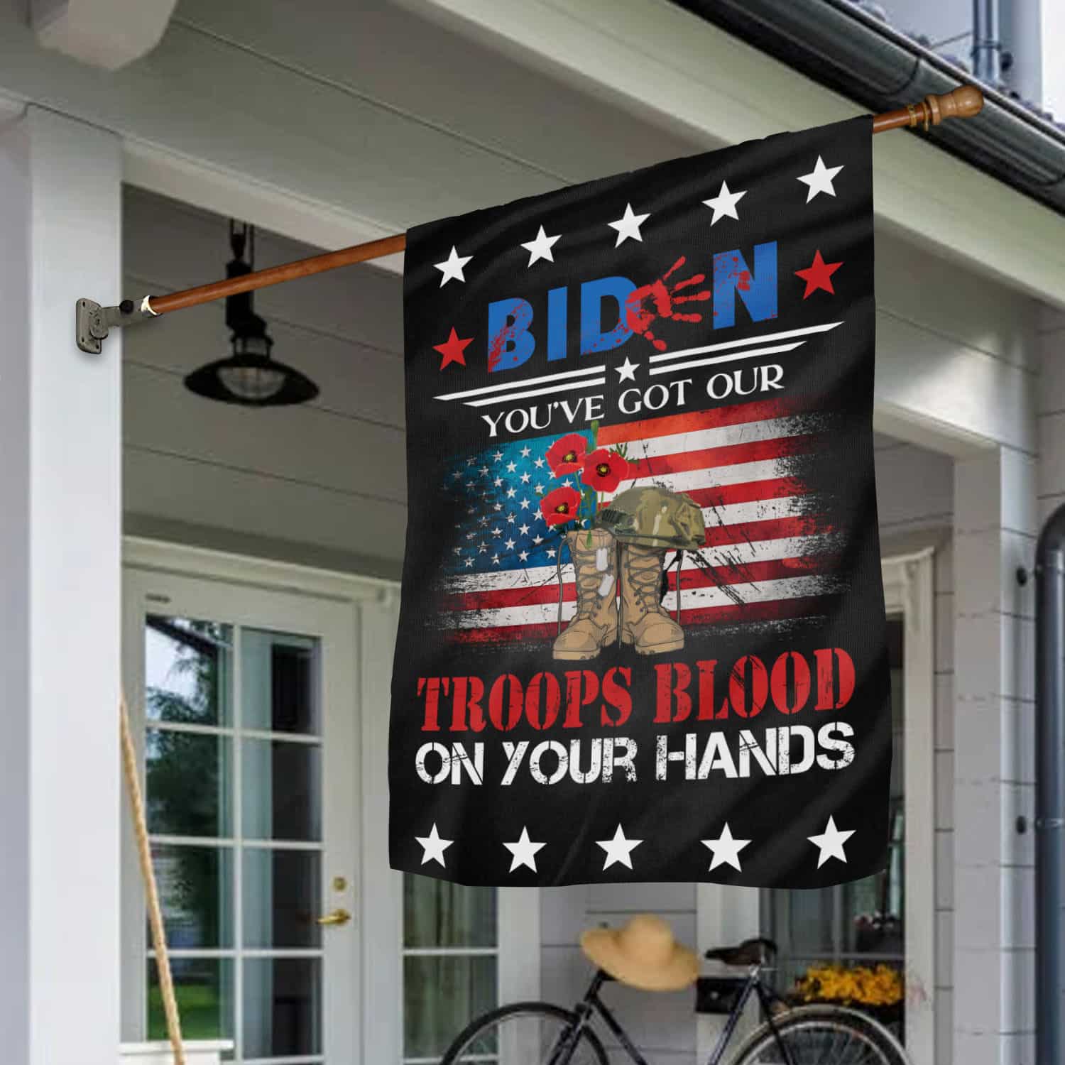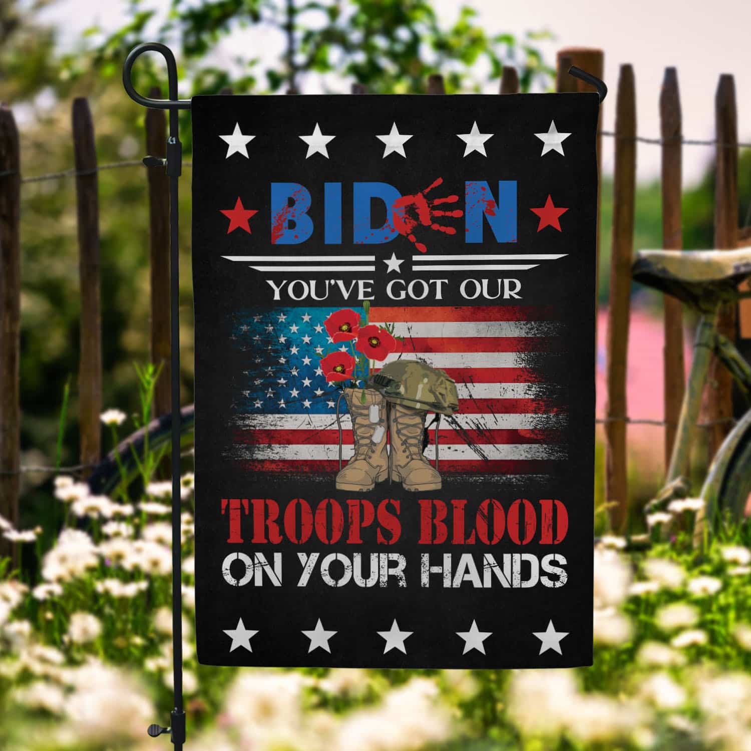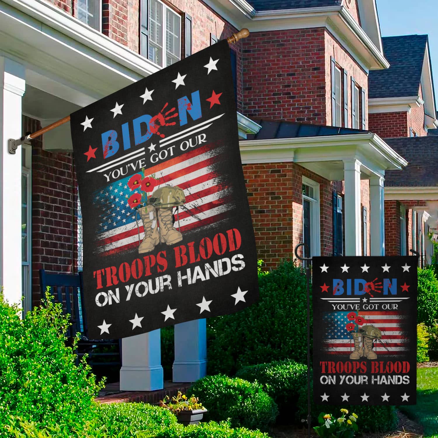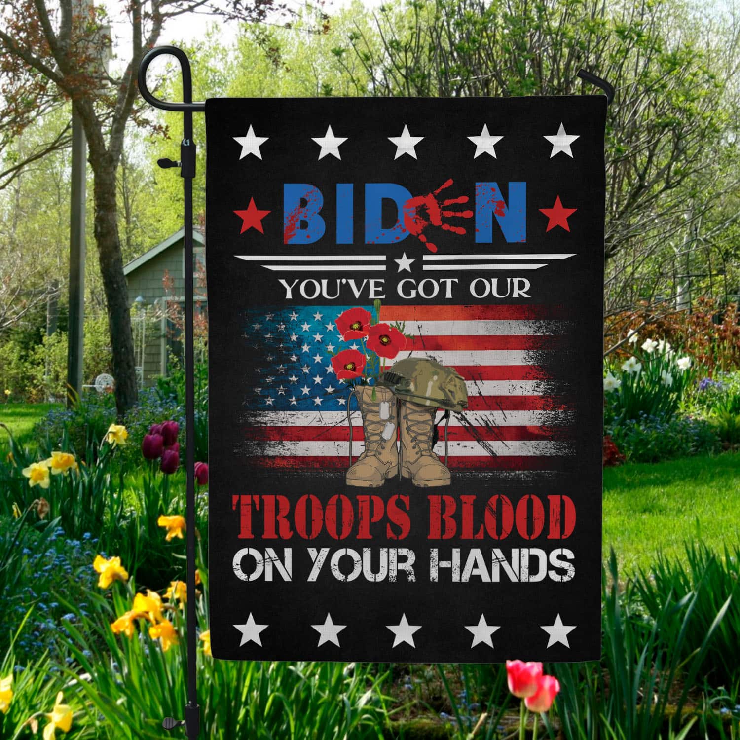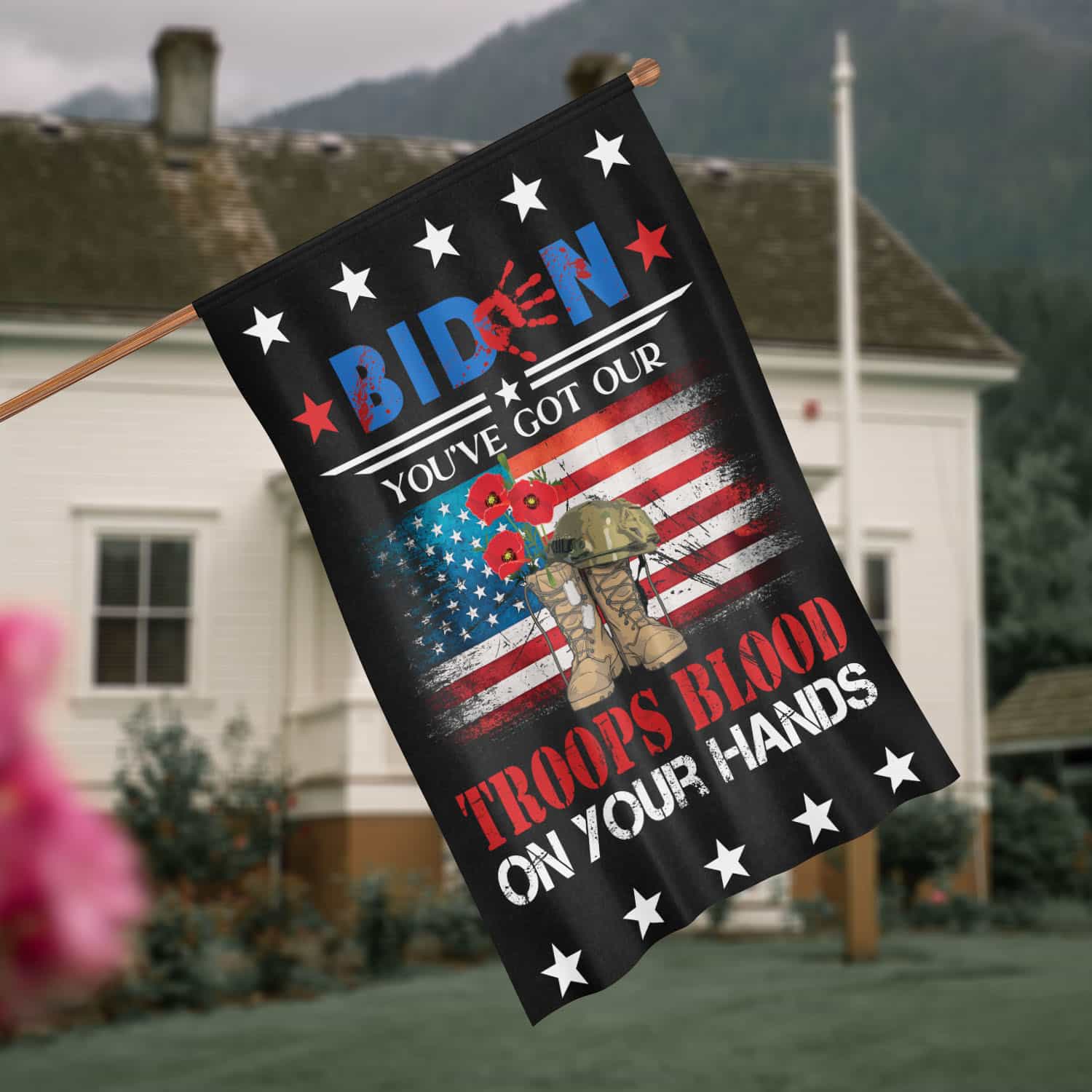 Let’s Shop Biden You’ve Got Our Troops Blood On Your Hands Outdoor Indoor Garden Flag – House Flag – Wall Flag!