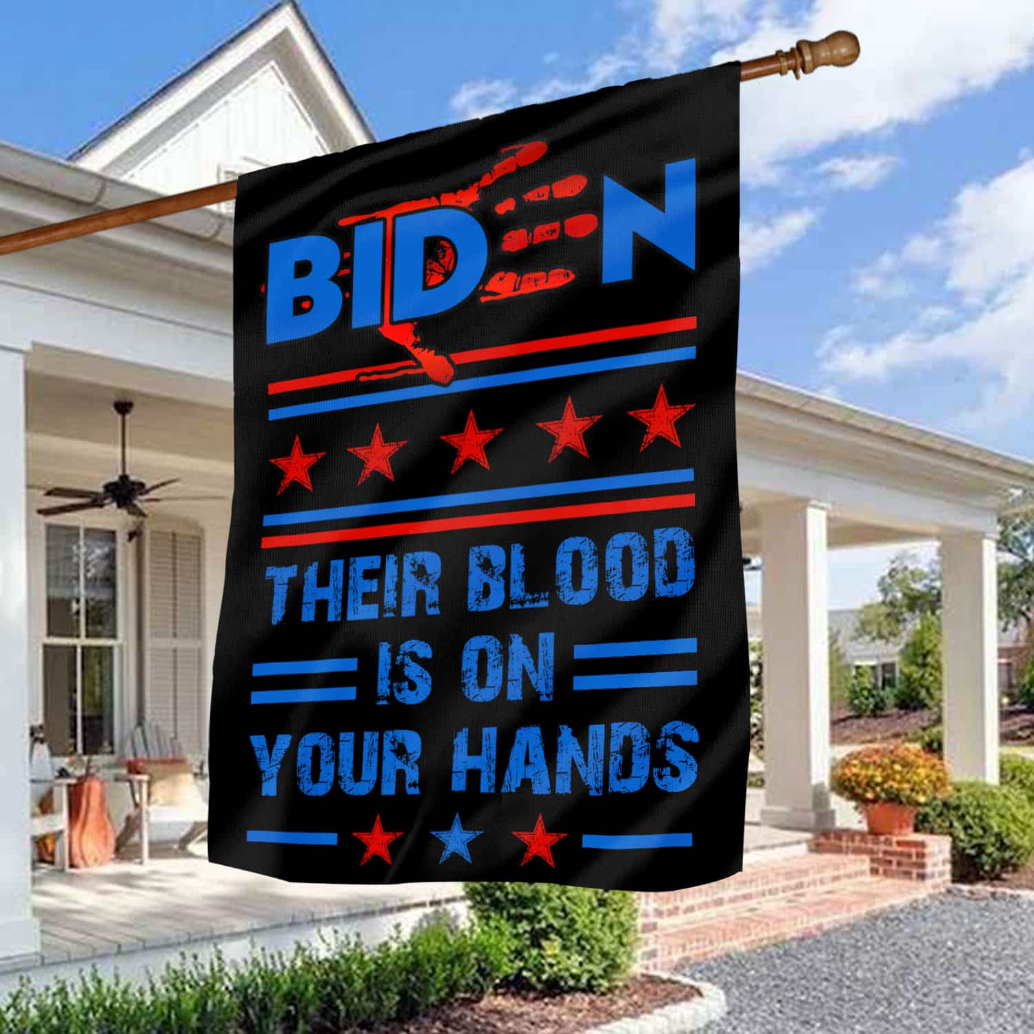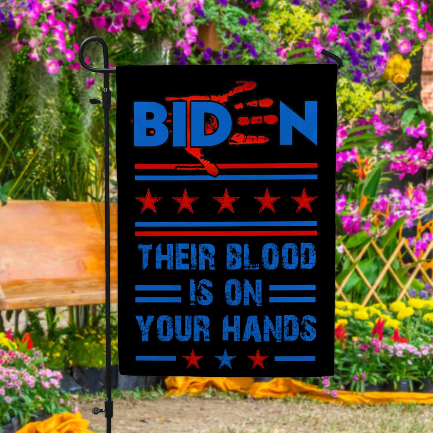 Let’s Shop Impeach Biden Their Blood On Your Hands Garden Flag – Joe Biden Handprint Biden Blood On His Hands House Flag!