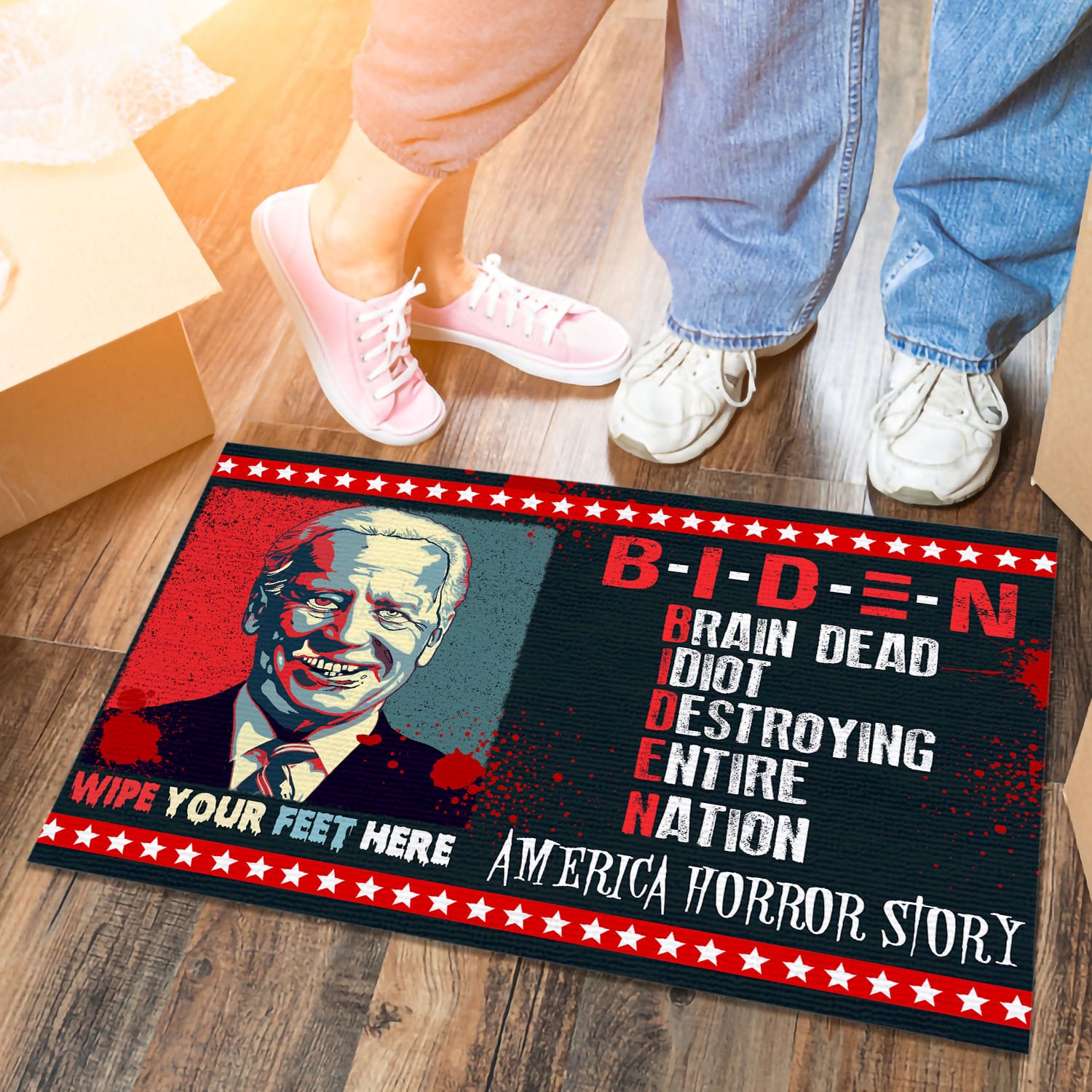 Let’s Shop Biden Brain Dead Idiot Destroying Entire Nation House Doormat – Funny Biden Halloween Outdoor Indoor Decorative Doormat!