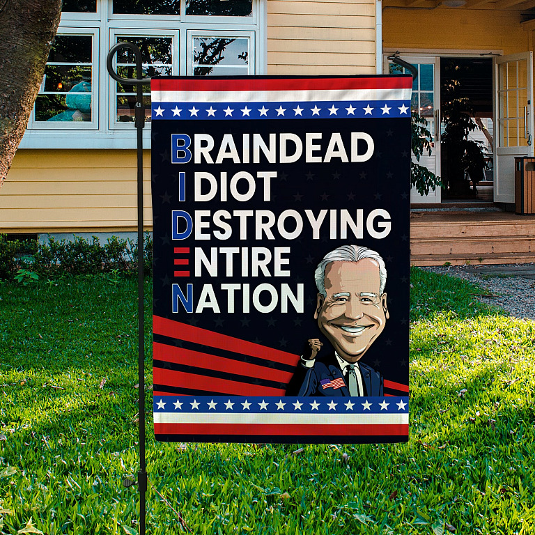 Let’s Shop Biden Braindead Idiot Destroying Entire Nation Decorative Garden Flag – House Flag – Wall Flag!