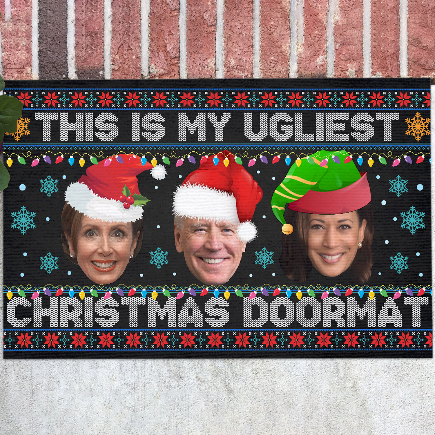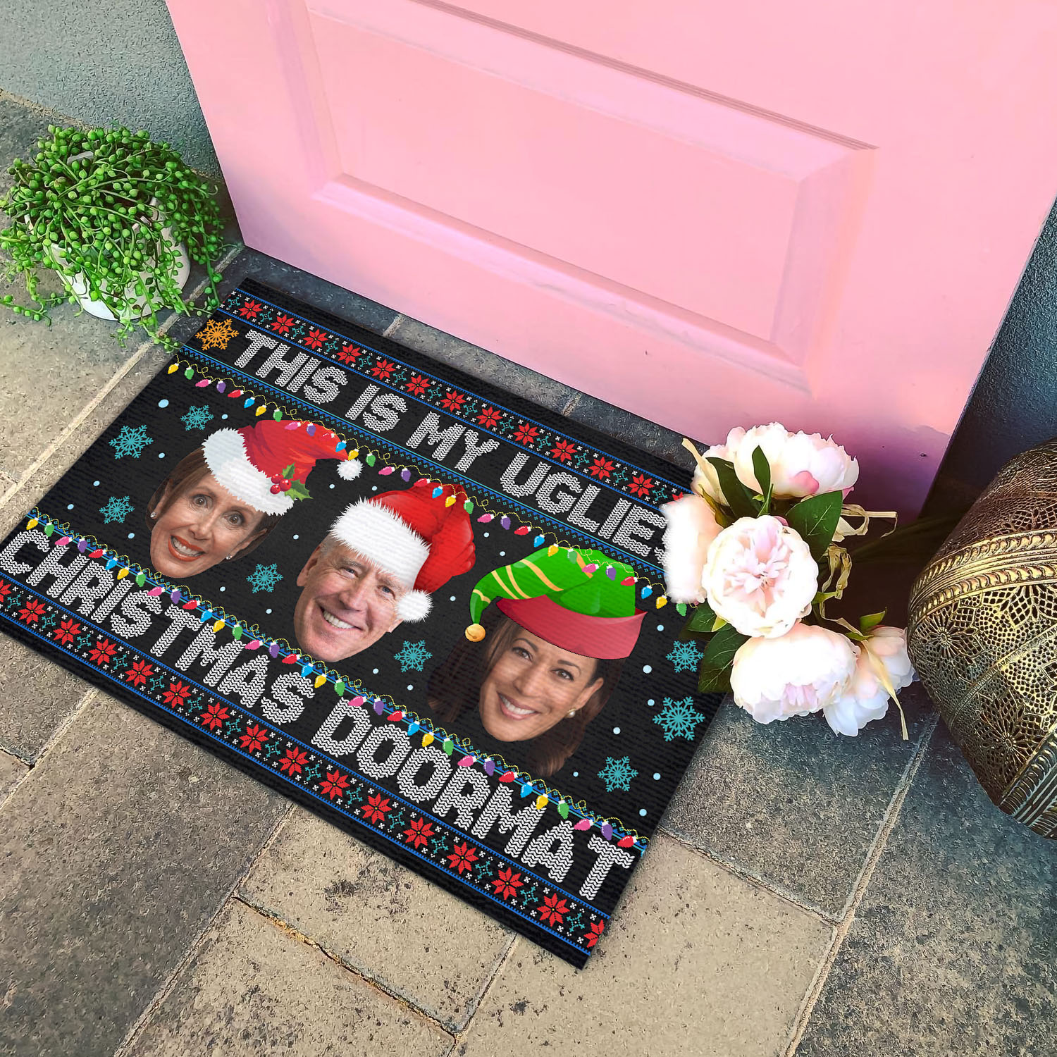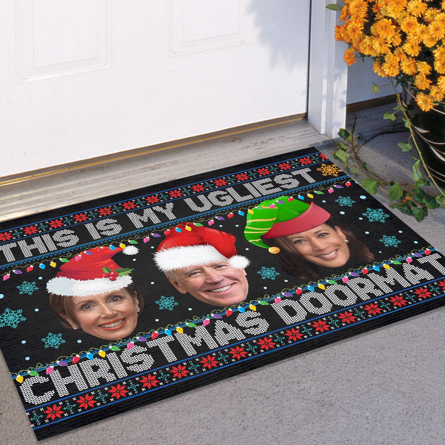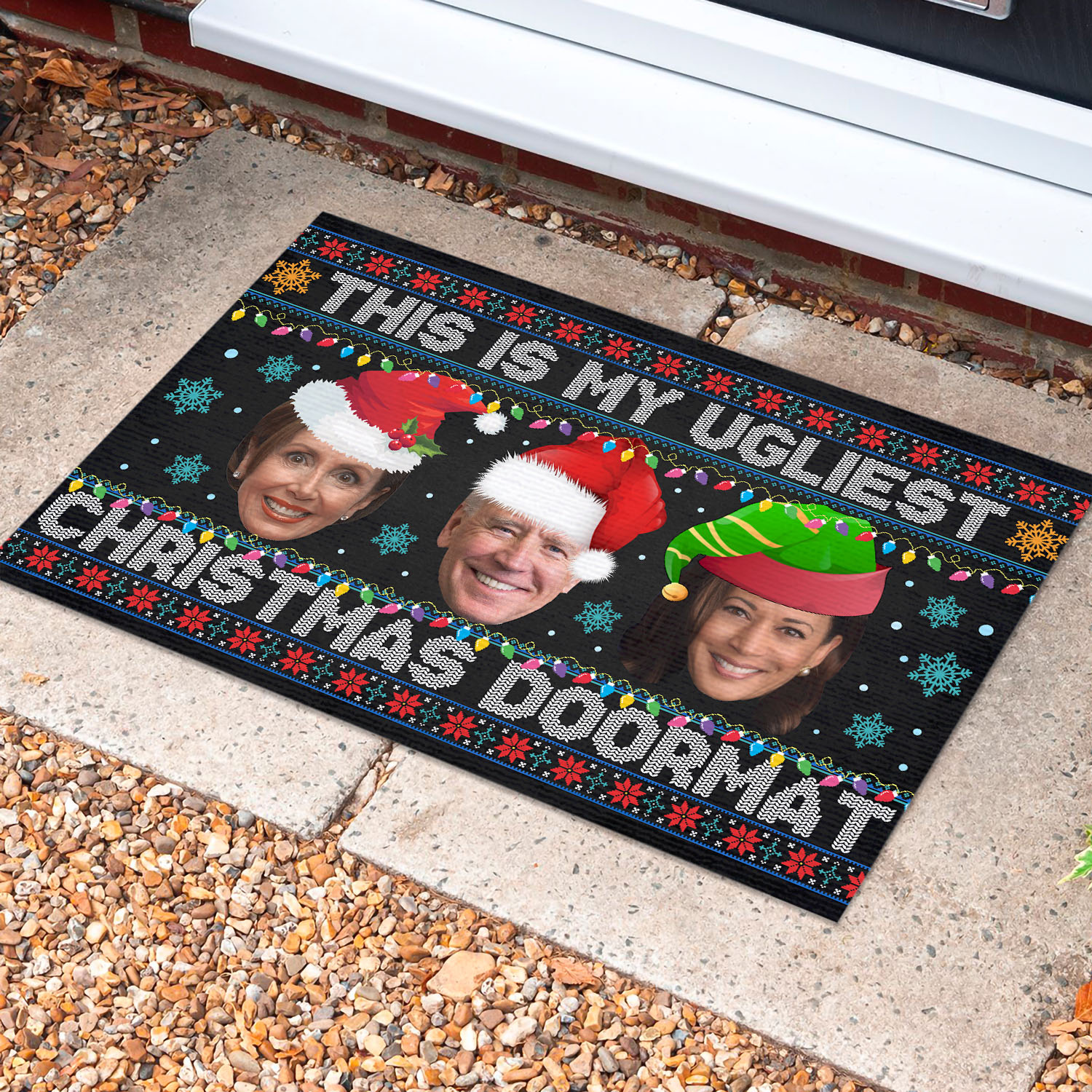 Let’s Shop This Is My Ugliest Christmas Sweater Funny Biden Nancy Kamala Ugly Christmas House Doormat – Outdoor Indoor Doormat!