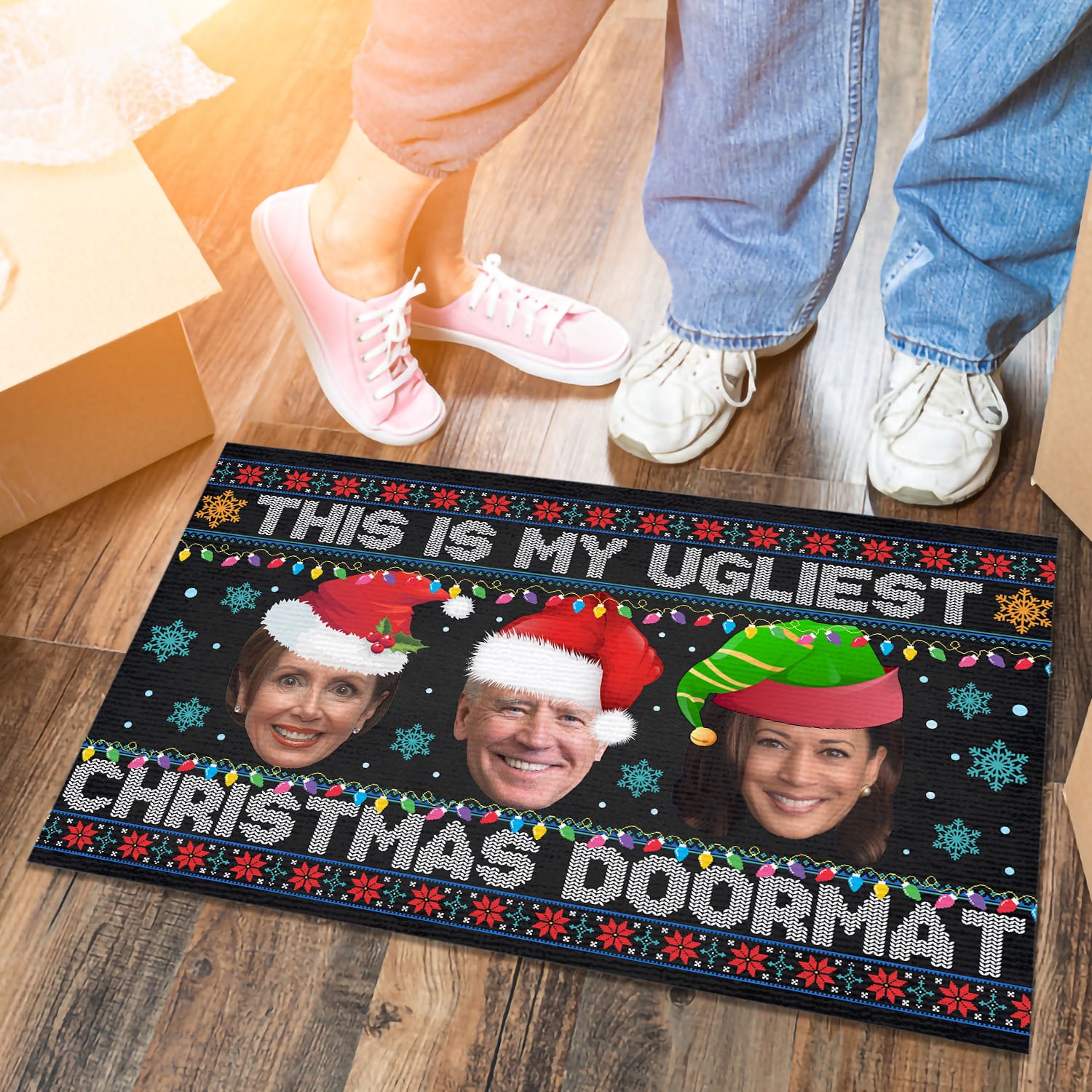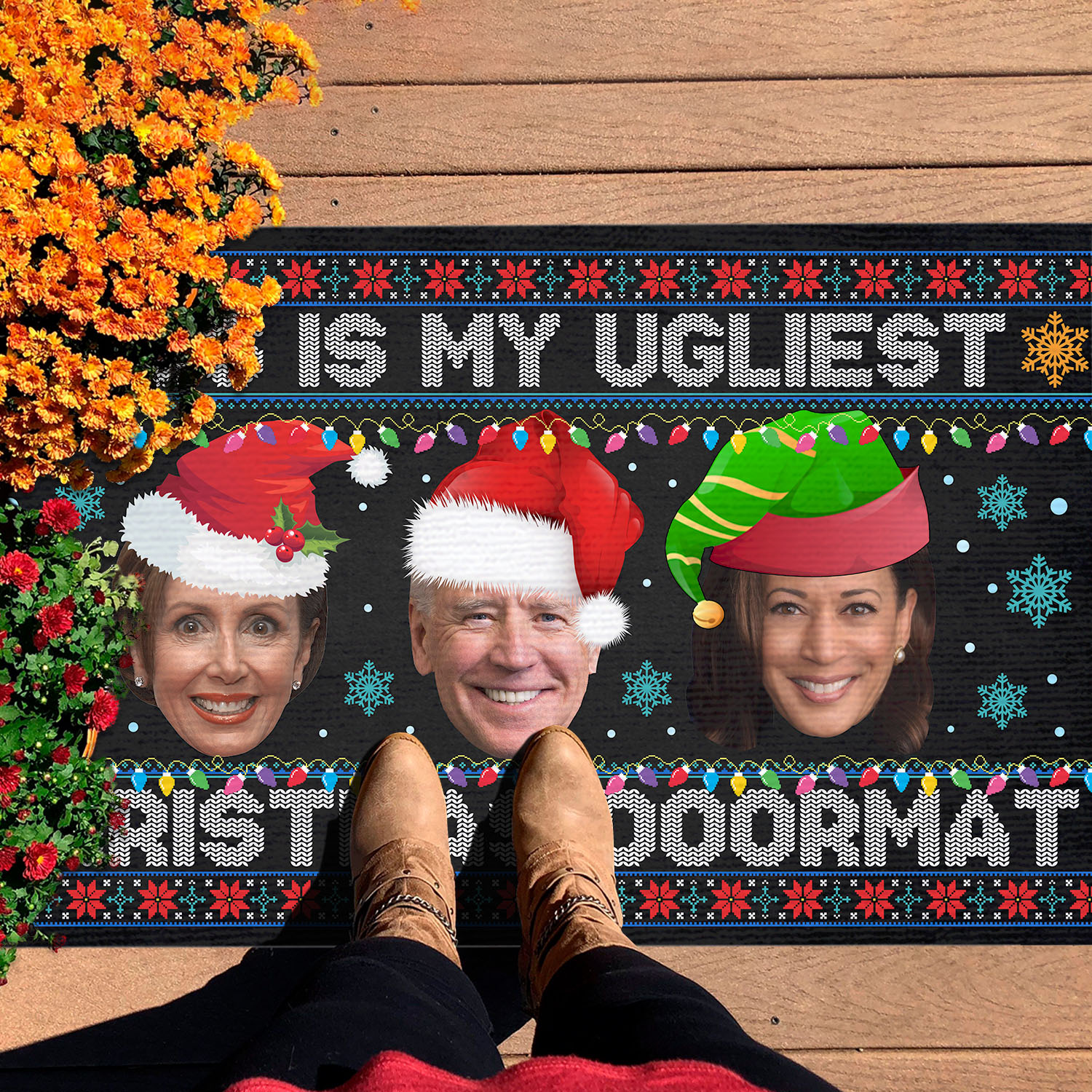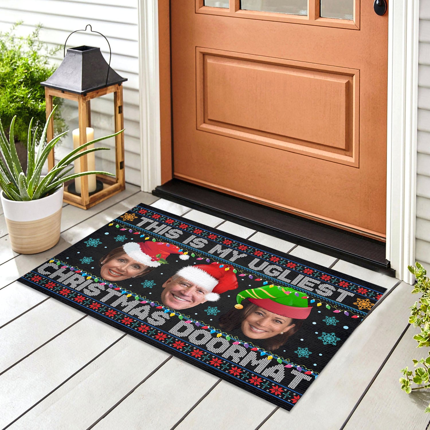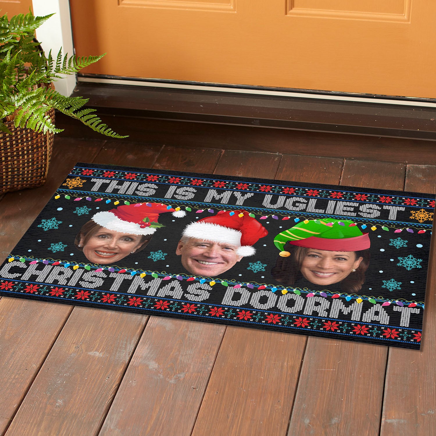 Let’s Shop This Is My Ugliest Christmas Sweater Funny Biden Nancy Kamala Ugly Christmas House Doormat – Outdoor Indoor Doormat!