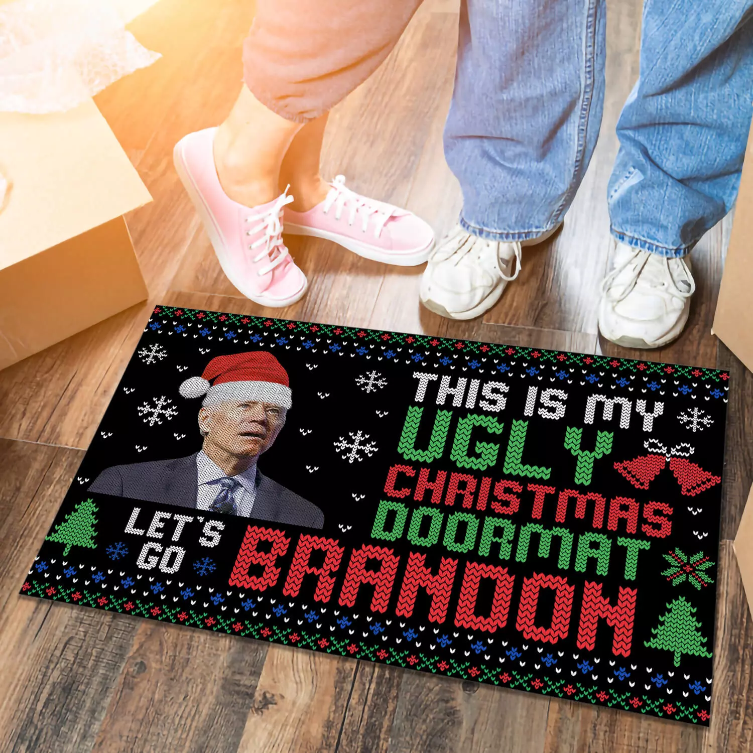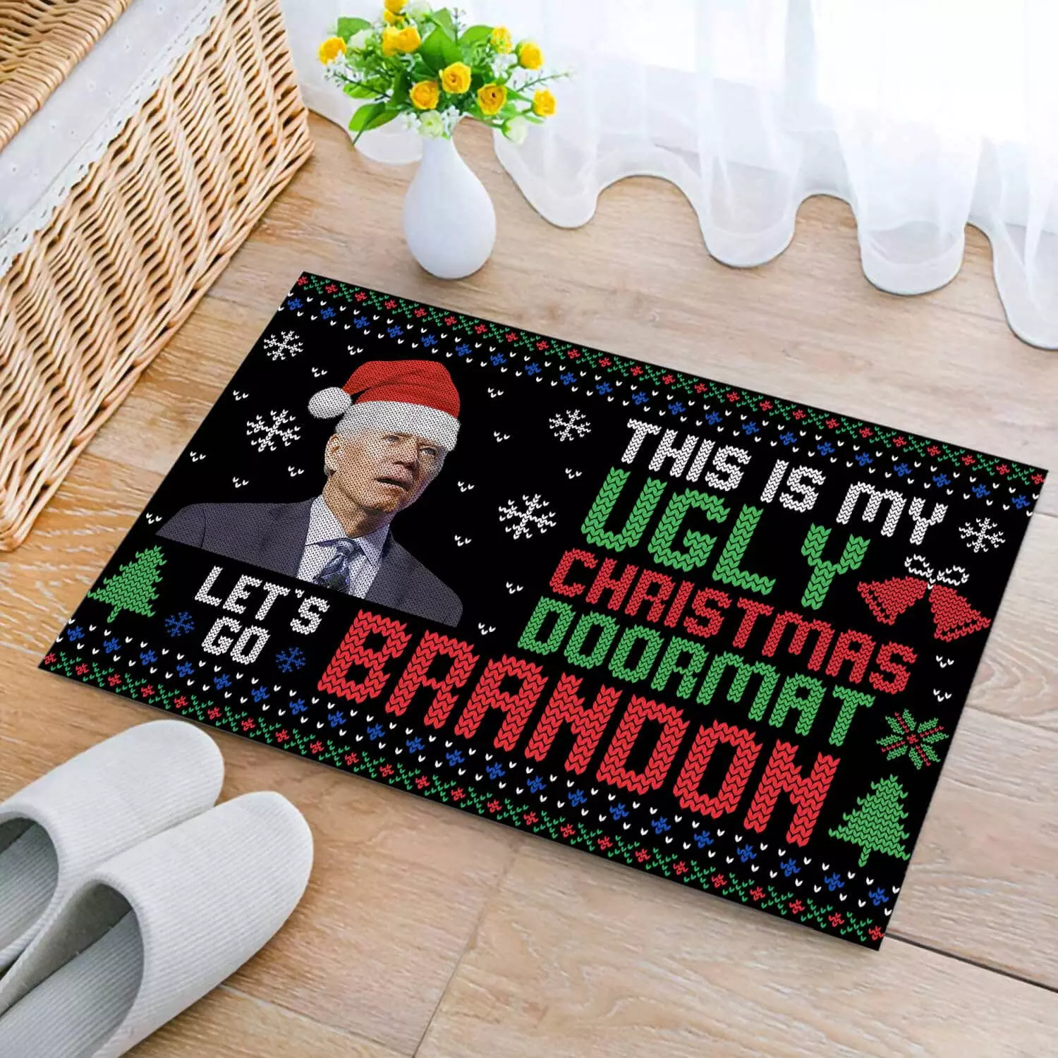 Let’s Shop This Is My Ugly Christmas Doormat Let’s Go Brandon Doormat – Funny Joe Biden Christmas Doormat!