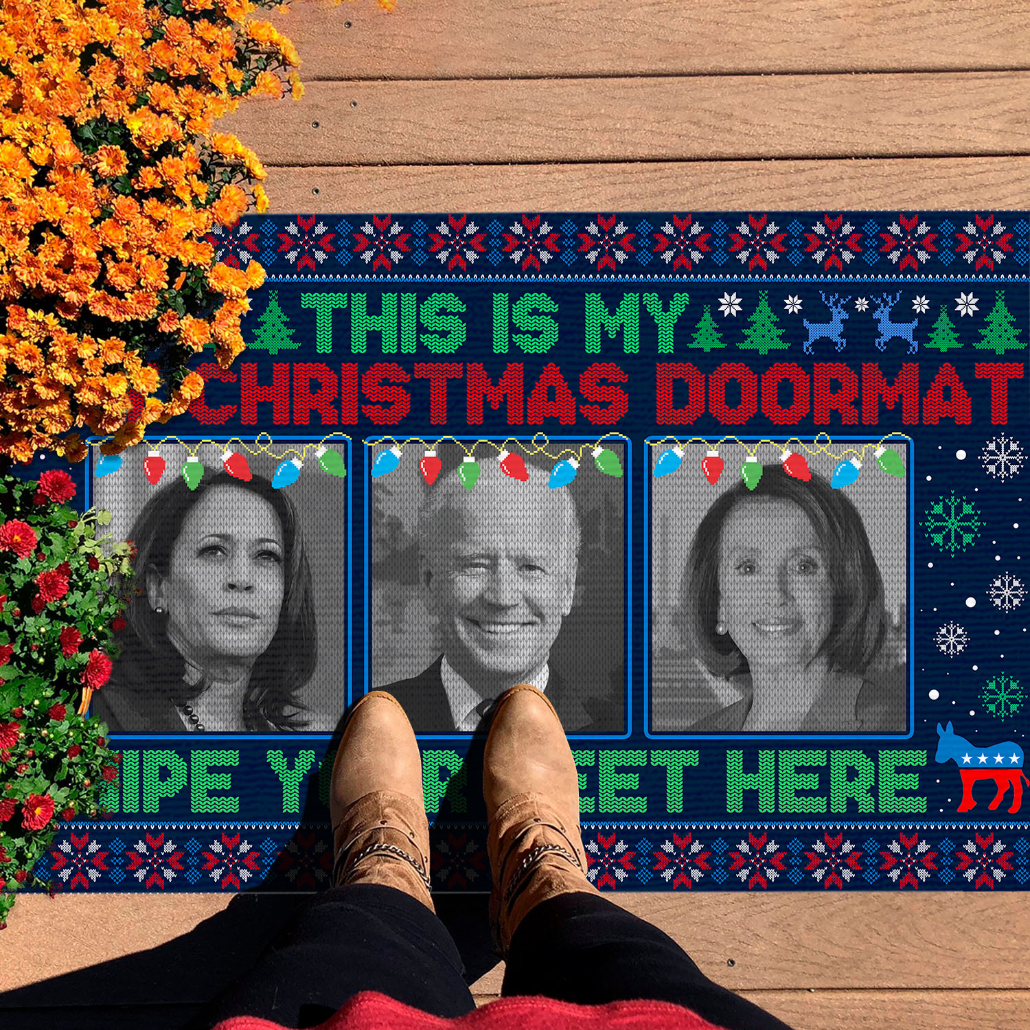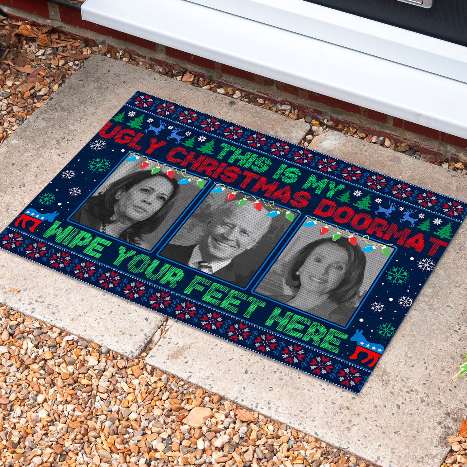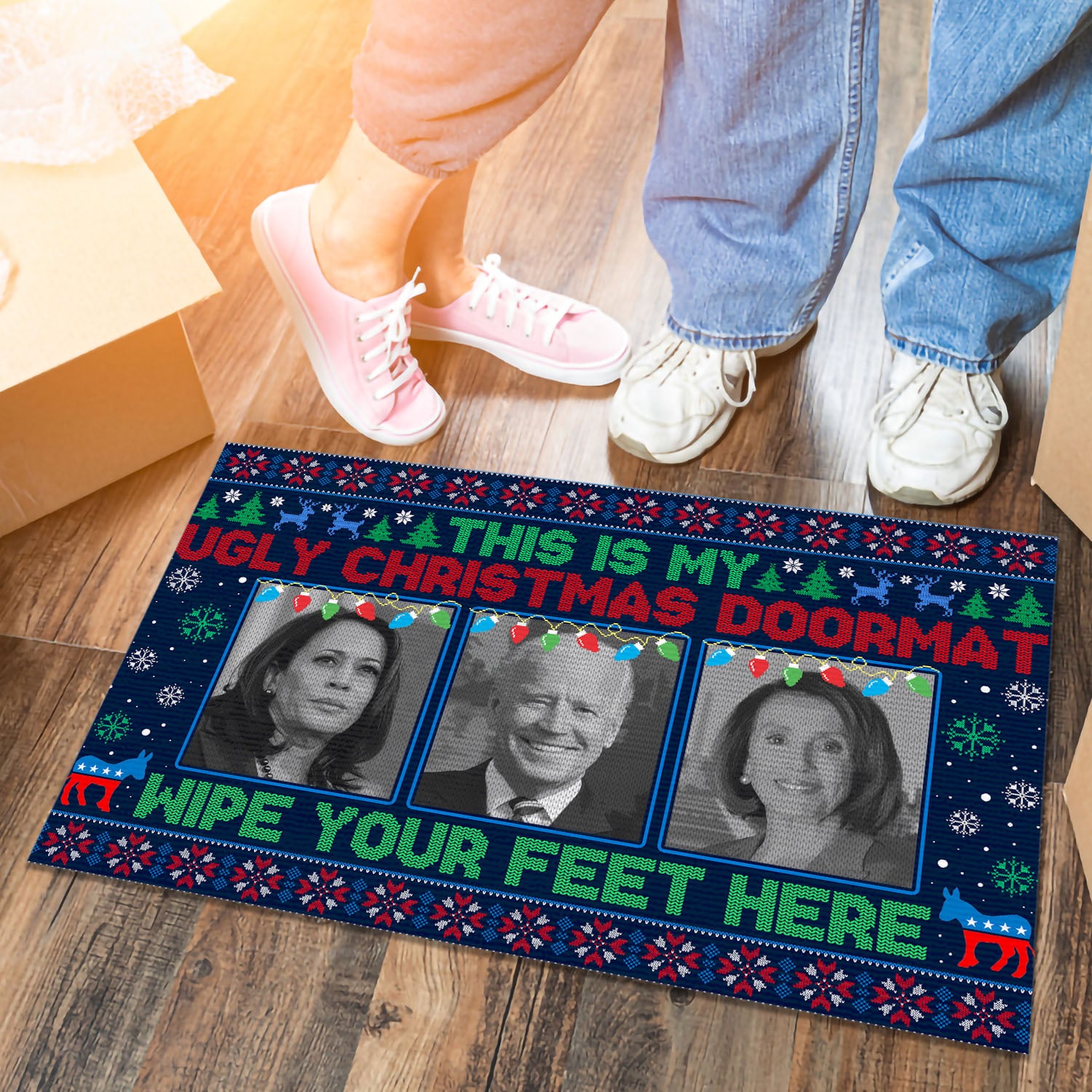 Let’s Shop This Is My Ugly Christmas Doormat Wipe Your Feet Here Funny Nancy Biden Harris House Doormat – Outdoor Doormat!