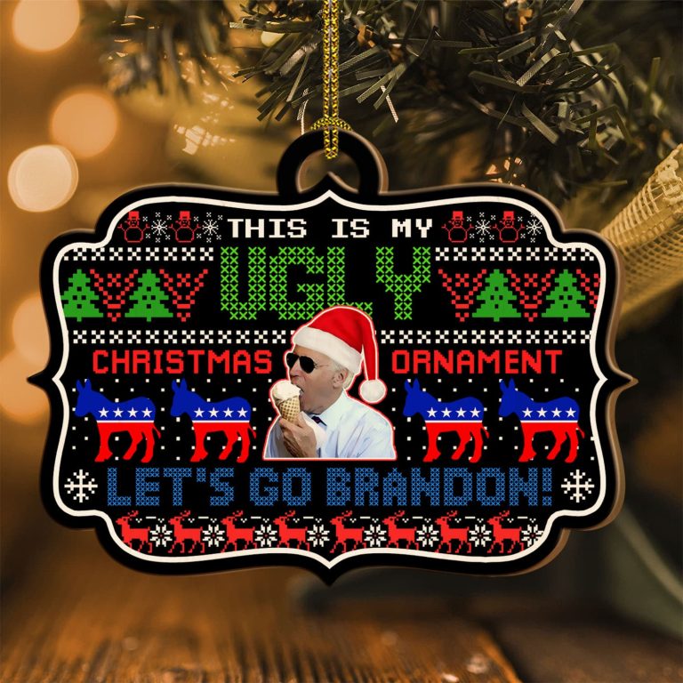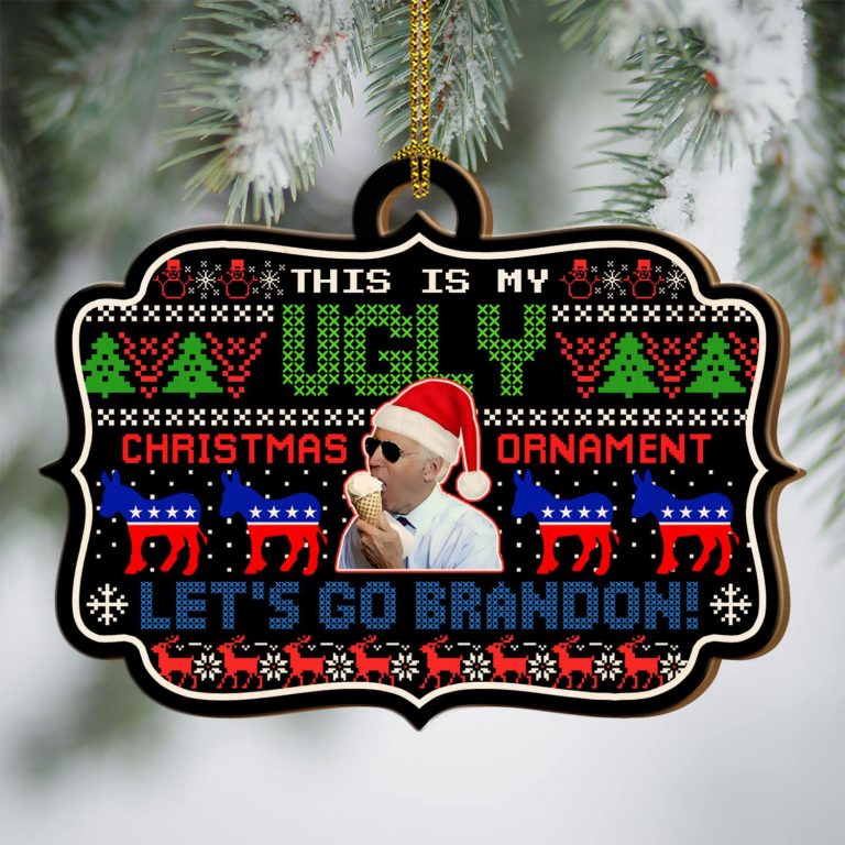 Let’s Shop This Is My Ugly Christmas Ornament Let’s Go Brandon Funny Biden Custom Shaped Wooden Christmas Ornament Keepsake!