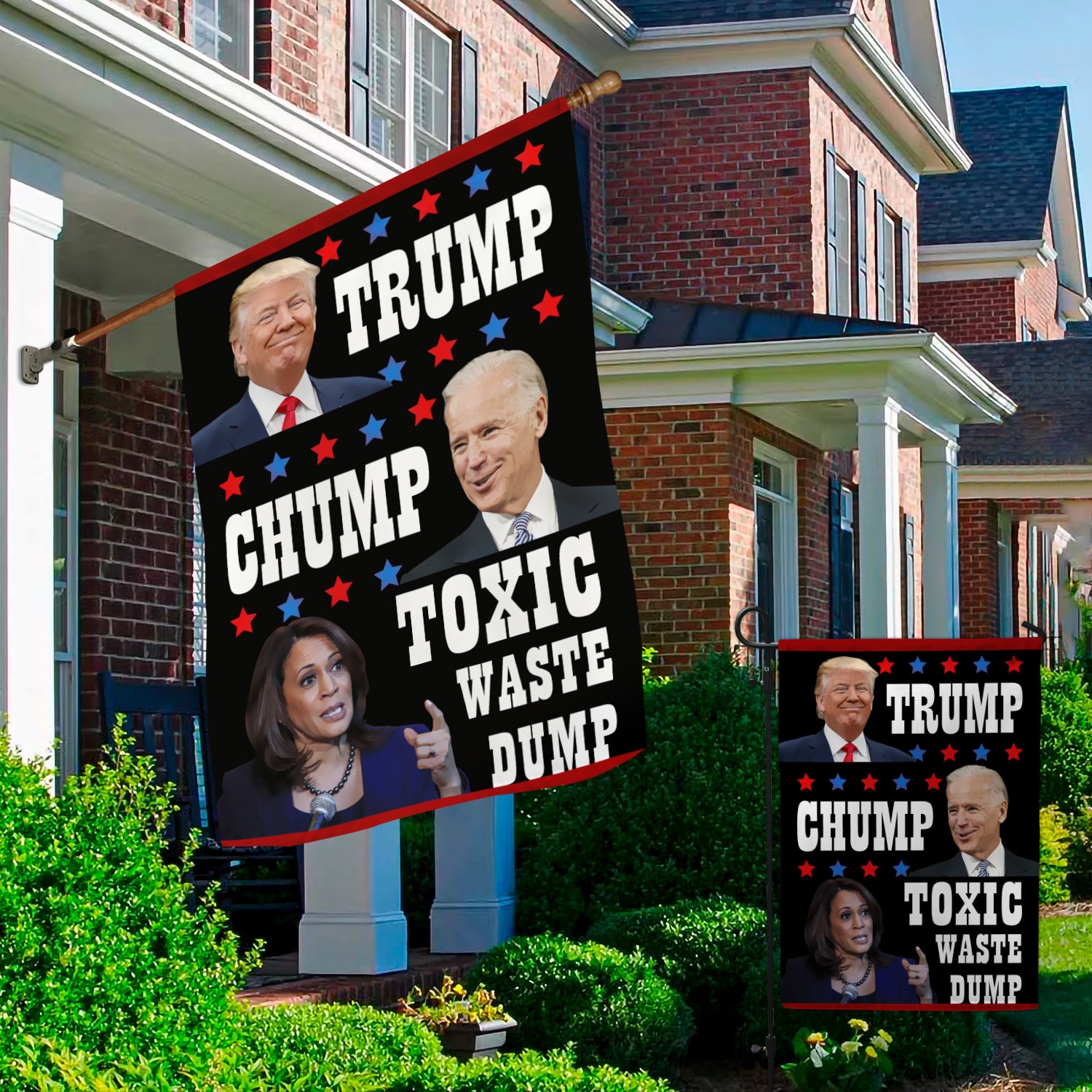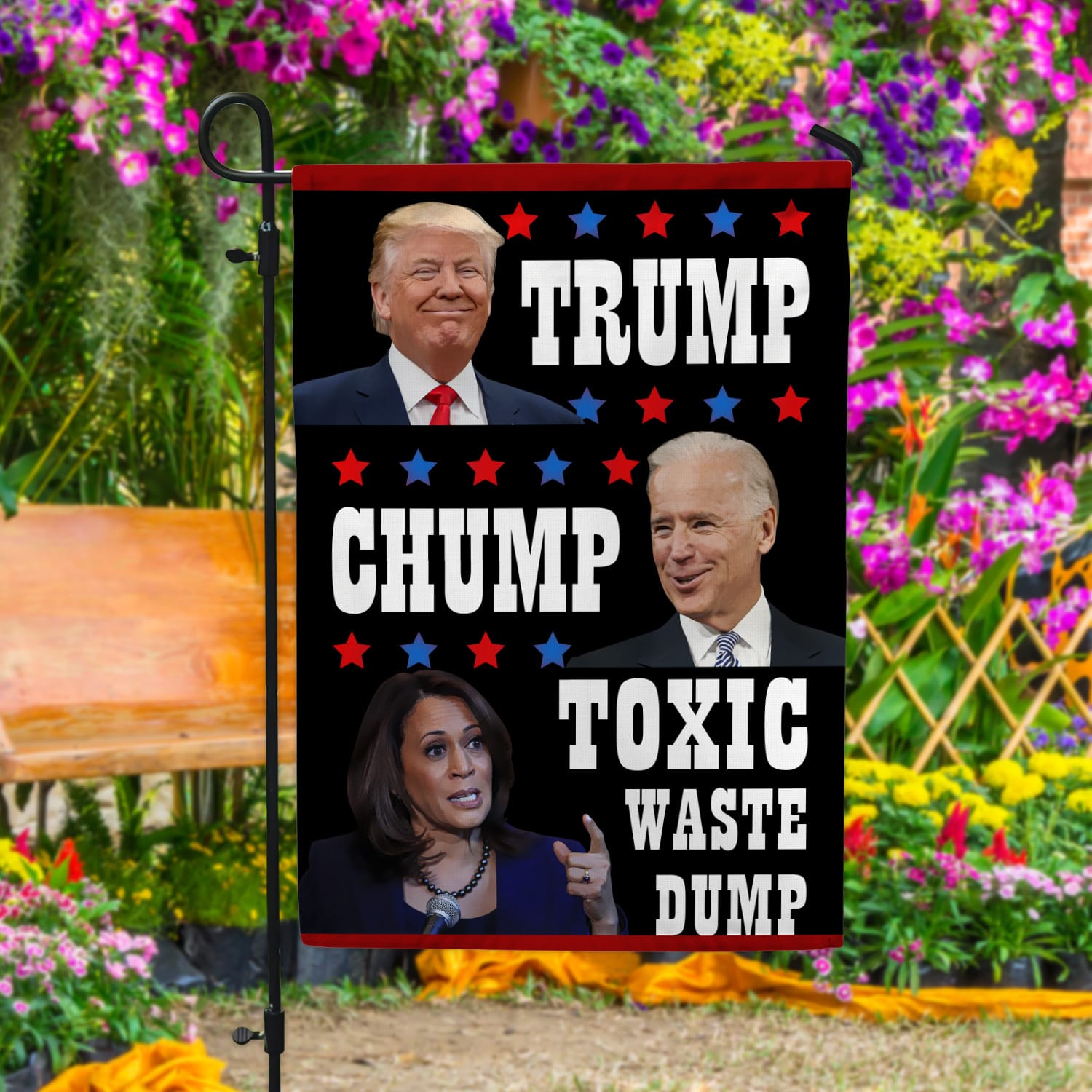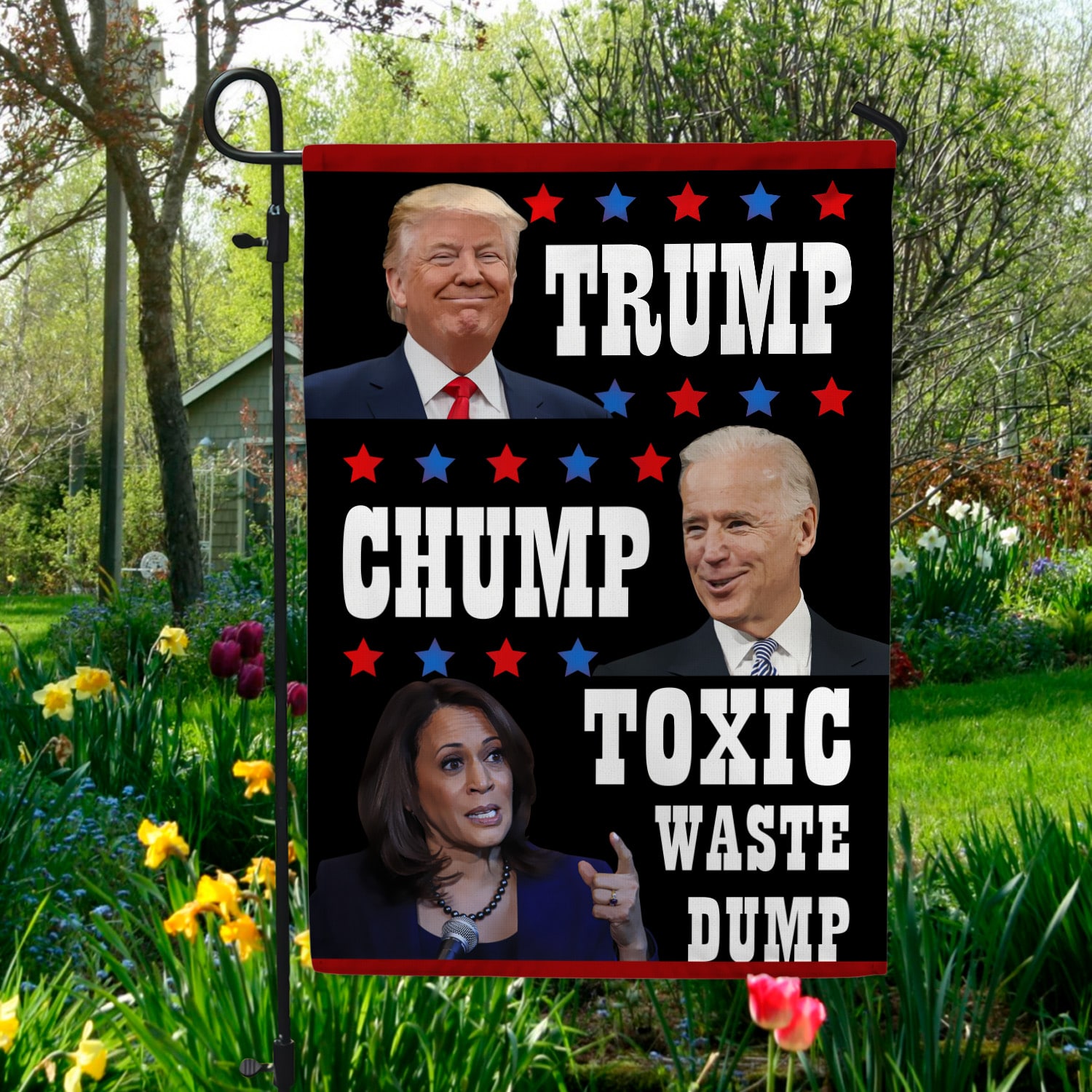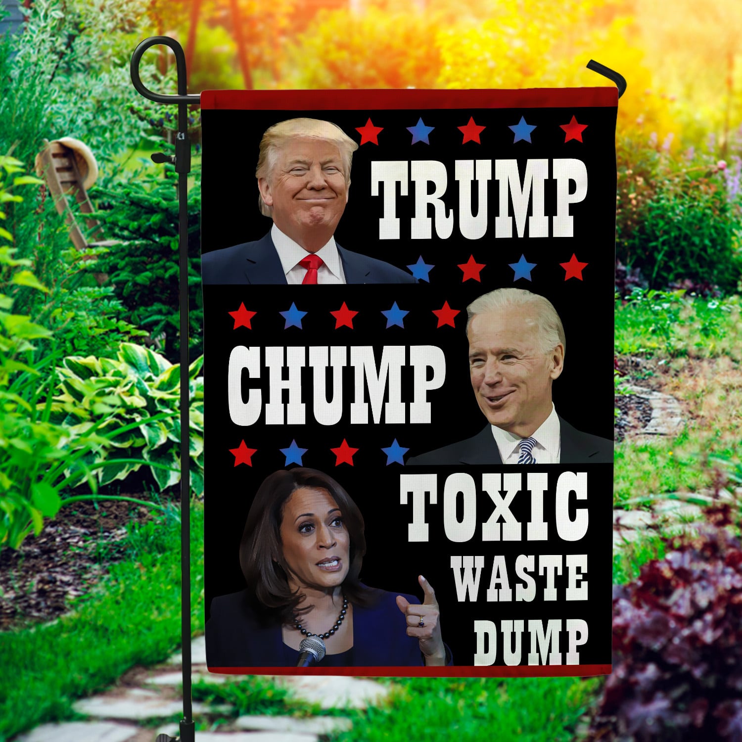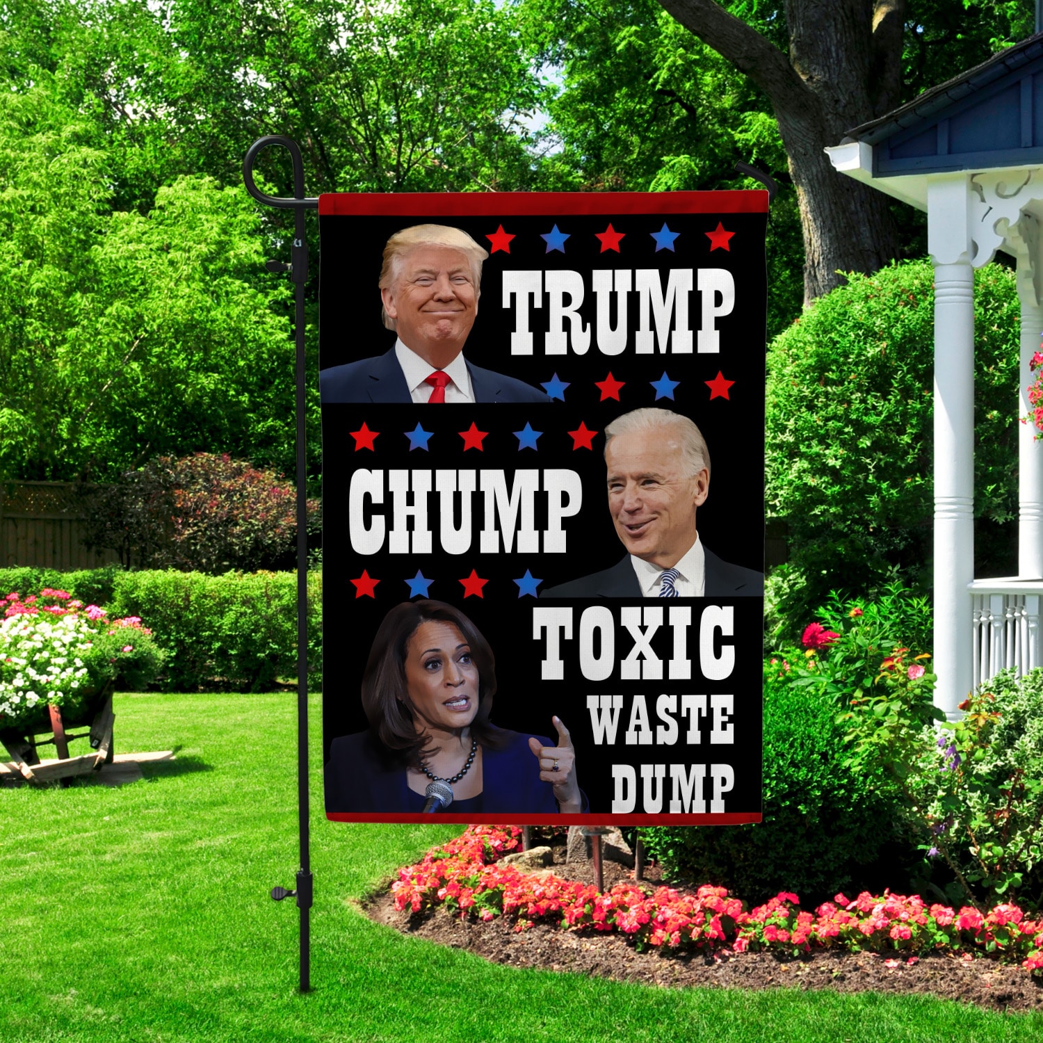 Let’s Shop Trump Biden Chump Harris Toxic Waste Dump Garden Flag – House Flag – Wall Flag!