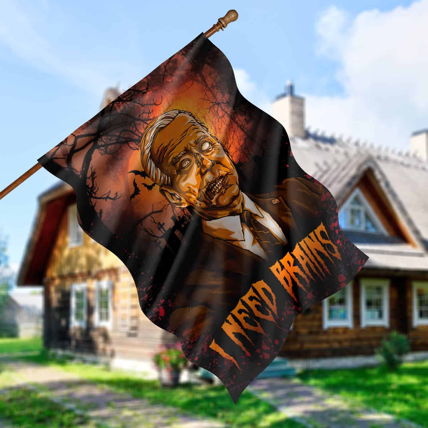 Let’s Shop Joe Biden I Need Brains House Flag – Funny Biden Halloween House Flag – Anti Biden Wall Flag!