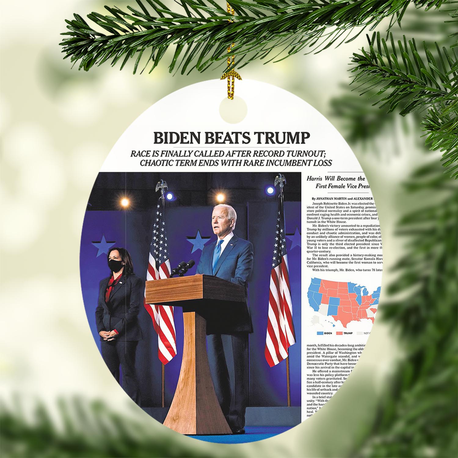Let’s Shop Biden Beats Trump Decorative Ornament Keepsake – Holiday Flat Oval Ornament – Holiday Decoration Gift!