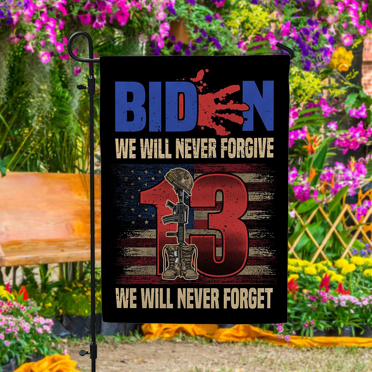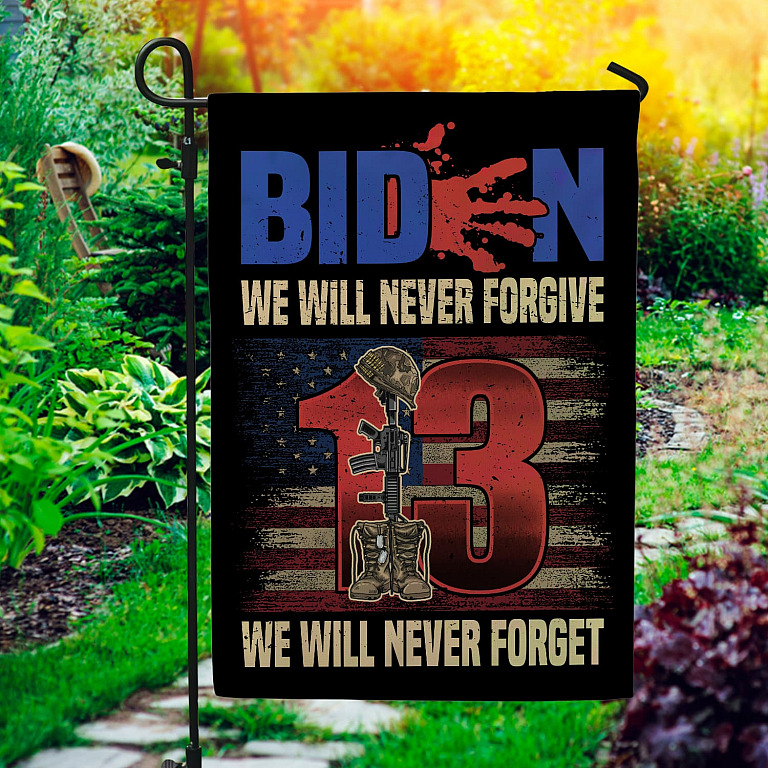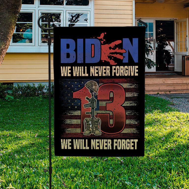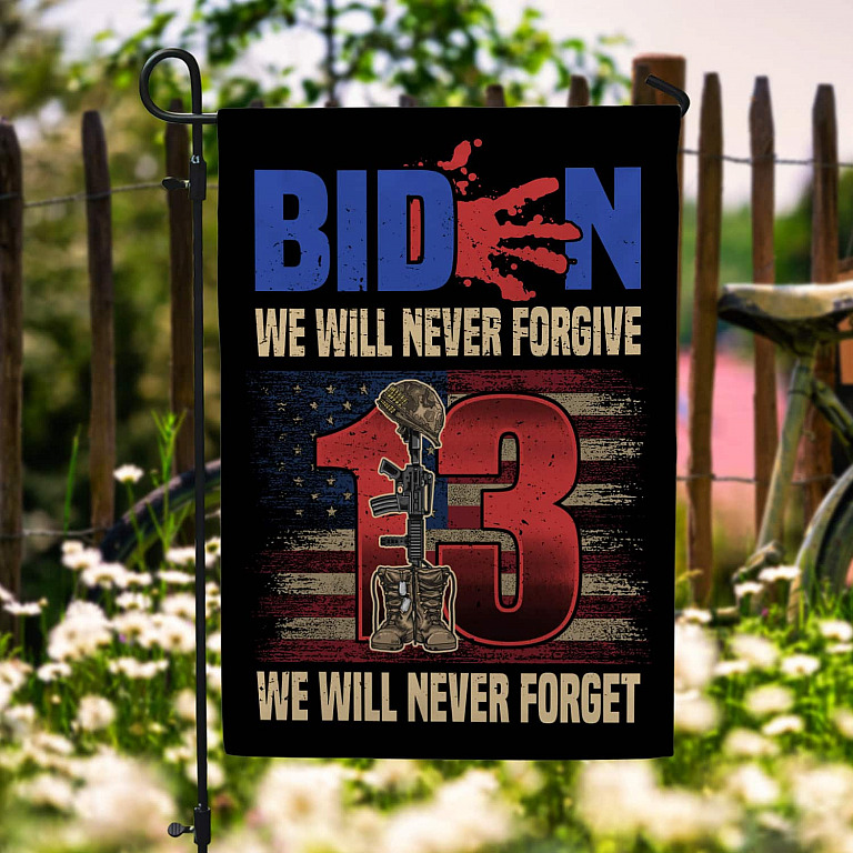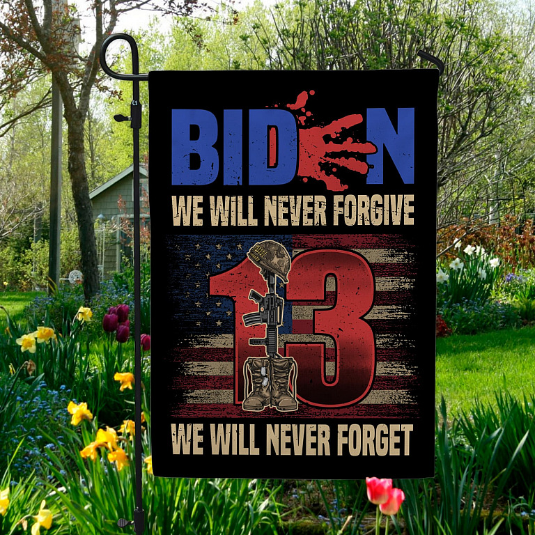 Let’s Shop Biden We Will Never Forgive We Will Never Forget Garden Flag – House Flag – Biden Blood Handprint Flag!