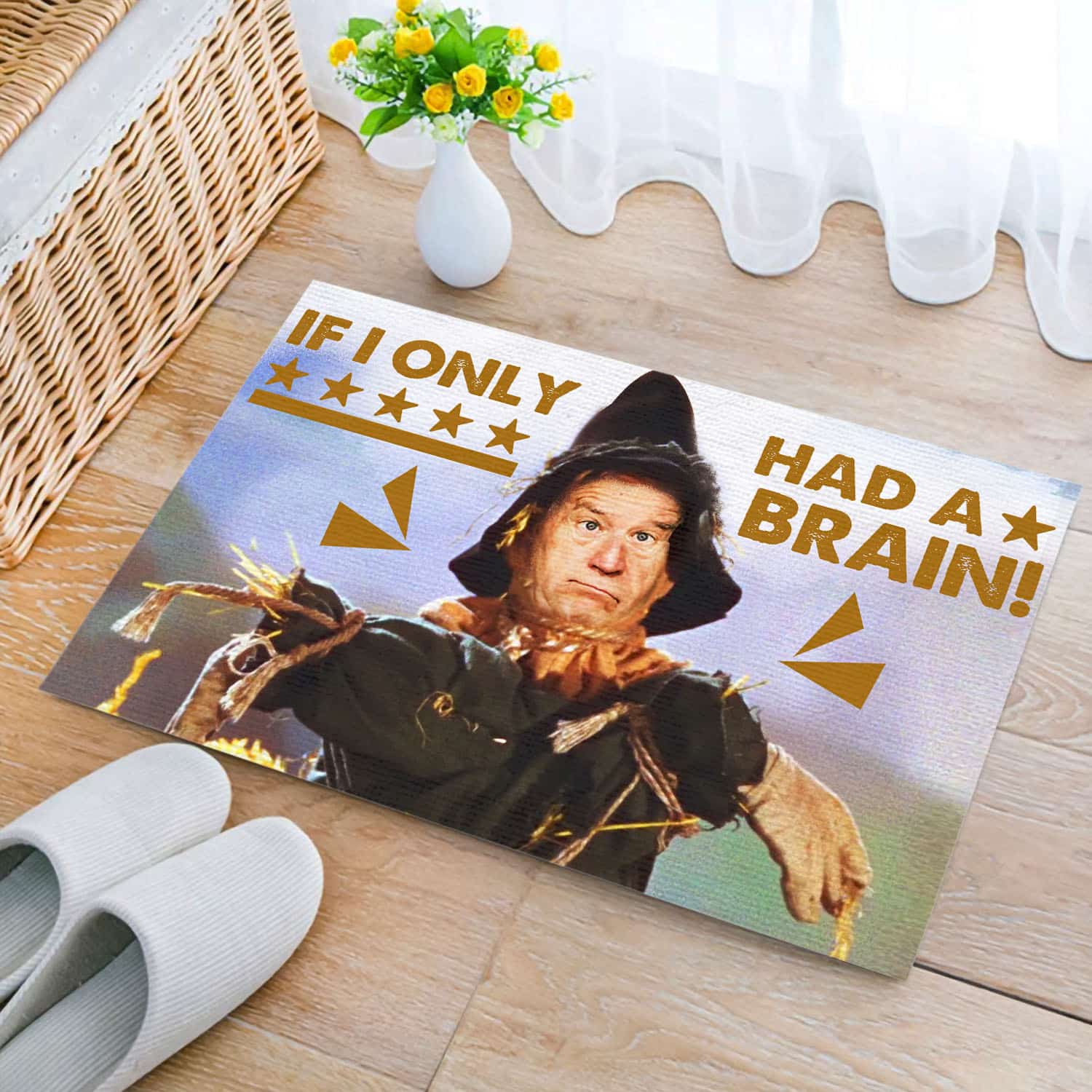 Let’s Shop If I only Had a Brain Joe Biden Scarecrow Anti Biden Entrance Indoor Outdoor Decorative Doormat Wipe Your Feet Here Doormat!
