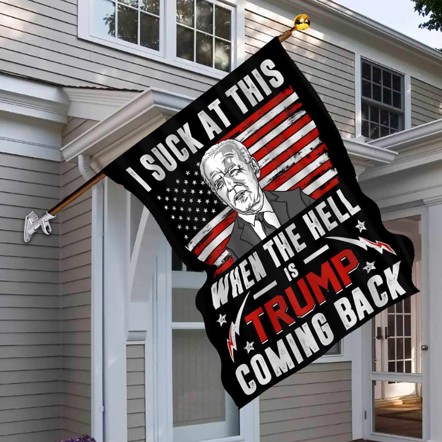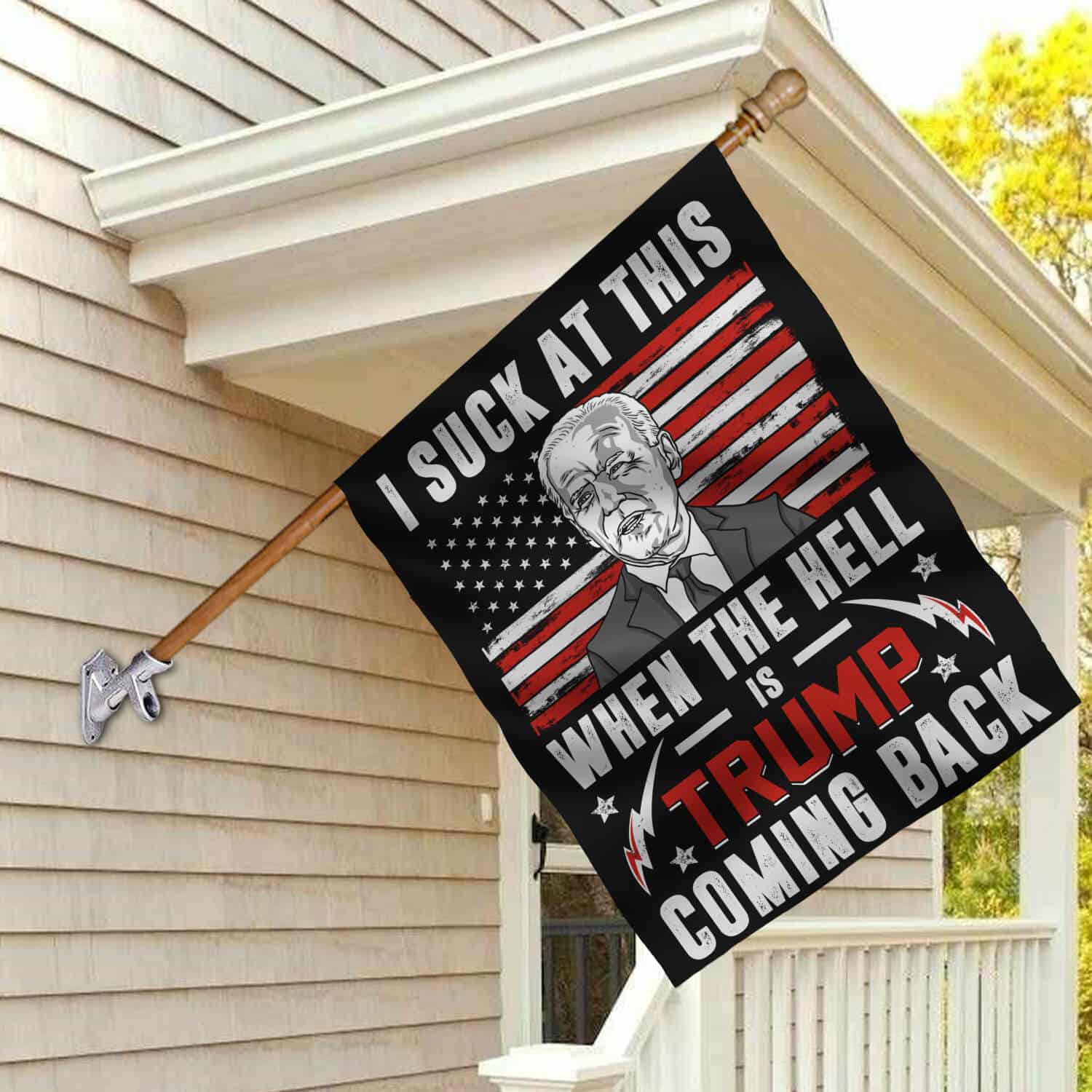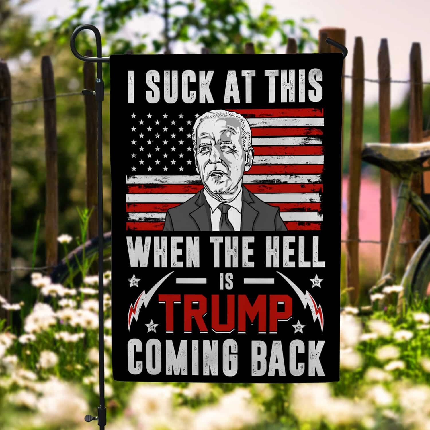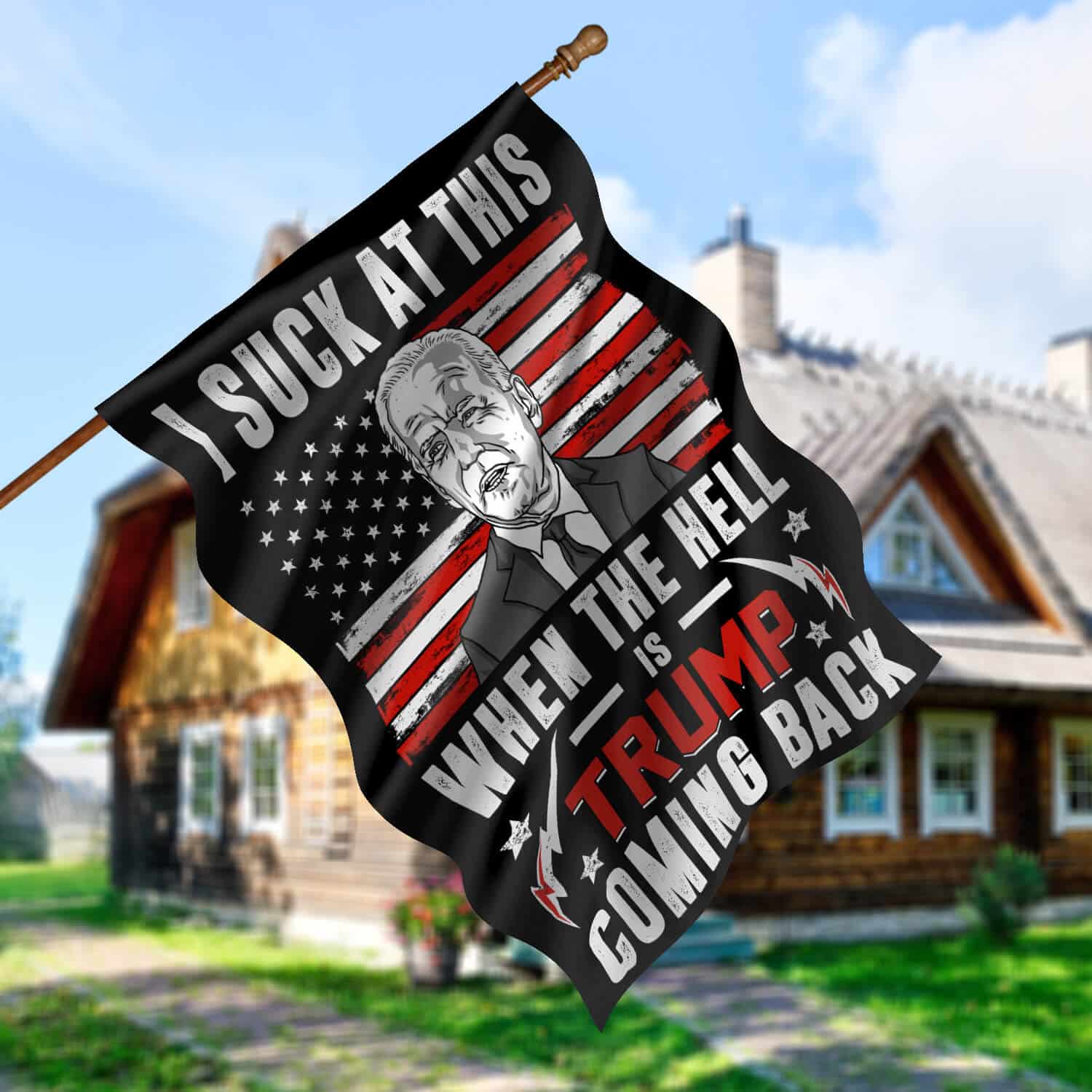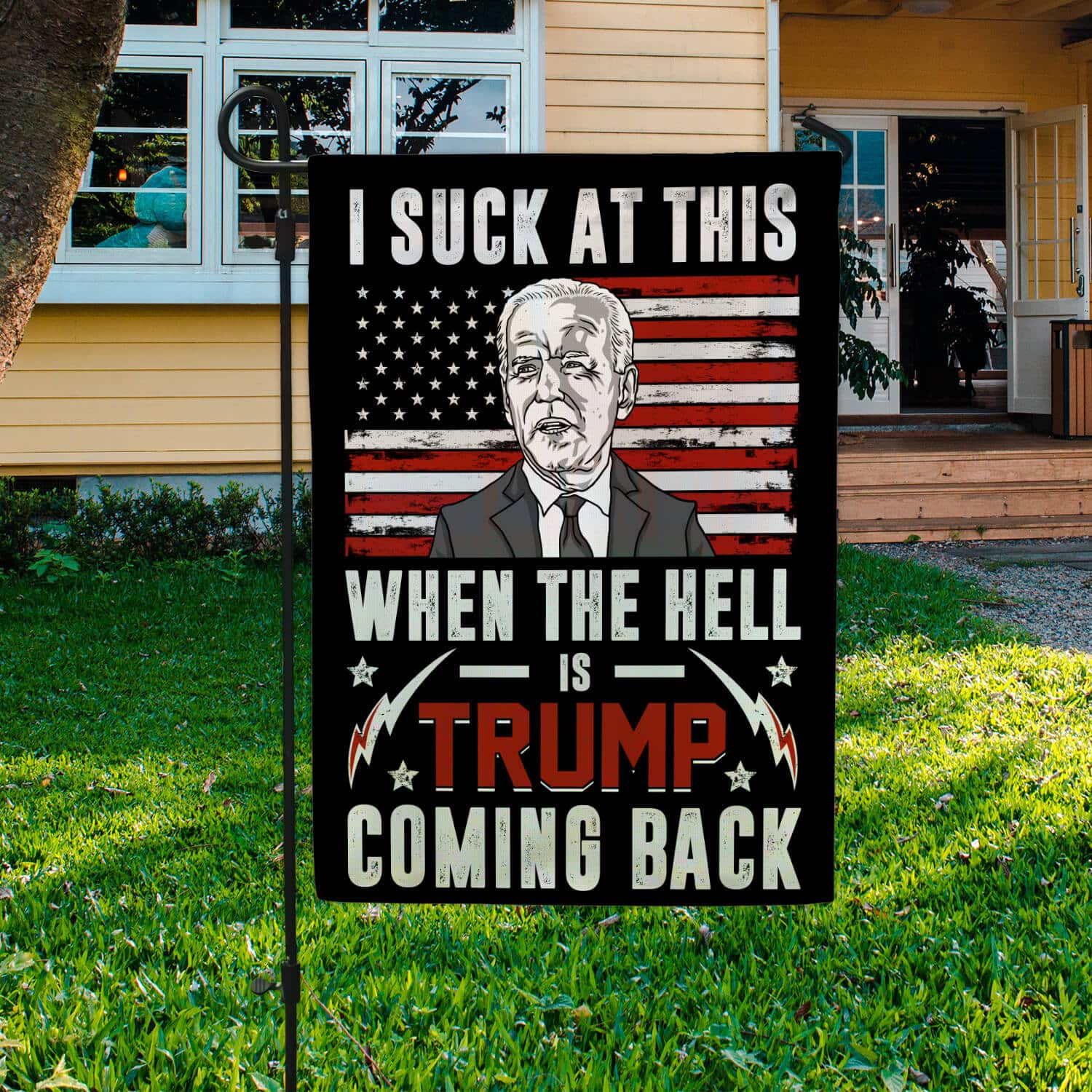 Let’s Shop Joe Biden Sucks When the Hell Is Trump Coming Back Garden Flag – Funny Anti Joe Biden House Flag – Wall Flag!
