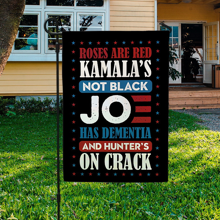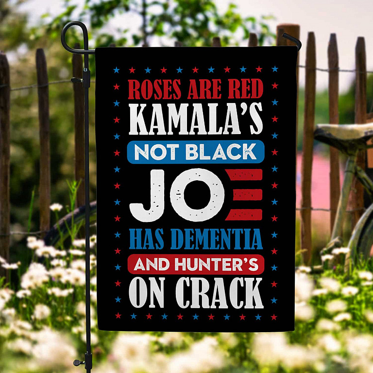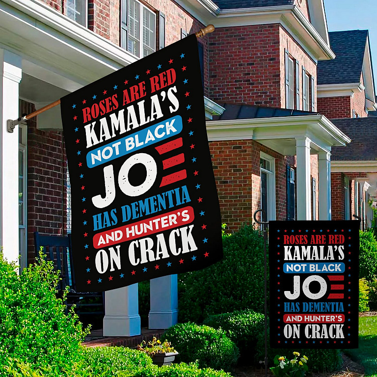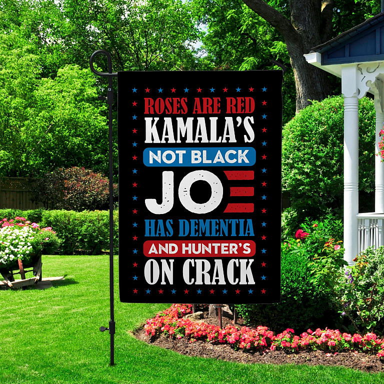 Let’s Shop Roses Are Red Kamala’s Not Black Joe Has Dementia And Hunter’s On Crack Outdoor House Flag – Anti Biden Home Garden Flag!