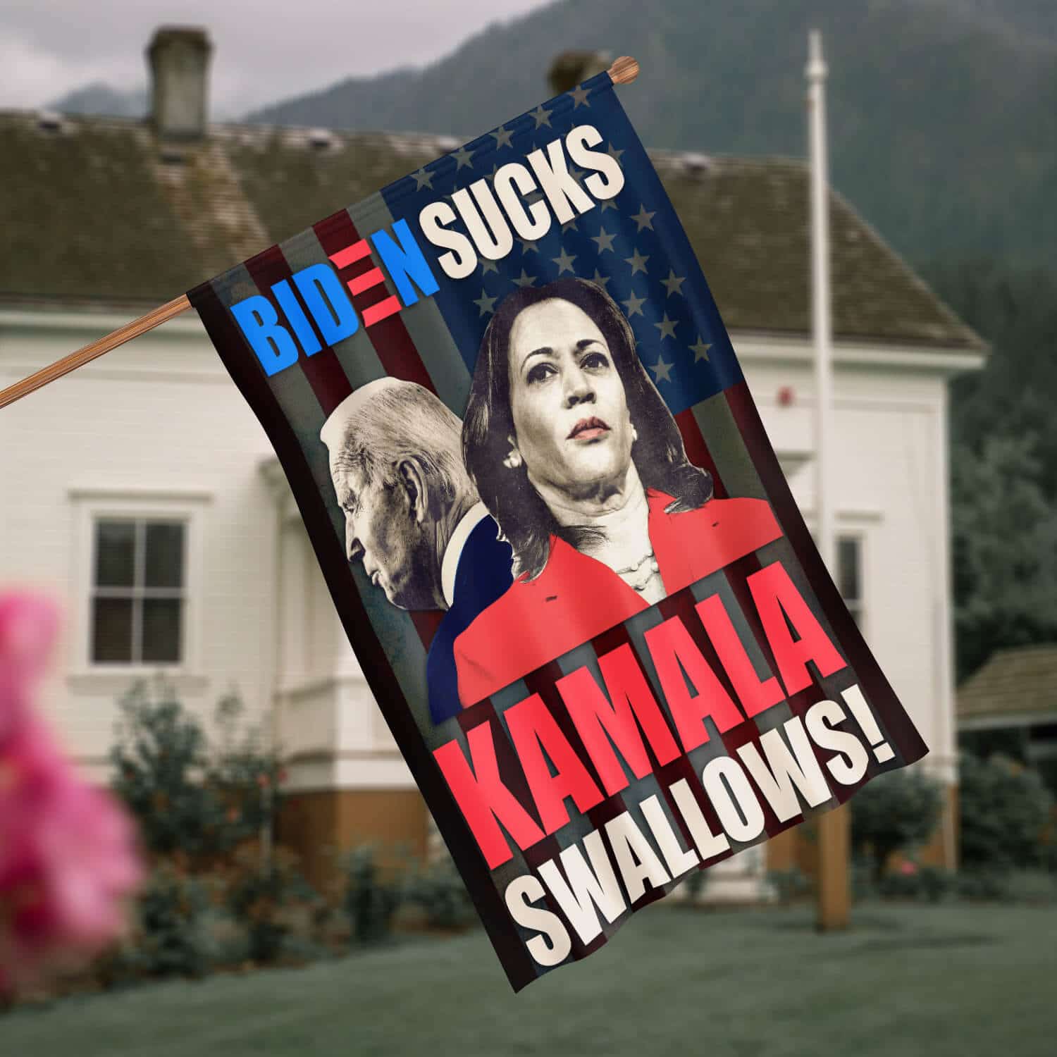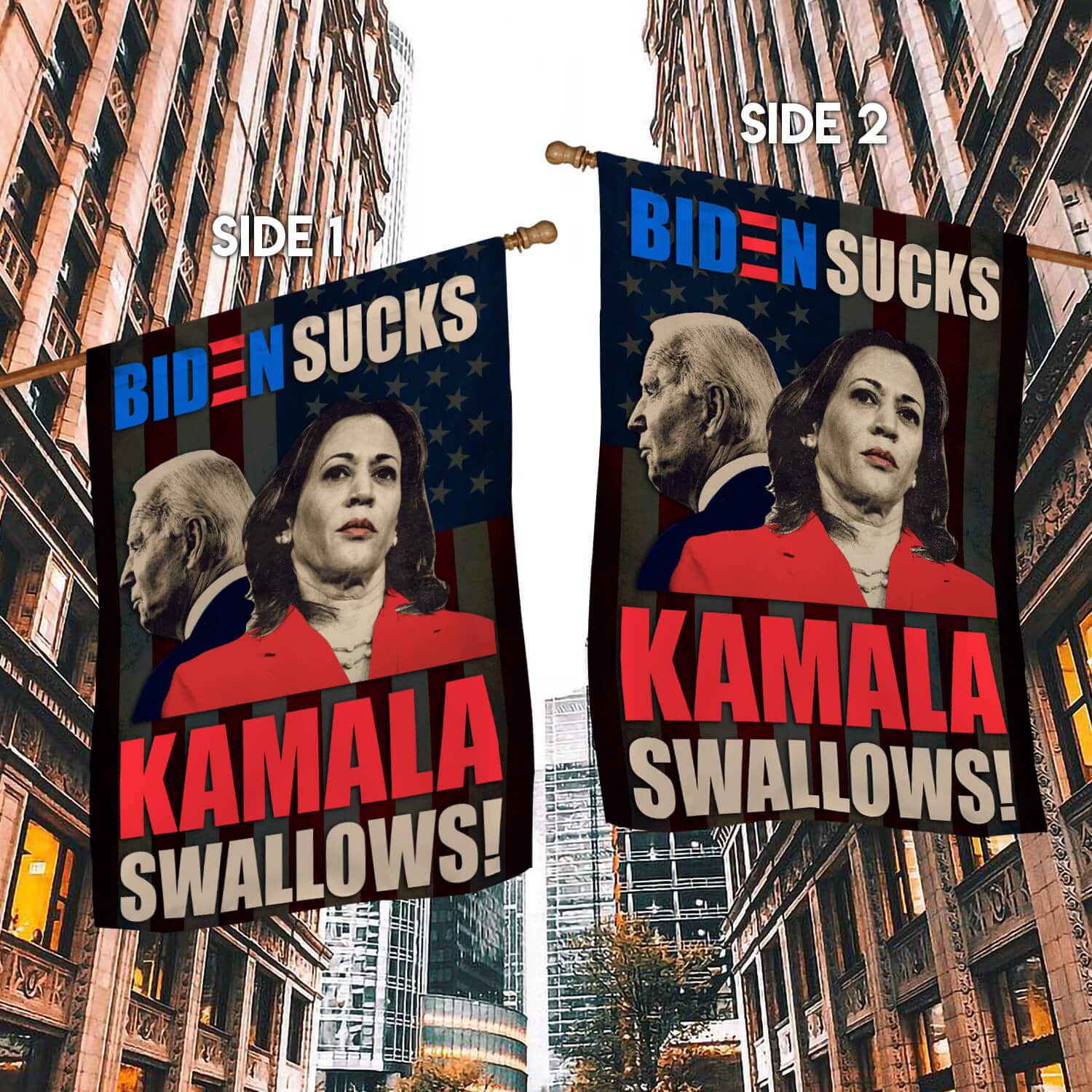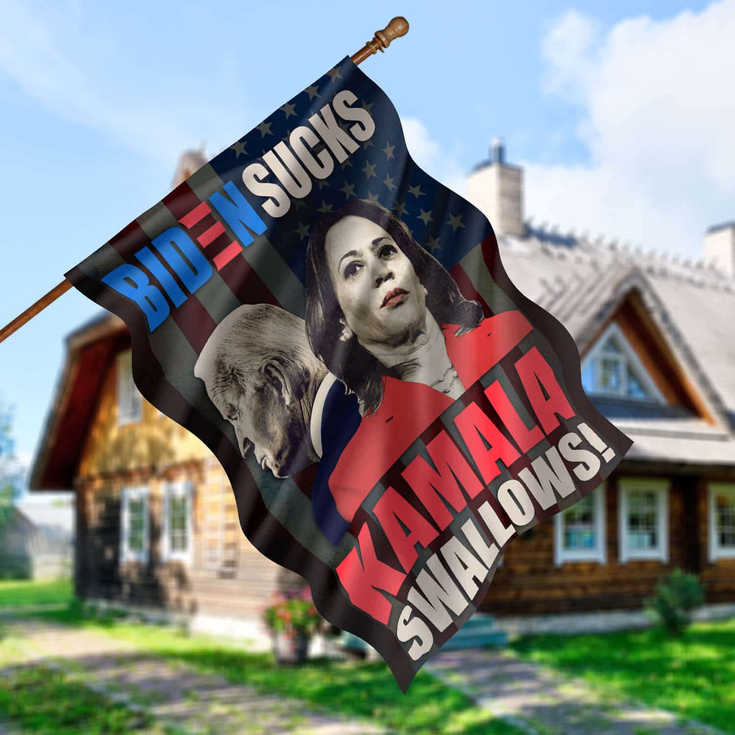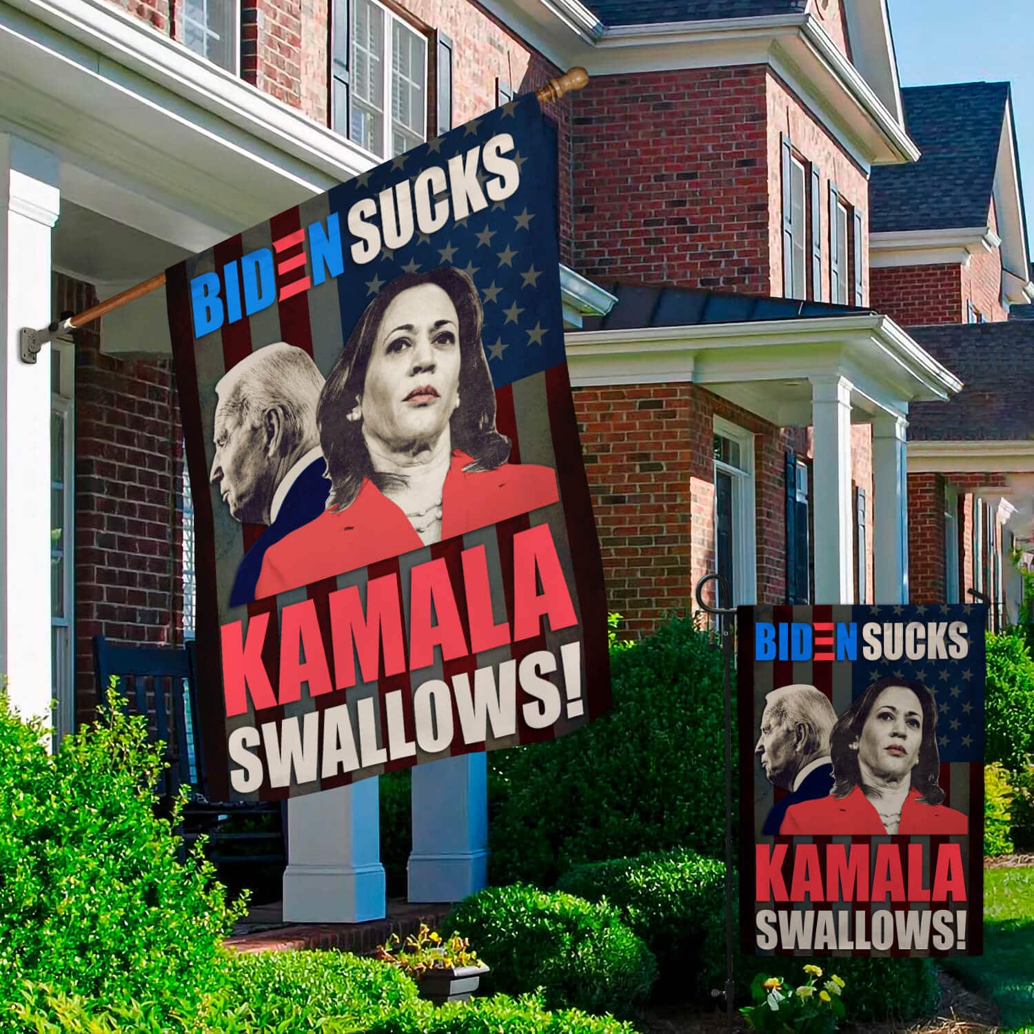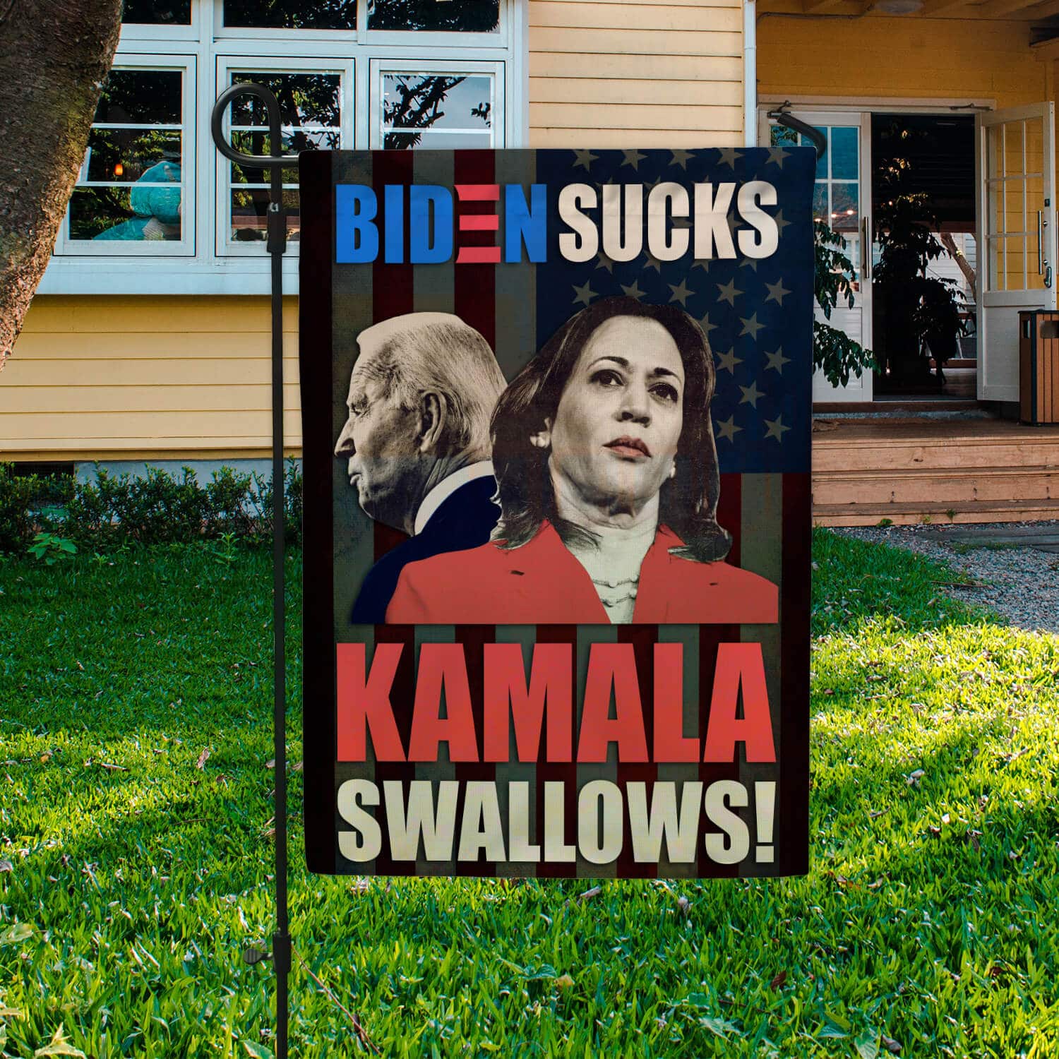 Let’s Shop Biden Sucks Kamala Swallows Garden Flag – Impeach Biden Kamala Harris House Flag – Wall Flag!
