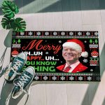 Let’s Shop Biden Merry Uh Uh Happy Uh You Know The Thing Funny Biden Ugly Christmas Doormat – Anti Joe Biden Indoor Outdoor Doormat!