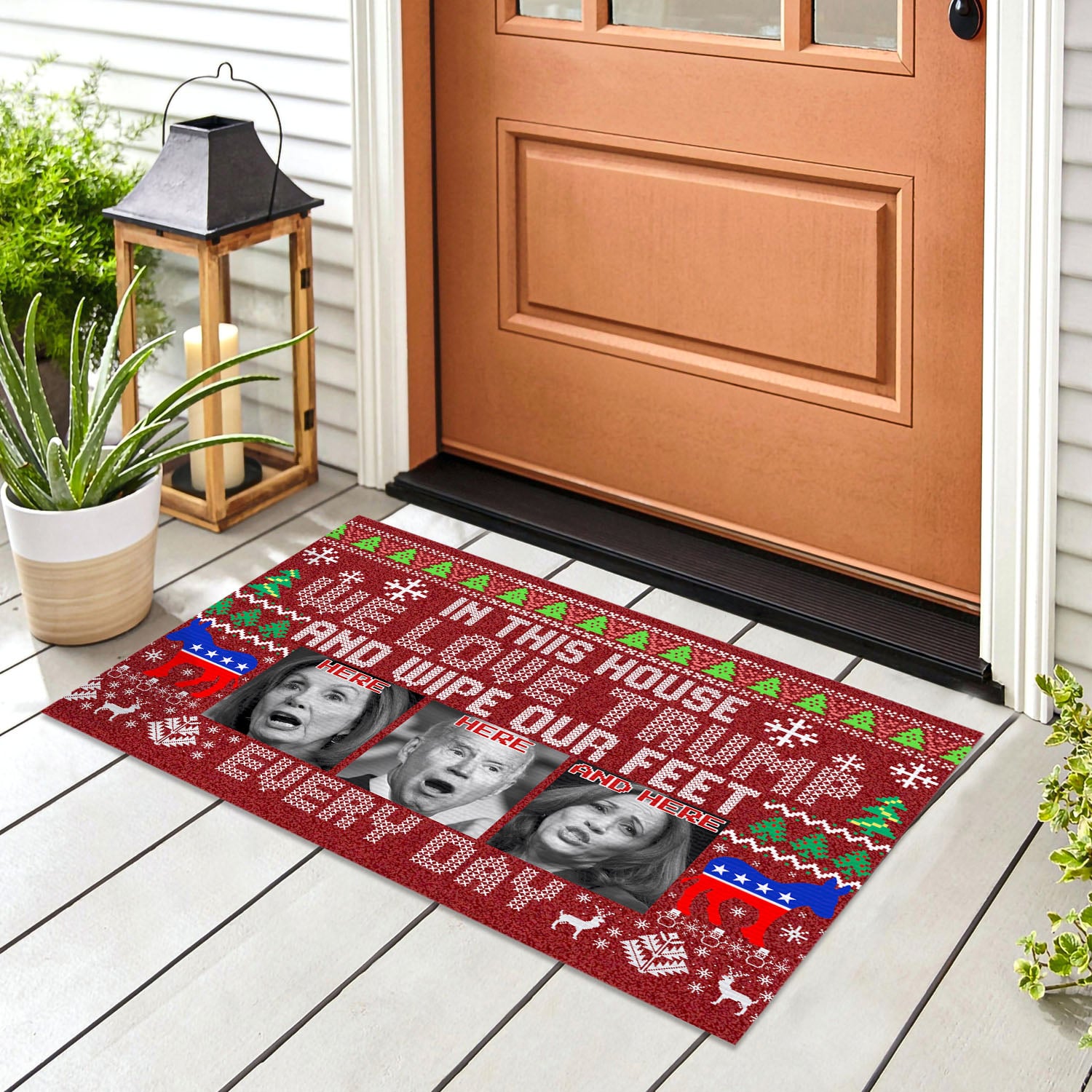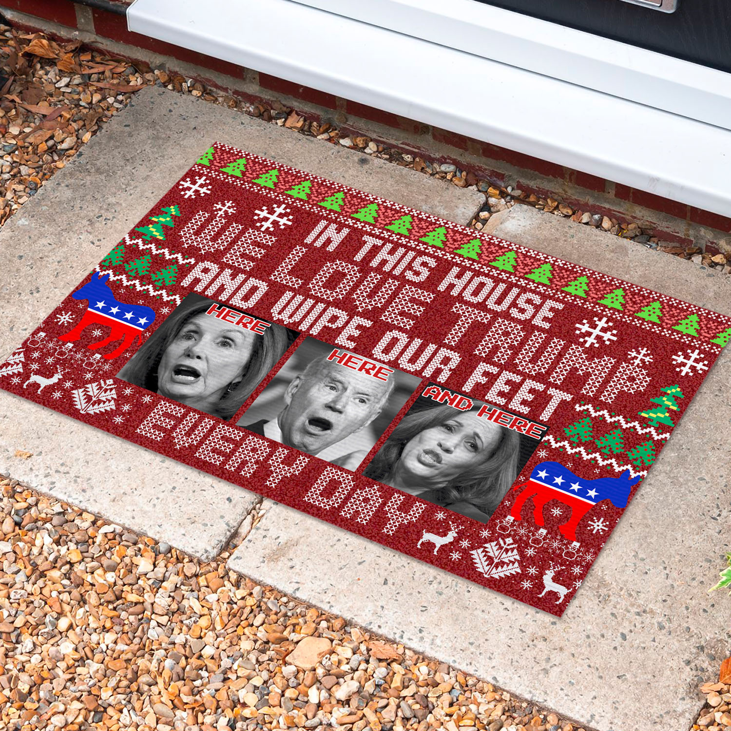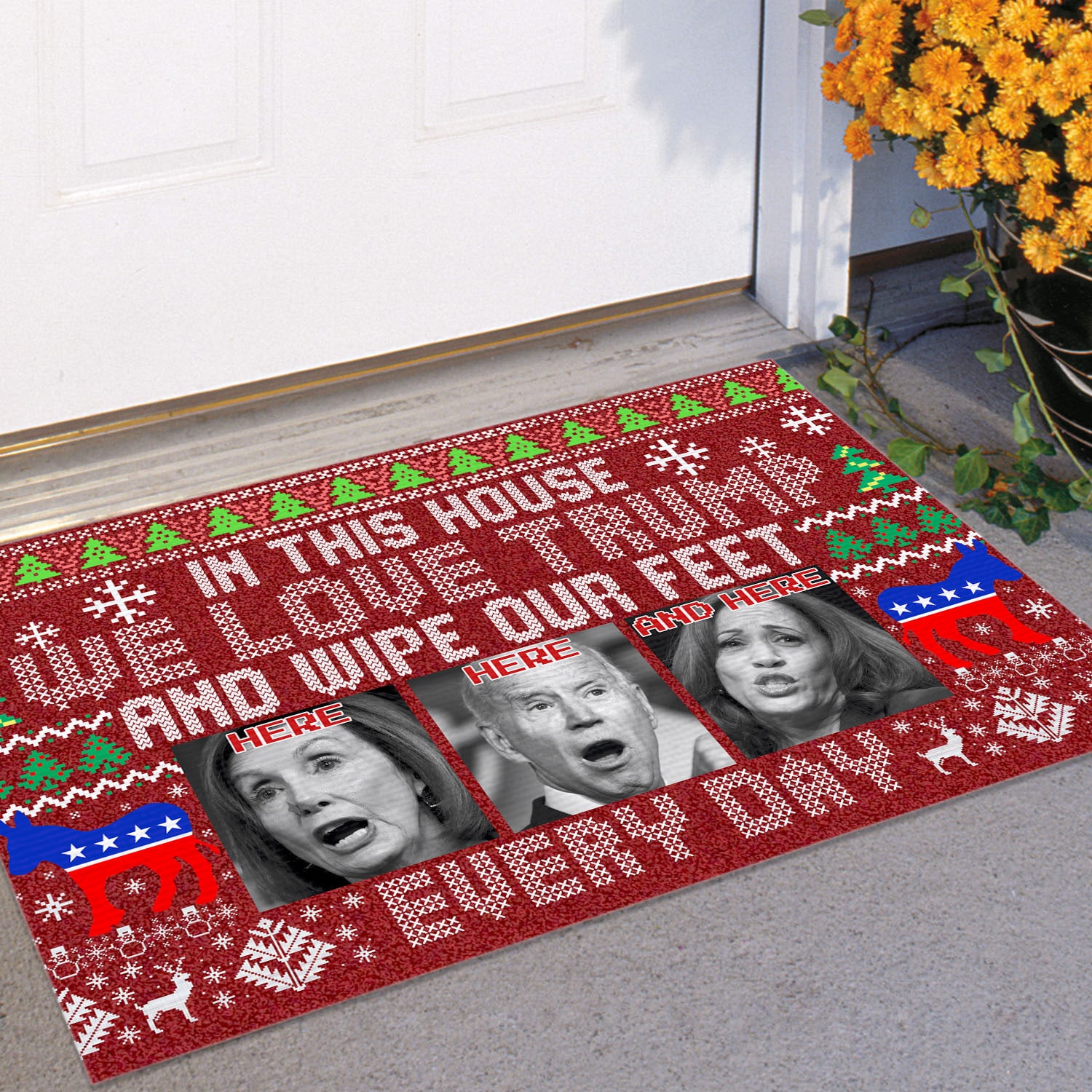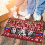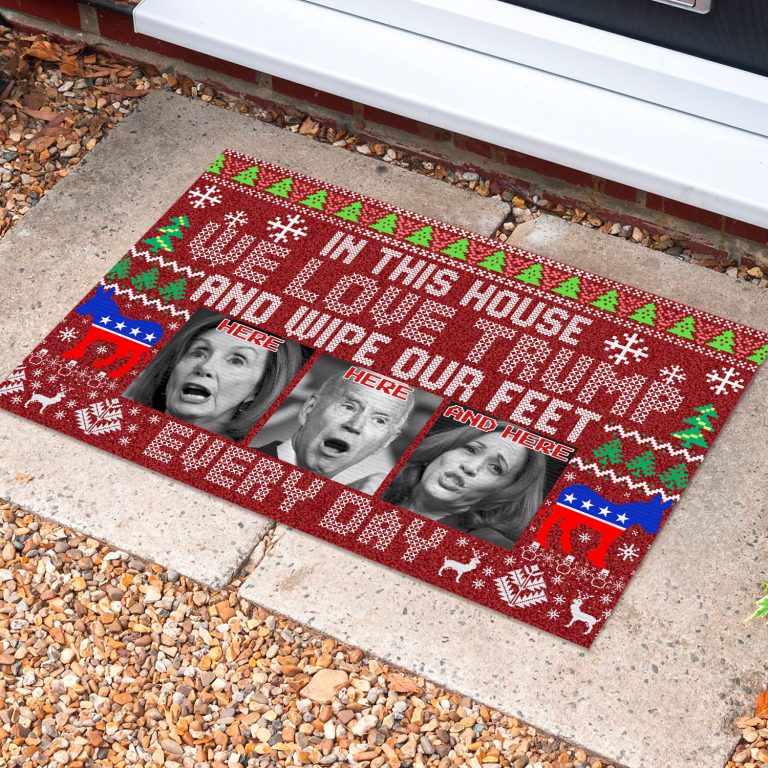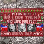 Let’s Shop In This House We Love Trump And Wipe Our Feet Here Every Day Funny Biden Harris Pelosi Ugly Christmas Doormat!